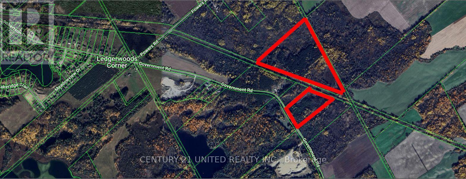 Amazing Opportunity! This unique offering includes two parcels of vacant land being sold together, totalling over 58 acres of natural beauty. The first parcel features 15.072 acres with 647.88 feet of direct frontage on Government Road, while the second 43.843-acre parcel wraps behind, offering a private and expansive setting. Outdoor enthusiasts will love the direct access to snowmobile and ATV trails right from the property. A managed forest designation adds value and long-term sustainability. Whether you're looking to build, invest, or enjoy recreational use, this rare find combines space, privacy, and potential in one incredible package. Hydro services available nearby. Do not walk property without scheduled appointment with realtor. (id:61423)