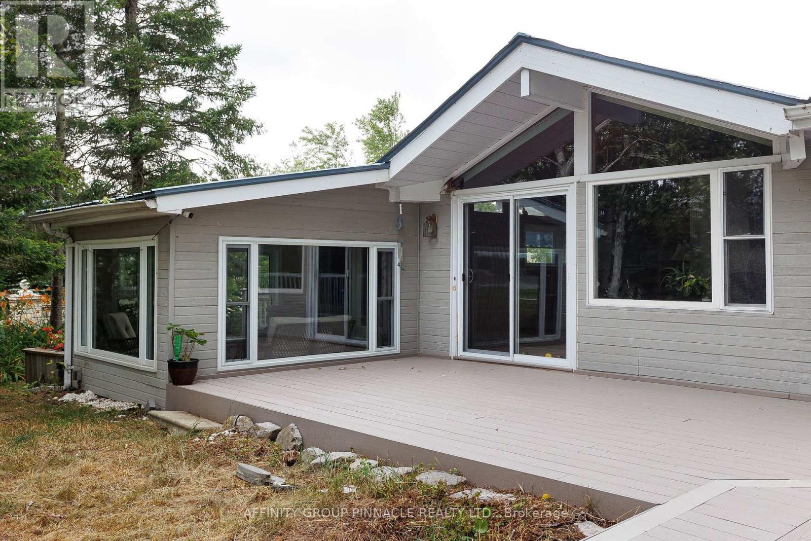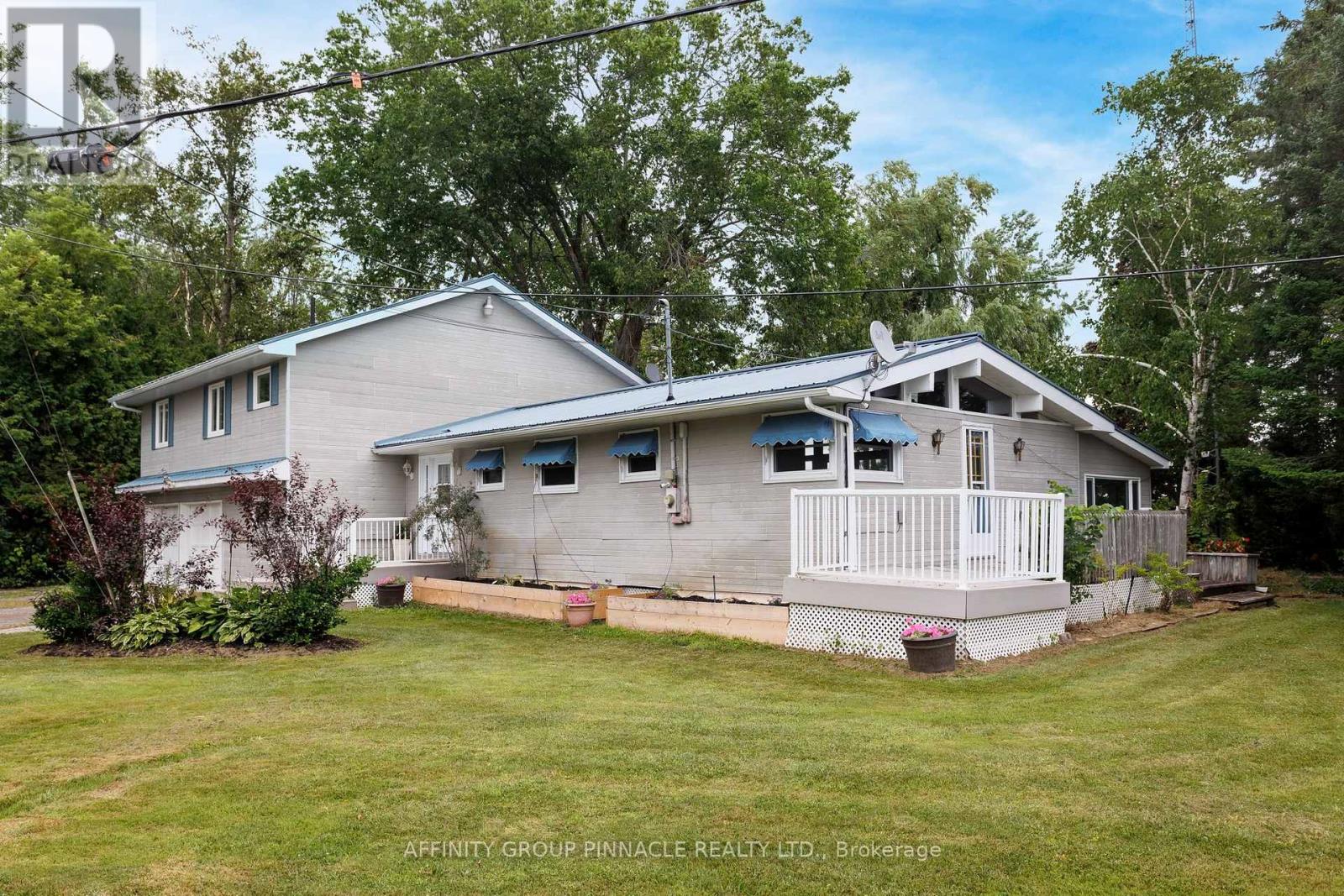 Affordable Waterfront on Sturgeon Lake! This park-like acre lot offers serene privacy and 160 feet of frontage on gorgeous Sturgeon Lake. This 4 season side split home or cottage sits on a park like property with tall trees and sublime lake views. This home offers an open concept main floor with expansive lake views. 4 bedrooms including an oversized primary suite overlooking the grounds and lake, and 3 bathrooms 2 of which have been recently updated. The 4 season sunroom is the perfect place for enjoying the privacy and nature that surround this property. A large double car garage with extra storage and workshop and direct access to the home is great for handypersons and storing the toys. Updates and features include a metal roof, updated windows throughout, multiple composite decks and porches, sun room, forced air propane wall furnace, and a sprinkler system that is great for keeping the grounds green in the hot summer months. The waterfront provides a natural environment for wildlife and docking for fishing and pontoon boats. This is an estate sale and the family recognizes the decor is dated and remodelling to meet the times may be necessary. However, the family would prefer to be environmentally conscious, and rather than update and risk the choices not being to the purchaser's preference, provide a blank slate for the new owners to work with. The house can be moved into and used immediately in its present state. The layout may even suit an in-law suite, This property sits on a quiet cul-de-sace and is just minutes to Fenelon Falls by car or boat. Close by Victoria Rail Trail is just a stones throw away and great for hiking, atv, and snowmobiling and GTA is only an hour and a half away. (id:61423)