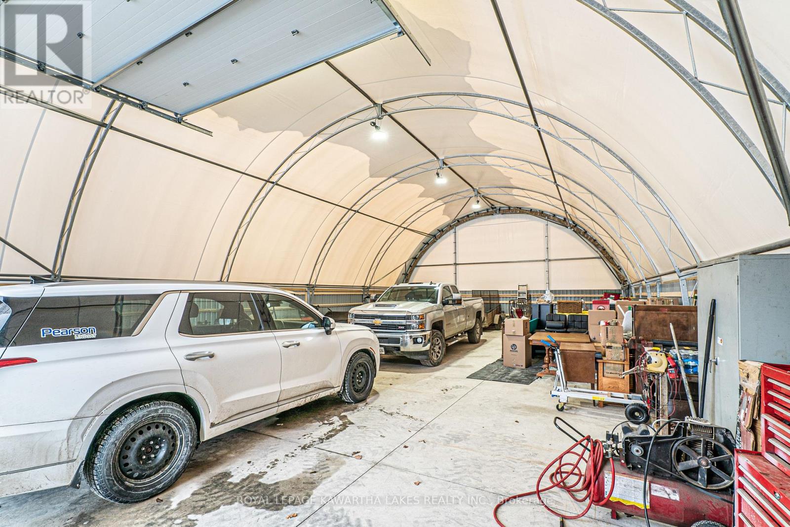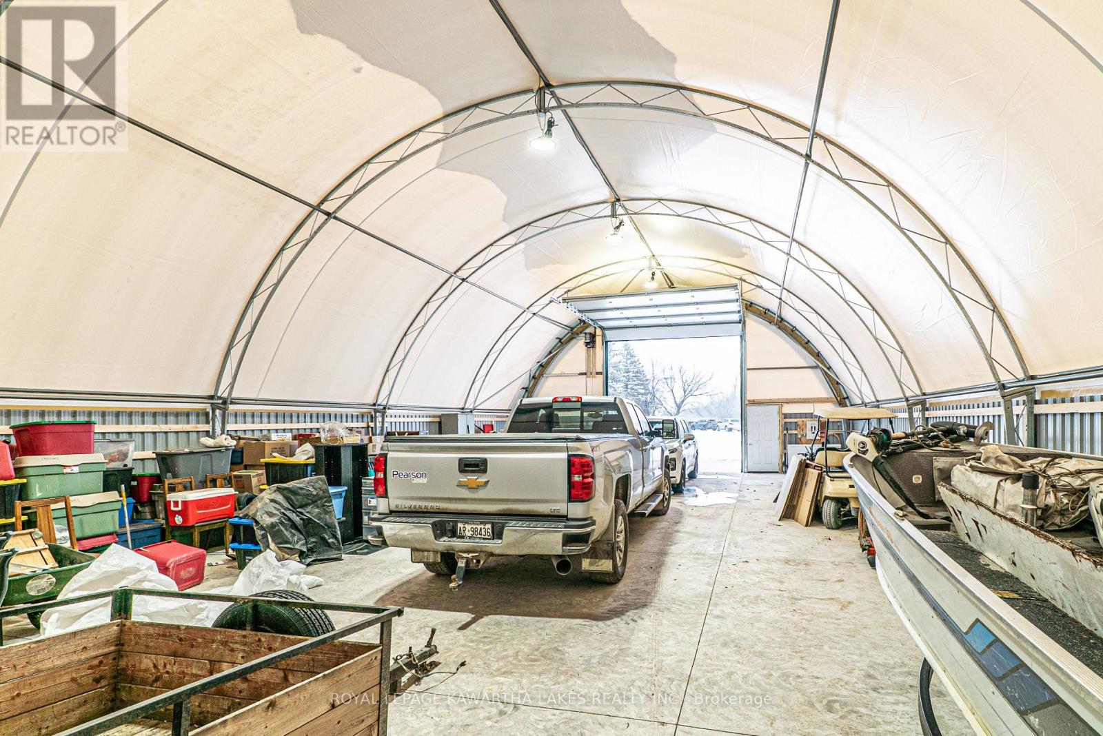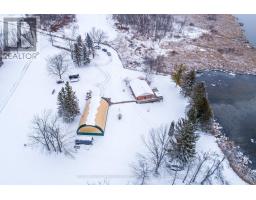 Welcome to this charming bungalow set on 1.17 acres with direct frontage on the Scugog River, offering a peaceful setting. The main floor features a bright kitchen with hardwood floors and a walkout to the yard, a dining room with access to the deck, and a comfortable living room with a gas fireplace. Three bedrooms and a 4-piece bath complete the level. The fully finished walkout basement expands your living space with a cozy recreation room featuring a gas stove and bar area, an office, and a combined laundry/utility room. Outside the property impresses with a durable steel roof, a Generac system installed in 2024, and a 35' x 60' Quonset Hut with a 14' door, ideal for storage, hobbies, or equipment. Enjoy direct waterfront access and the privacy of a spacious lot with still being minutes to Lindsay and all amenities. (id:61423)