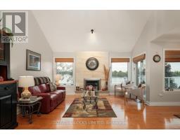 Discover the perfect blend of craftsmanship and lakeside tranquility in this custom-built, all-brick bungalow featuring 3 bedrooms, 3 bathrooms, and over 3,600 sq. ft. of beautifully finished living space, plus a sunroom. Nestled along 135 ft. of Armour-stone shoreline, this home offers year-round waterfront living just 10 minutes from Peterborough and 30 minutes to Hwy 407.Step inside to a bright, welcoming foyer that opens into a cathedral-ceiling great room, where a stunning floor-to-ceiling fireplace and a wall of windows frame breathtaking lake views. The kitchen boasts expansive granite countertops and direct access to a newly finished Duradek upper deck with glass railings ideal for entertaining or enjoying peaceful mornings overlooking the water. The primary suite is a private retreat with its own balcony, spa-inspired ensuite, and heated porcelain floors. A second main-floor bedroom offers a semi-ensuite with heated marble floors and a walk-in closet, providing comfort and privacy for family or guests. The open-concept walkout lower level impresses with 9 ft. ceilings, a pub-inspired wet bar, and a spacious rec room perfect for movies, games, or fitness. Walk out to a seamless insulated sunroom for year-round enjoyment of lake views, or unwind in your personal barrel sauna. Meticulously landscaped grounds feature stone pathways, perennial gardens, an in-ground sprinkler system, and a custom shed. Every detail showcasing pride of ownership inside and out. Whether you're working from home, hosting friends, or watching the sunrise from your private balcony, 1 Lawson Court delivers the ultimate combination of comfort, privacy, and true lakeside living. (id:61423)
