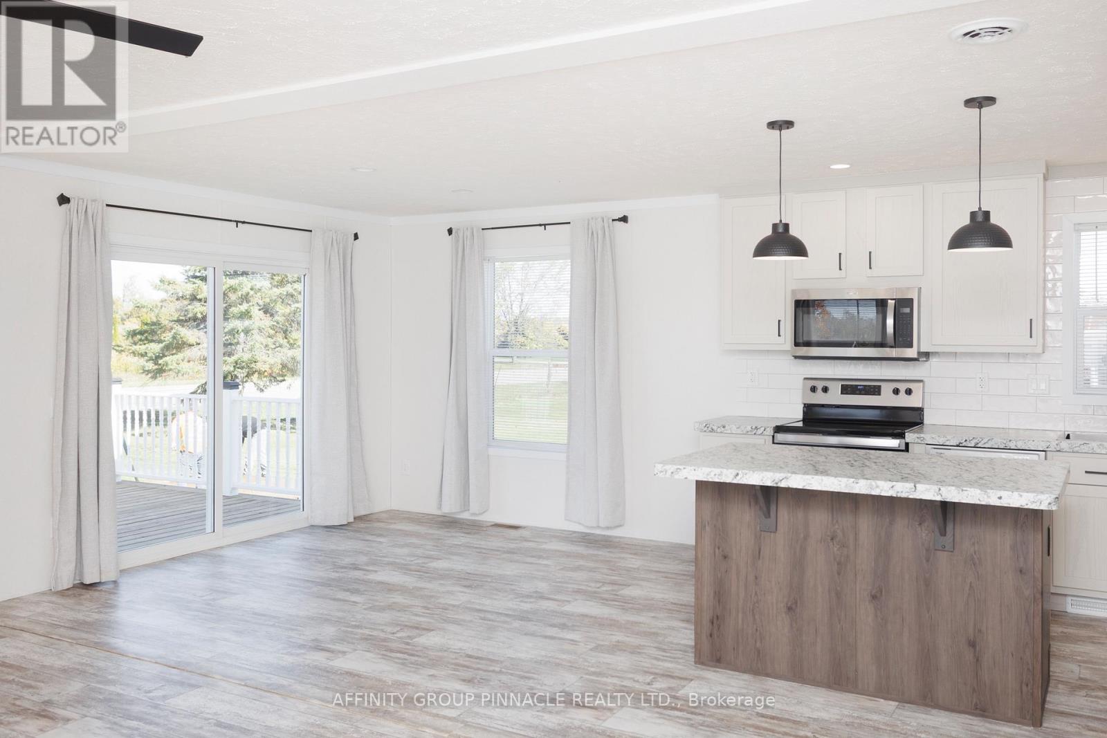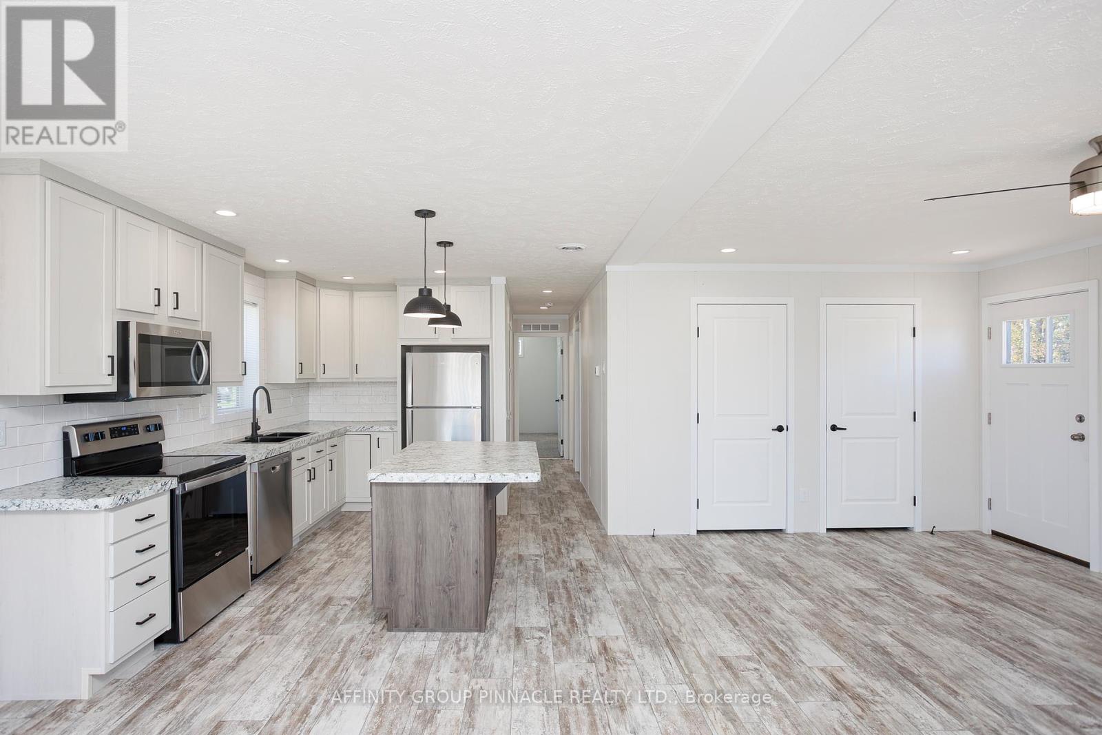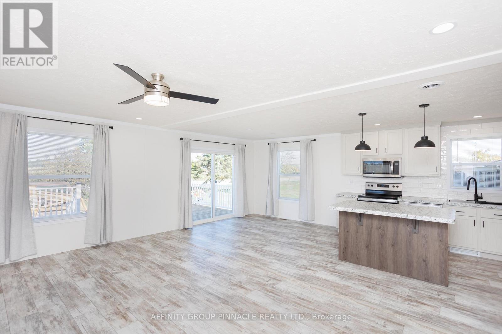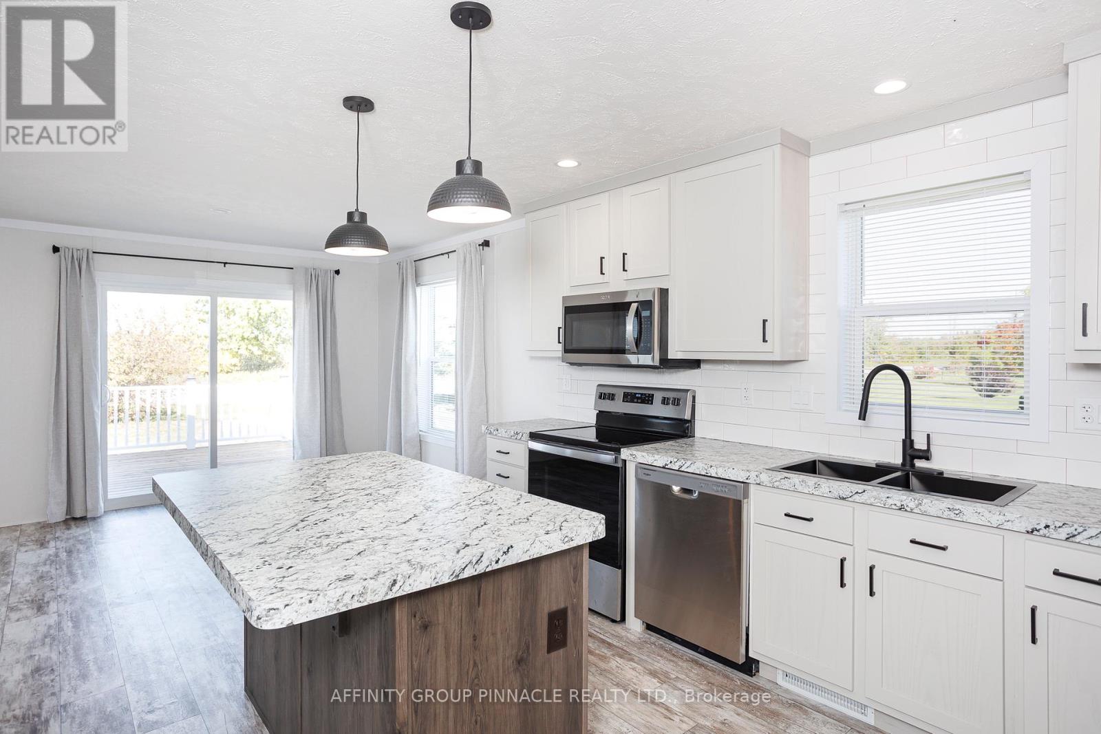 Gorgeous, brand new, never lived in bungalow nestled in the sought after community of Joy Vista Estates. Inside this bright and spacious home you'll find an open concept layout with 2 good sized bedrooms, 2 full bathrooms with the primary bedroom featuring a large 10' x 5' walk-in closet and an ensuite bathroom with an easy access shower. This home also boasts a large living room / dining room combo + modern kitchen with island, stainless steel appliances + black stainless double sink. From the walkout you can enjoy the fresh country air on the huge deck overlooking the 145' x 100' lot that has space for your future garage. Main floor laundry room with cabinets for additional storage is an added bonus. Forced-air furnace + central air and soon to be paved driveway large enough for multiple vehicles + paved walkway to front steps. Everything is brand new including the appliances. Enjoy the perks of living in this quiet and peaceful location that features a community centre with outdoor pool, multipurpose event room, TV and kitchen facilities. Come take a look, nothing to do but turn the key and enjoy. (id:61423)