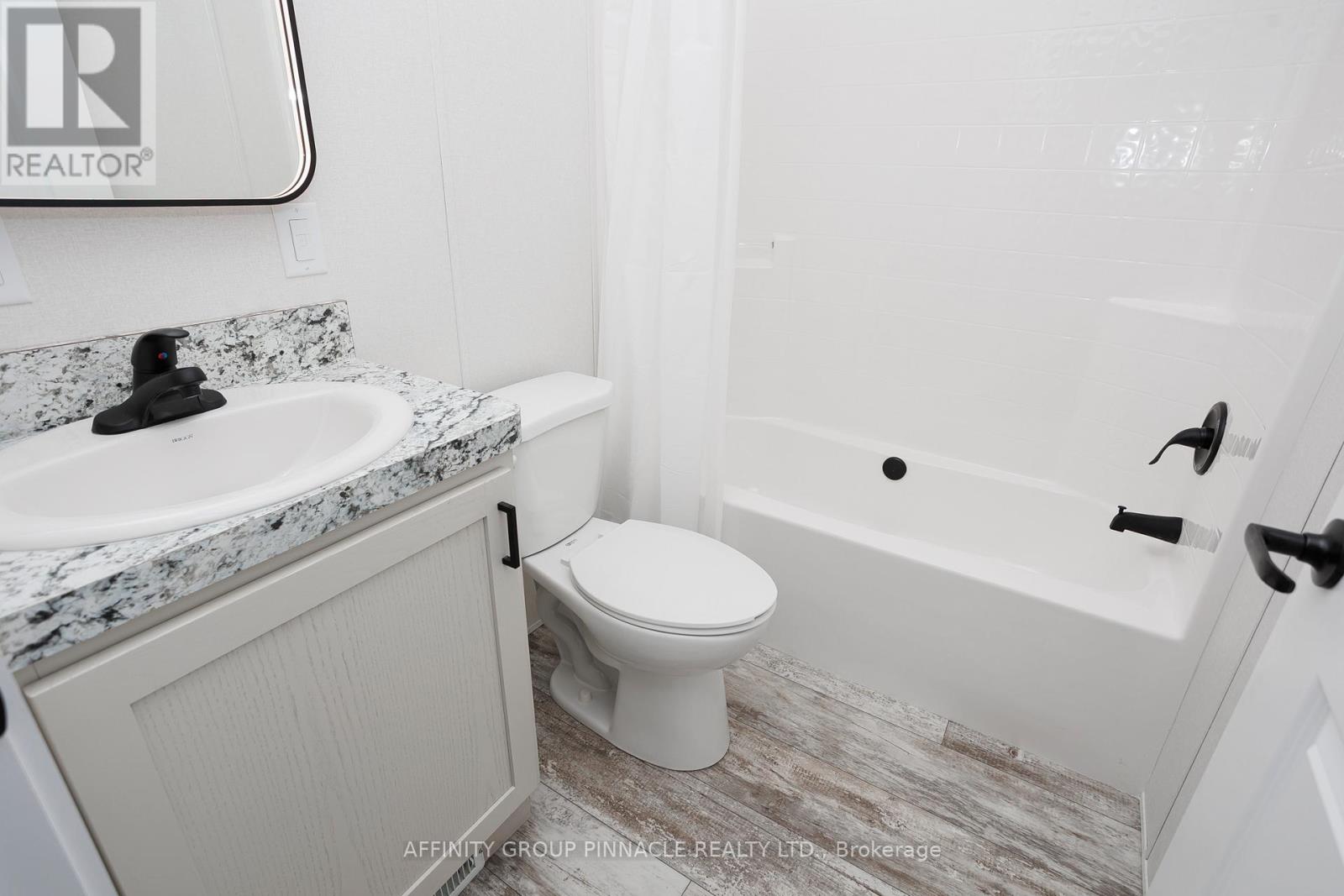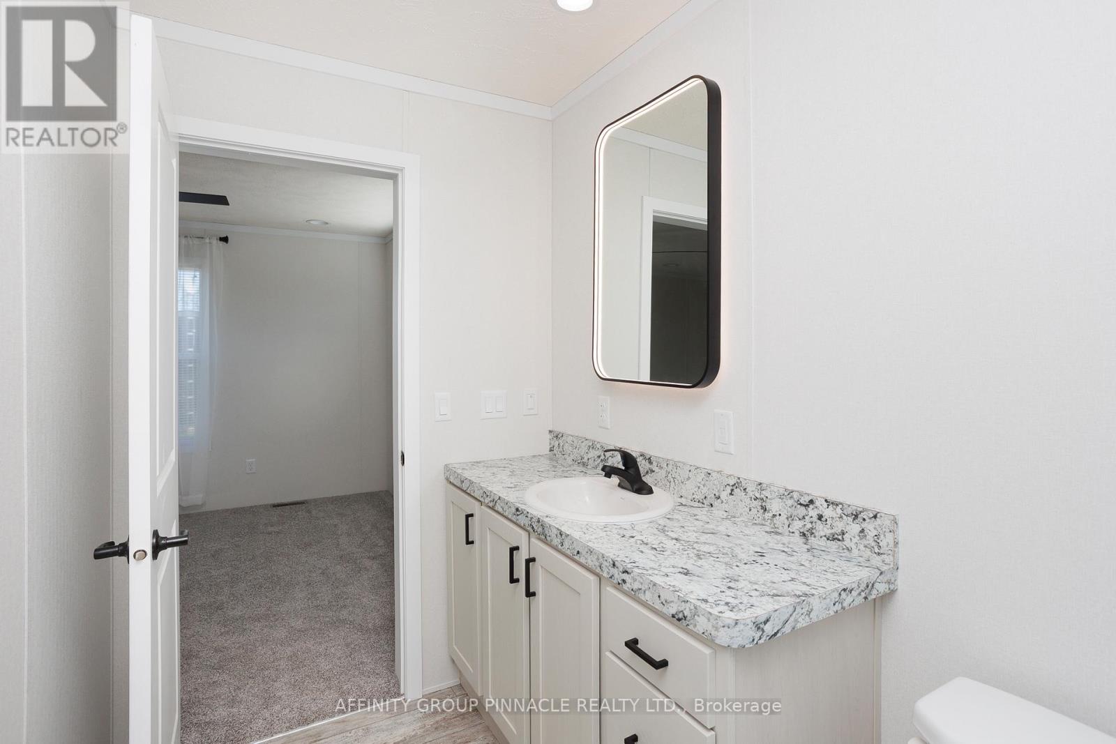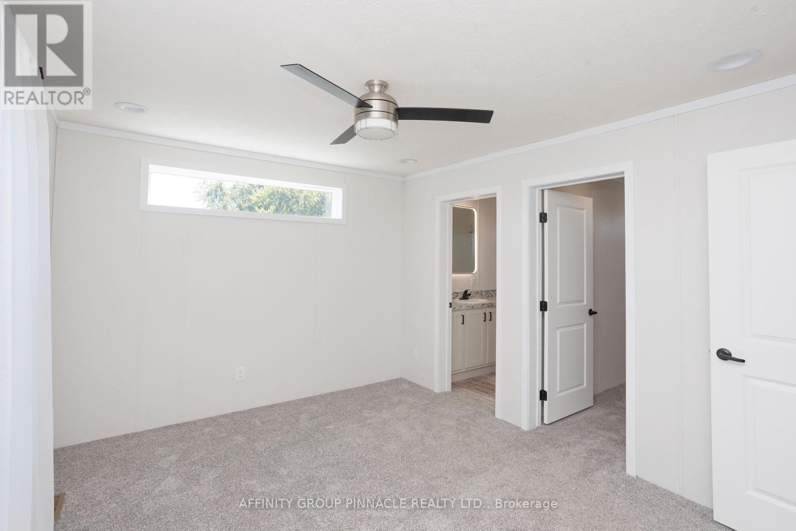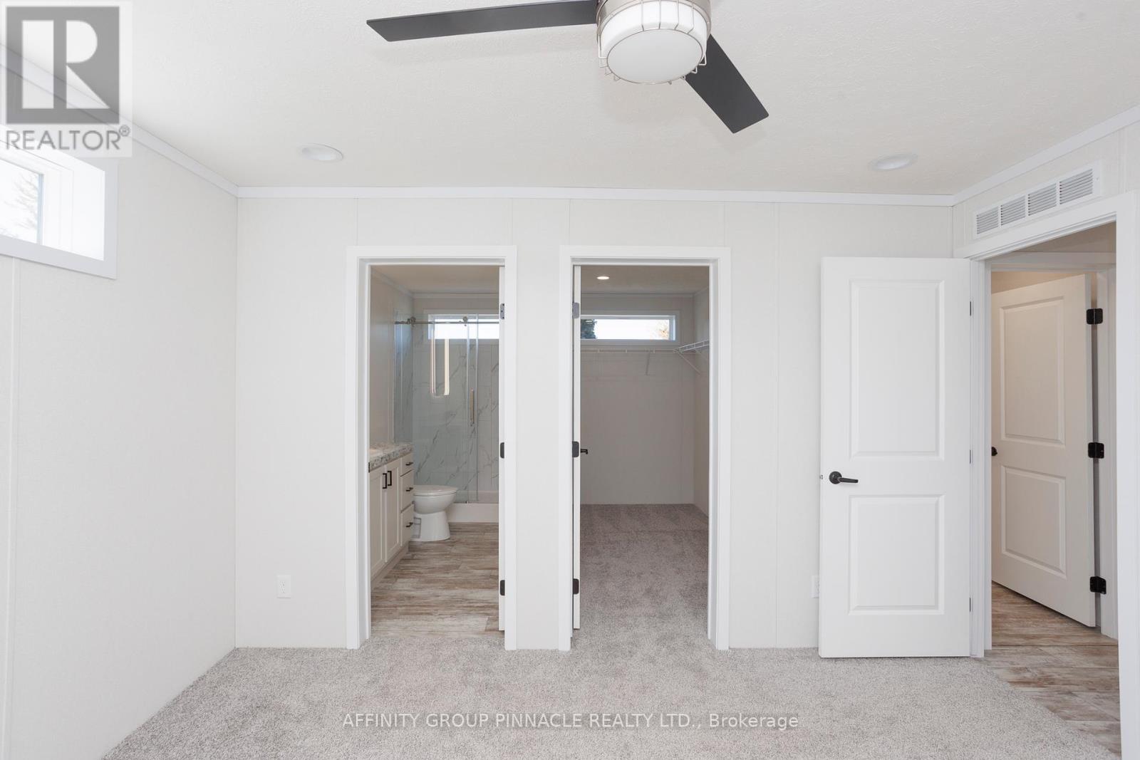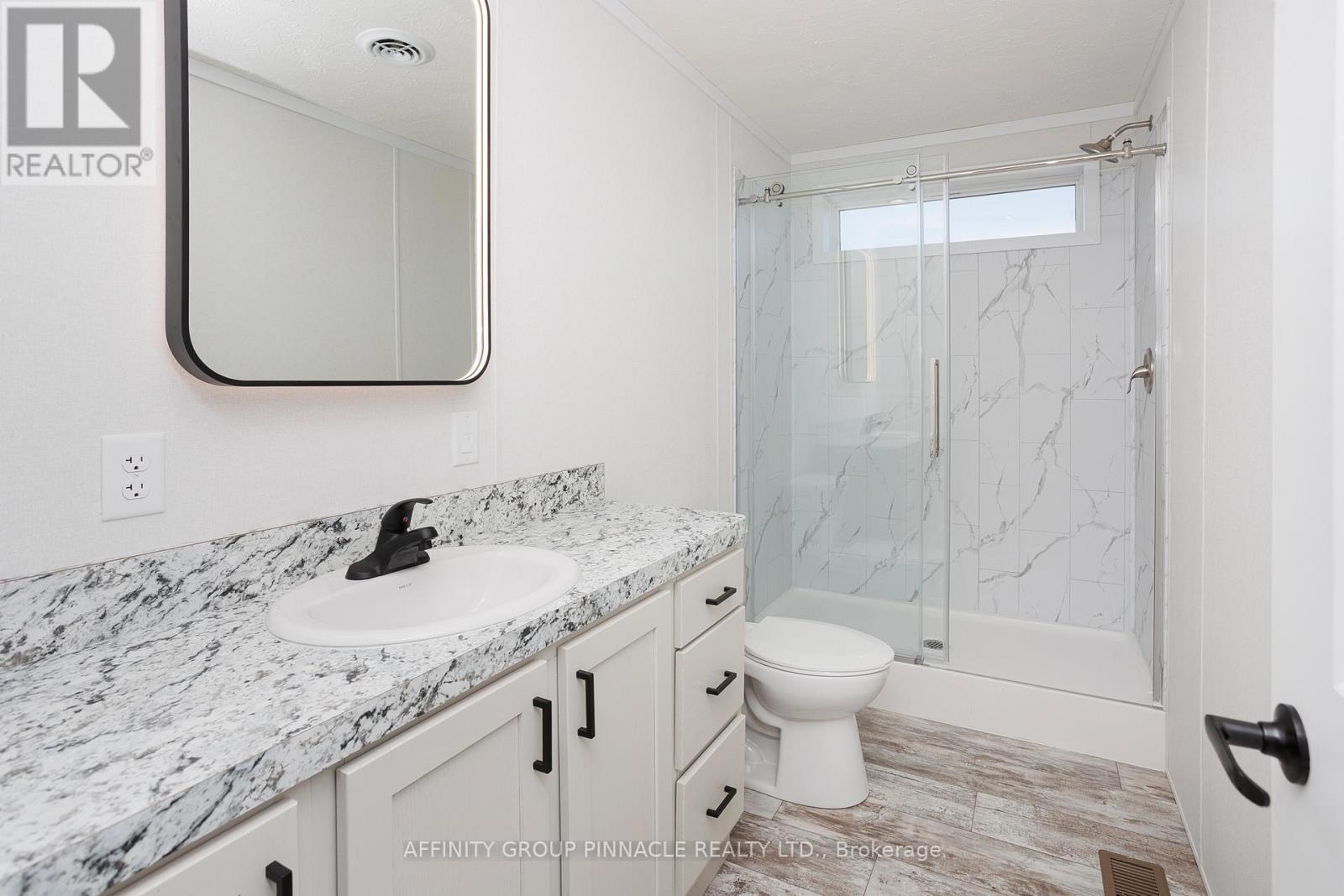Gorgeous, brand new, never lived in bungalow nestled in the sought after community of Joy Vista Estates. Inside this bright and spacious home you'll find an open concept layout with 2 good sized bedrooms, 2 full bathrooms with the primary bedroom featuring a large 10' x 5' walk-in closet and an ensuite bathroom with an easy access shower. This home also boasts a large living room / dining room combo + modern kitchen with island, stainless steel appliances + black stainless double sink. From the walkout you can enjoy the fresh country air on the huge deck overlooking the 145' x 100' lot that has space for your future garage. Main floor laundry room with cabinets for additional storage is an added bonus. Forced-air furnace + central air and soon to be paved driveway large enough for multiple vehicles + paved walkway to front steps. Everything is brand new including the appliances. Enjoy the perks of living in this quiet and peaceful location that features a community centre with outdoor pool, multipurpose event room, TV and kitchen facilities. Come take a look, nothing to do but turn the key and enjoy. (id:61423)