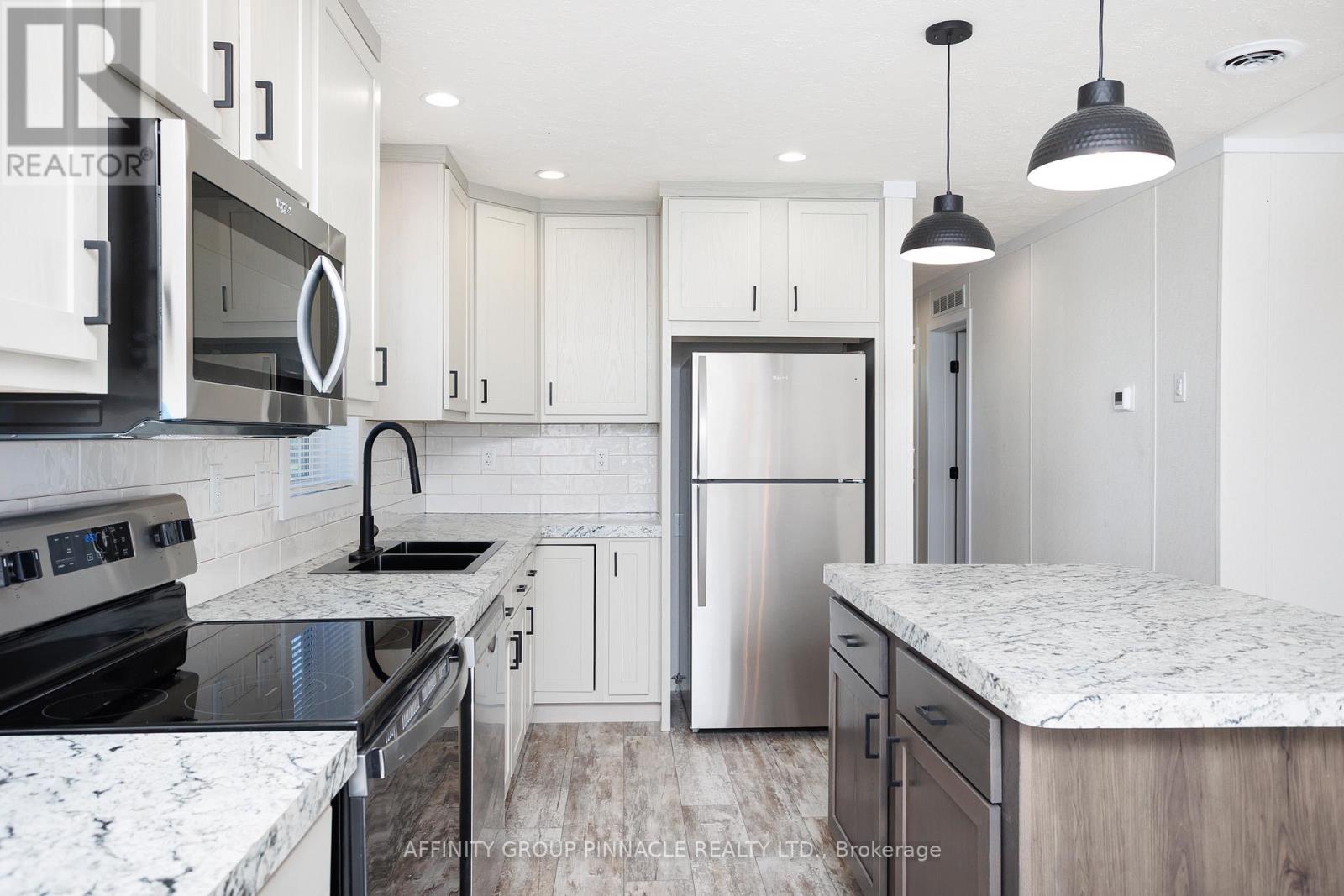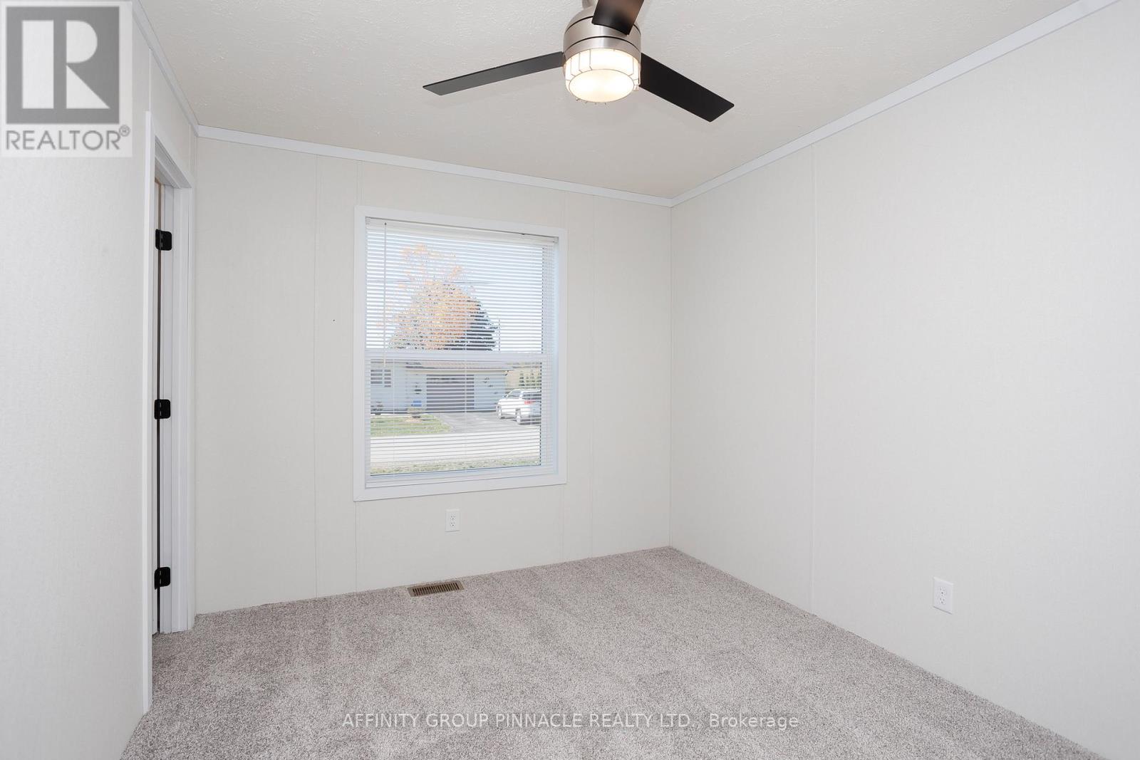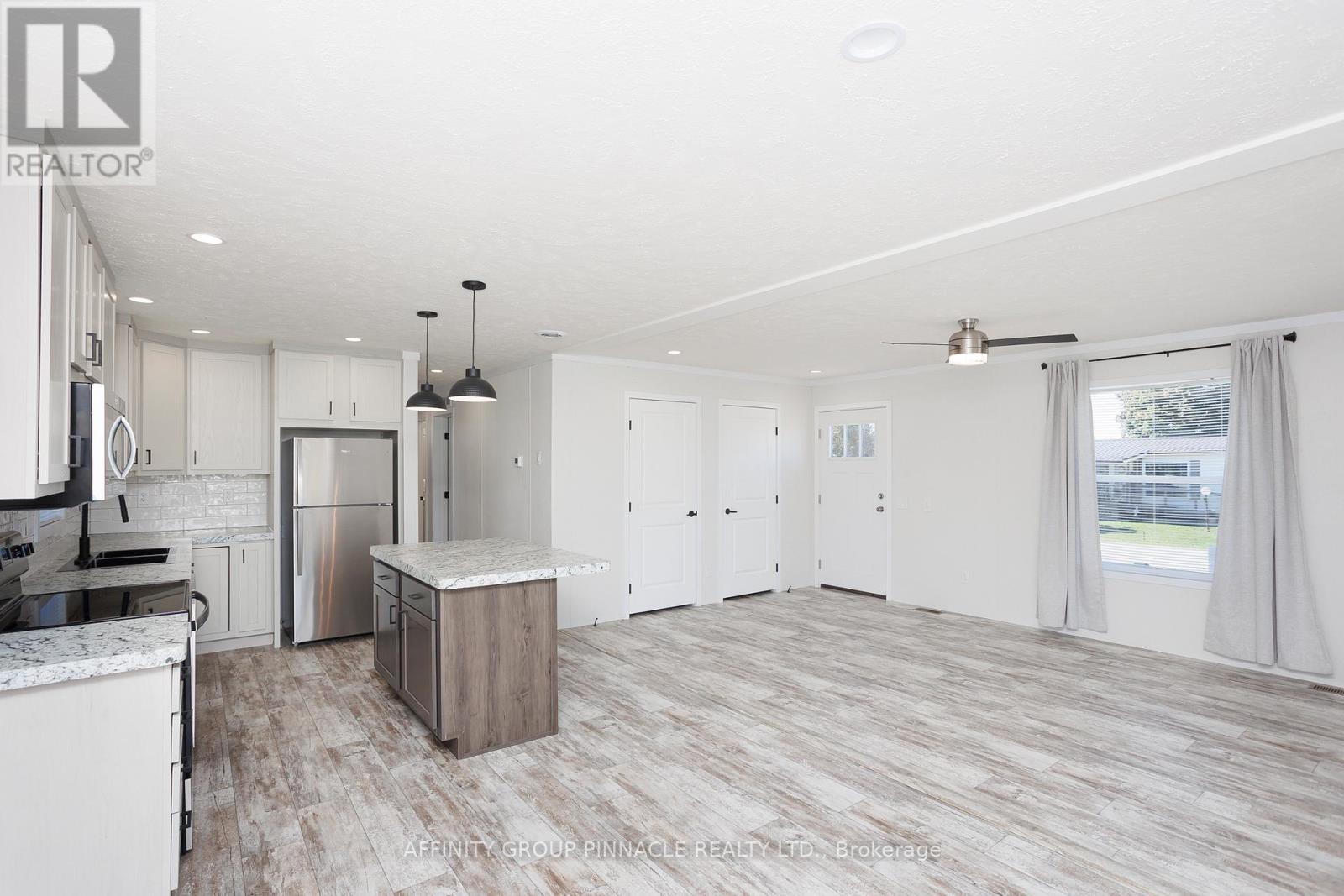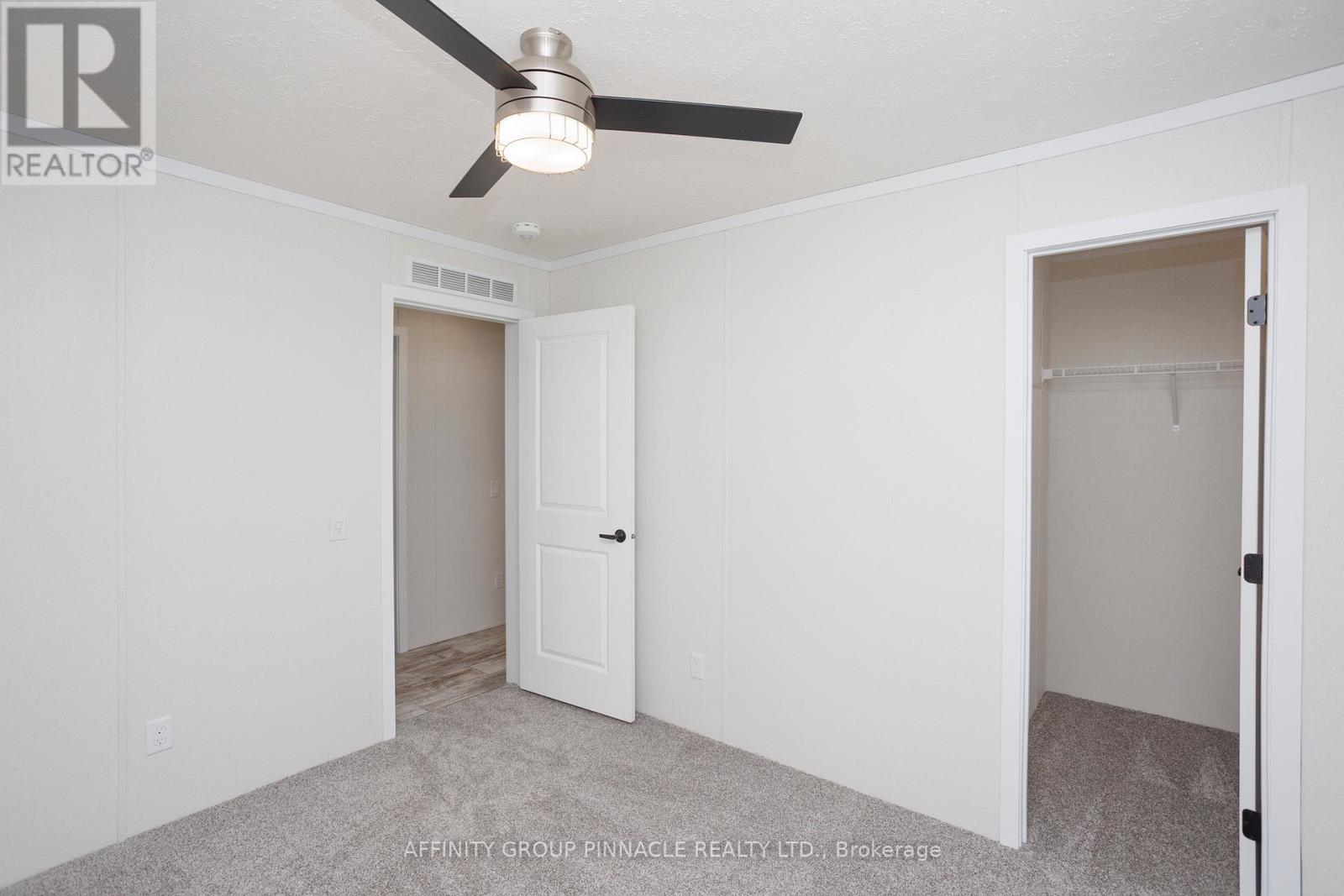 Gorgeous, brand new, never lived in bungalow nestled in the sought after community of Joy Vista Estates. Inside this bright and spacious home you'll find an open concept layout with 2 good sized bedrooms, 2 full bathrooms with the primary bedroom featuring a large 10' x 5' walk-in closet and an ensuite bathroom with an easy access shower. This home also boasts a large living room / dining room combo + modern kitchen with island, stainless steel appliances + black stainless double sink. From the walkout you can enjoy the fresh country air on the huge deck overlooking the 145' x 100' lot that has space for your future garage. Main floor laundry room with cabinets for additional storage is an added bonus. Forced-air furnace + central air and soon to be paved driveway large enough for multiple vehicles + paved walkway to front steps. Everything is brand new including the appliances. Enjoy the perks of living in this quiet and peaceful location that features a community centre with outdoor pool, multipurpose event room, TV and kitchen facilities. Come take a look, nothing to do but turn the key and enjoy. (id:61423)