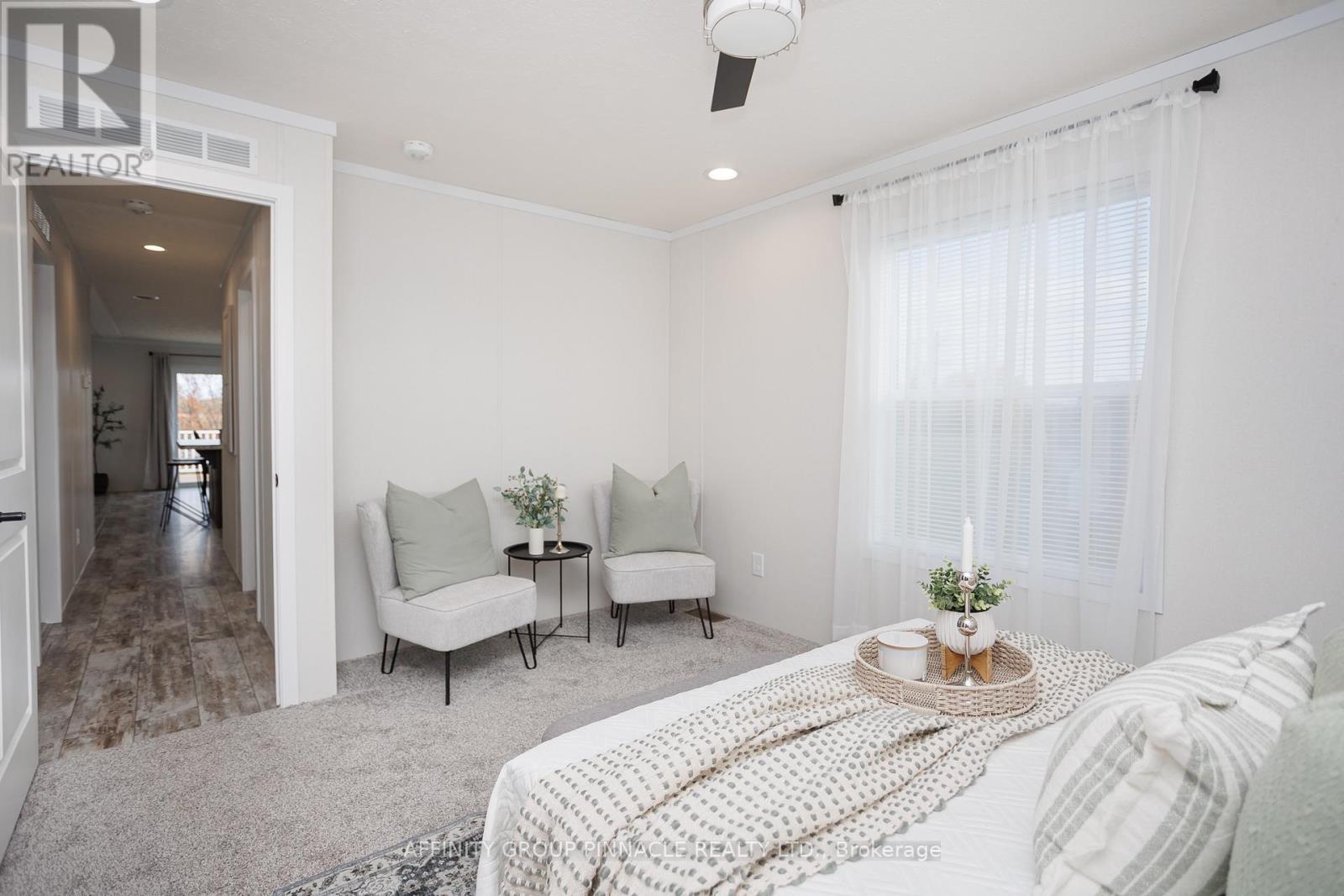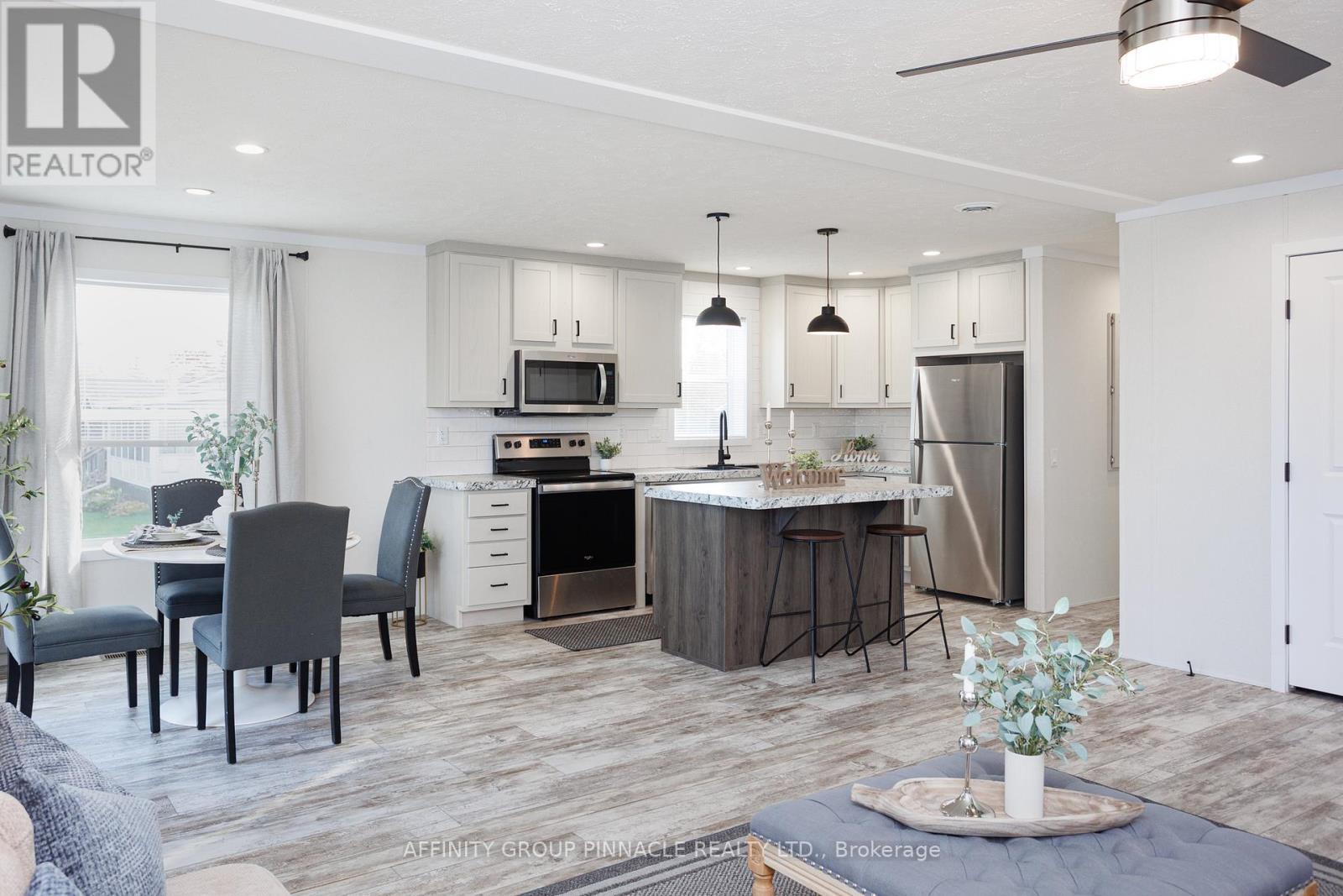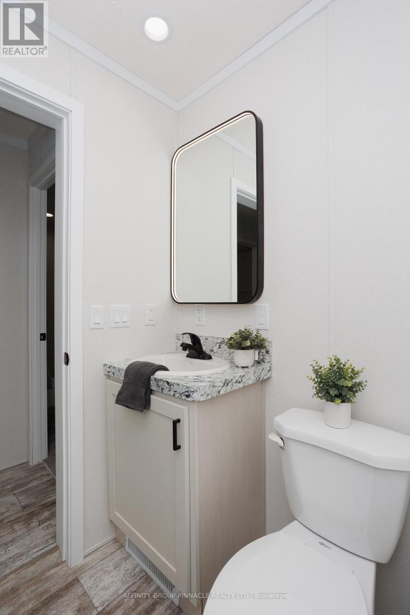 Gorgeous, brand new, never lived in bungalow nestled in the sought after community of Joy Vista Estates. Inside this bright and spacious home you'll find an open concept layout with 2 good sized bedrooms, 2 full bathrooms with the primary bedroom featuring a large 10' x 5' walk-in closet and an ensuite bathroom with an easy access shower. This home also boasts a large living room / dining room combo + modern kitchen with island, stainless steel appliances + black stainless double sink. From the walkout you can enjoy the fresh country air on the huge deck overlooking the 145' x 100' lot that has space for your future garage. Main floor laundry room with cabinets for additional storage is an added bonus. Forced-air furnace + central air and soon to be paved driveway large enough for multiple vehicles + paved walkway to front steps. Everything is brand new including the appliances. Enjoy the perks of living in this quiet and peaceful location that features a community centre with outdoor pool, multipurpose event room, TV and kitchen facilities. Come take a look, nothing to do but turn the key and enjoy. (id:61423)