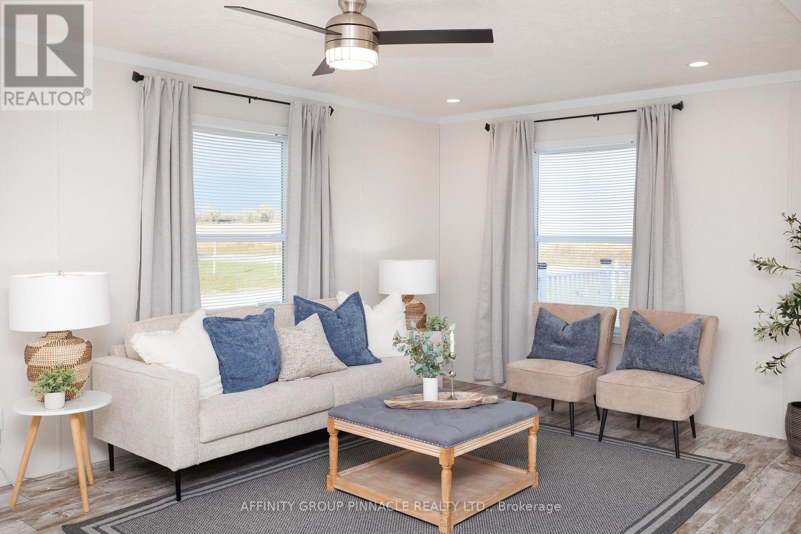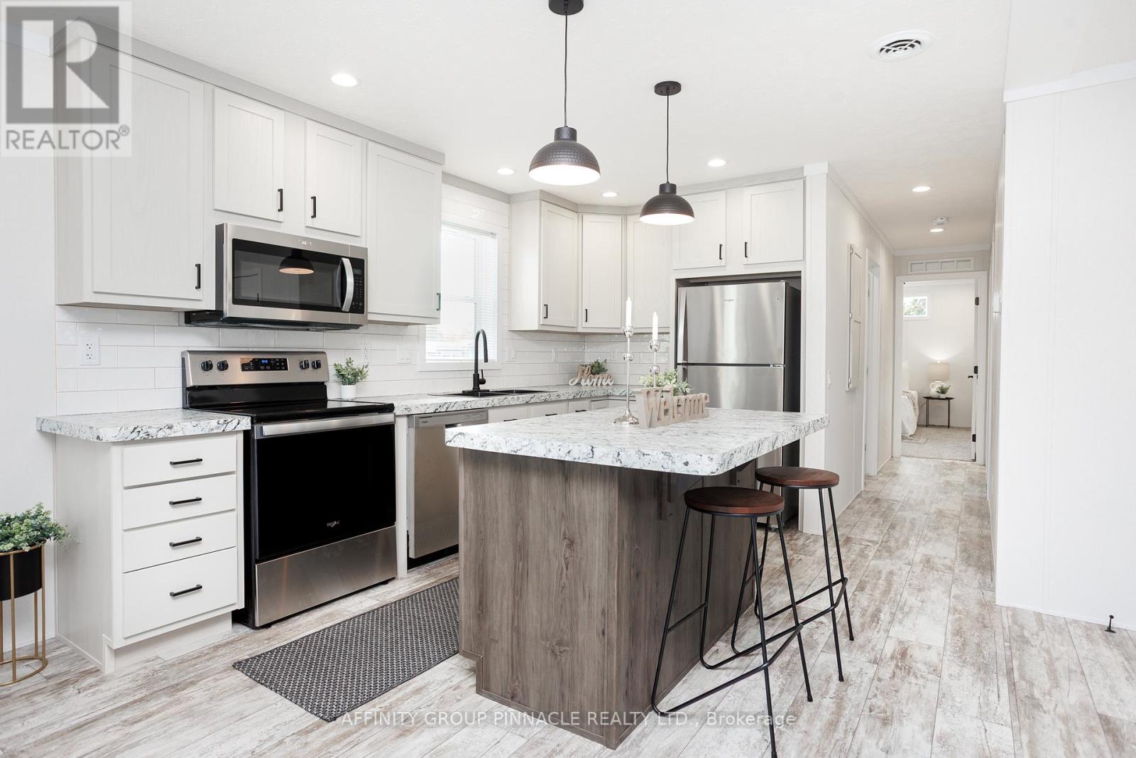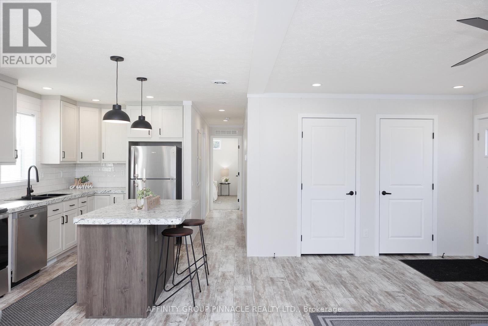 Gorgeous, brand new, never lived in bungalow nestled in the sought after community of Joy Vista Estates. Inside this bright and spacious home you'll find an open concept layout with 2 good sized bedrooms, 2 full bathrooms with the primary bedroom featuring a large 10' x 5' walk-in closet and an ensuite bathroom with an easy access shower. This home also boasts a large living room / dining room combo + modern kitchen with island, stainless steel appliances + black stainless double sink. From the walkout you can enjoy the fresh country air on the huge deck overlooking the 145' x 100' lot that has space for your future garage. Main floor laundry room with cabinets for additional storage is an added bonus. Forced-air furnace + central air and soon to be paved driveway large enough for multiple vehicles + paved walkway to front steps. Everything is brand new including the appliances. Enjoy the perks of living in this quiet and peaceful location that features a community centre with outdoor pool, multipurpose event room, TV and kitchen facilities. Come take a look, nothing to do but turn the key and enjoy. (id:61423)
