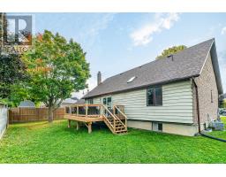 Situated on a pie-shaped lot in a desirable north-end cul-de-sac, this updated 2+1 bedroom, 3 bathroom bungalow is just steps from schools and parks. The open-concept kitchen features a large granite island, perfect for family meals and entertaining. The main floor offers two spacious bedrooms, including a primary suite with a walk-in closet and a 3-piece ensuite, plus a full 4-piece bathroom with a skylight. The lower level boasts high ceilings, with plenty of natural light, a third bedroom, and an additional 3-piece bathroom, with plenty of space to add another bedroom and a family room if desired. An attached 1.5-car garage provides convenient parking and extra storage. Recent upgrades ensure peace of mind and efficiency, including: new roof (2024/2025), skylight (2024), eavestroughs (2025), deck (2024), flooring on main floor (2024), sliding glass door (2025), basement waterproofing (2023), GenerLink hookup (2025), and new vinyl siding to be installed before closing. (id:61423)