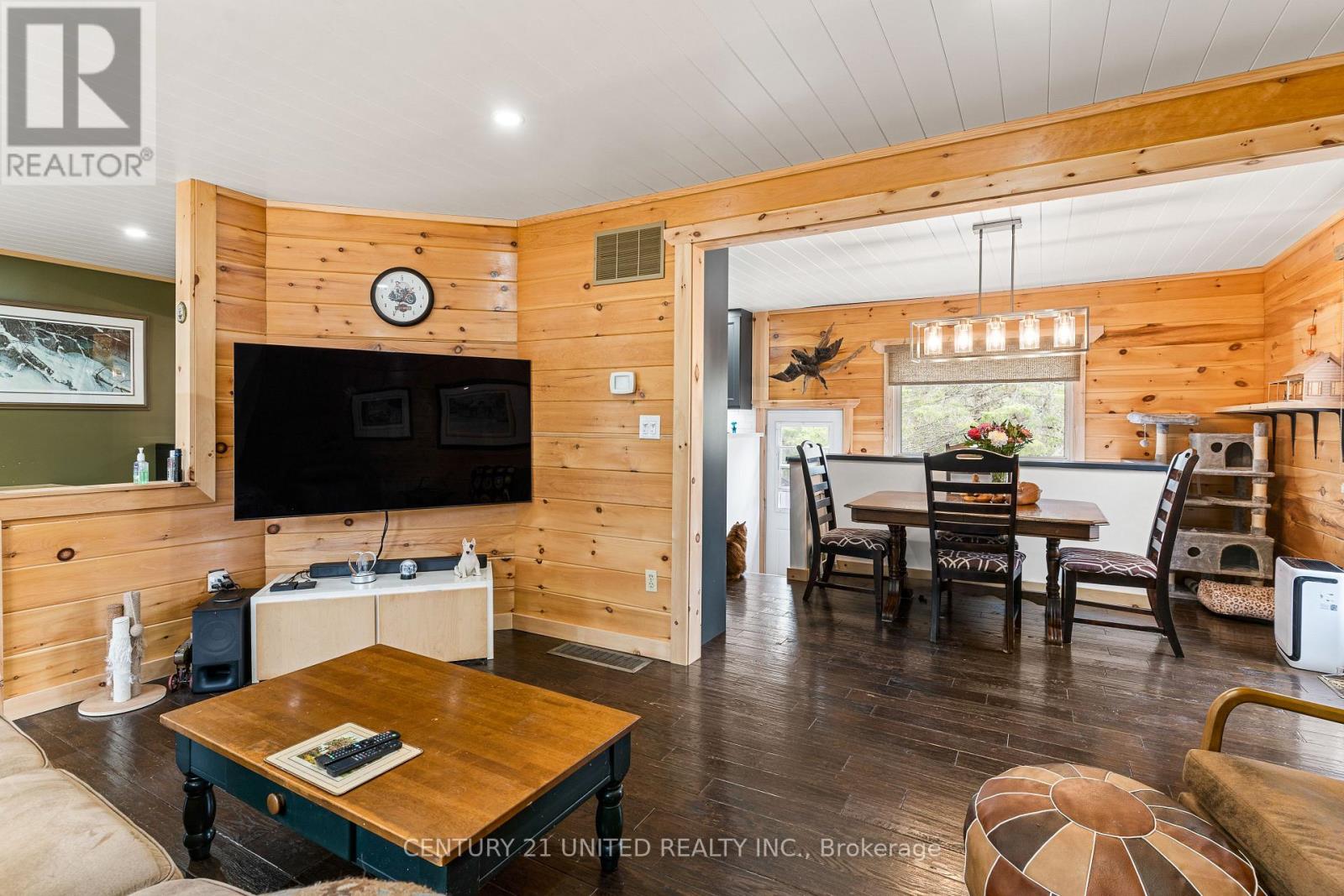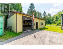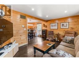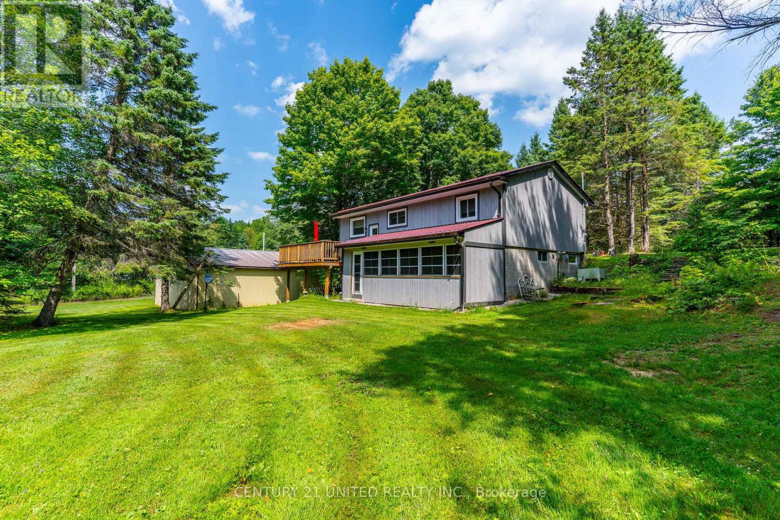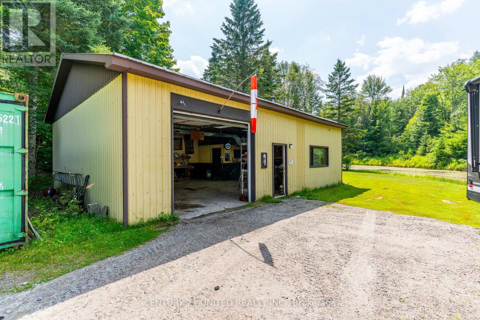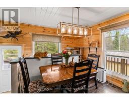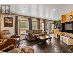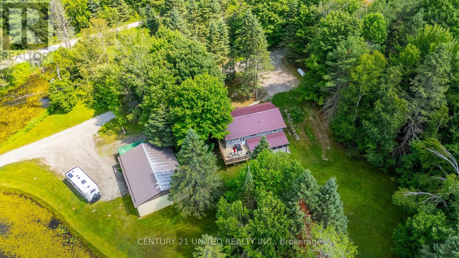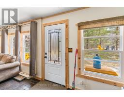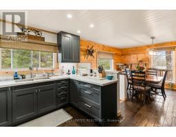Welcome to your Highlands East escape-where country living meets lake lifestyle. Set on a private 1.37-acre pie-shaped lot, this updated, well-kept 2+1 bedroom bungalow offers deeded access to beautiful Tamarack Lake with a sandy beach perfect for swimming, paddling, and enjoying summer days. Inside, the home offers a bright and comfortable layout with an inviting living room, spacious dining area, updated kitchen, two main floor bedrooms, and a full bath. The finished walkout lower level adds excellent flexibility with a family room, third bedroom, laundry area, powder room, and kitchenette-ideal for guests, extended family, or potential in-law setup. Outside is where this property truly shines. Surrounded by trees and nature, the grounds feature a private pond, deck, porch, and plenty of room to roam. The impressive detached 4-car garage is perfect for hobbyists, contractors, toy storage, or anyone needing serious workspace, with additional parking for guests and recreational vehicles. Enjoy year-round living with propane forced air heat, central air, drilled well, septic system, and a wired-in Generac generator that powers the home during outages. High-speed internet is available, and the property is conveniently located a short drive to Haliburton with endless nearby lakes, trails, and recreation. A rare opportunity to enjoy privacy, space, and deeded lake access-all in one affordable package. (id:61423)