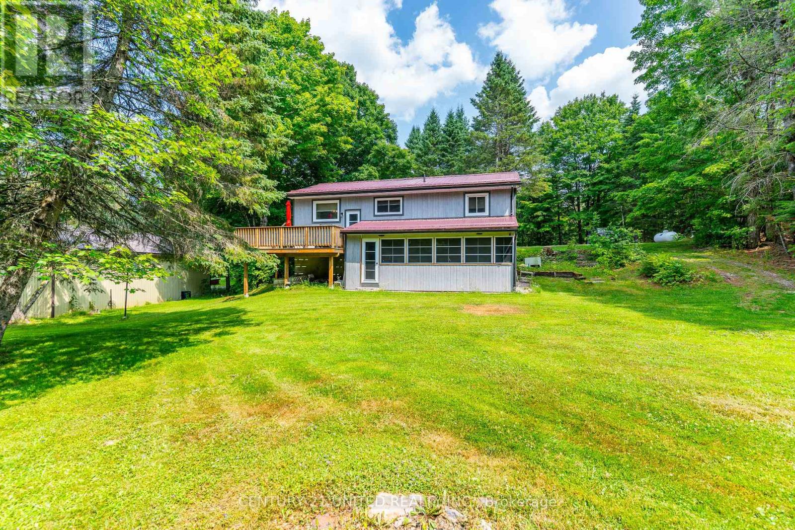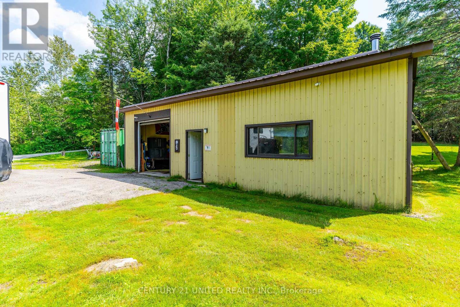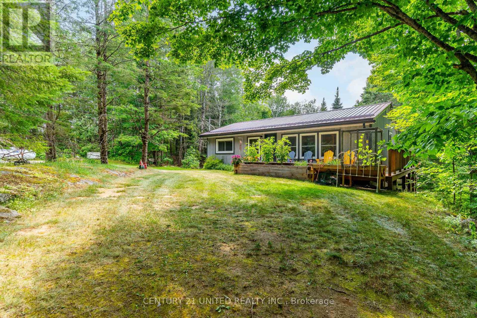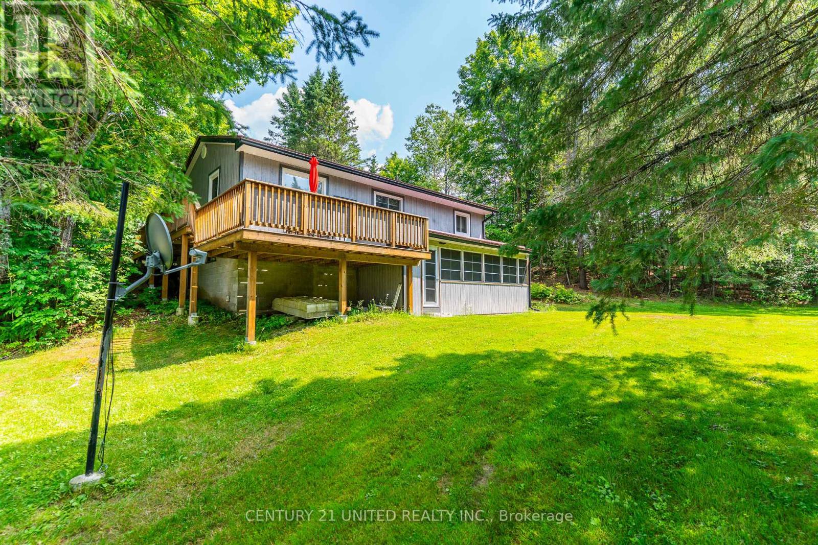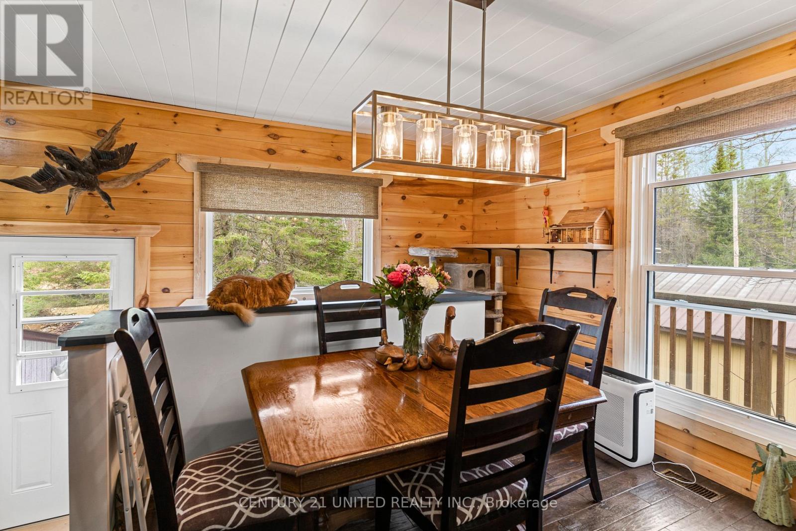 Welcome to your Highlands East escape-where country living meets lake lifestyle. Set on a private 1.37-acre pie-shaped lot, this updated, well-kept 2+1 bedroom bungalow offers deeded access to beautiful Tamarack Lake with a sandy beach perfect for swimming, paddling, and enjoying summer days. Inside, the home offers a bright and comfortable layout with an inviting living room, spacious dining area, updated kitchen, two main floor bedrooms, and a full bath. The finished walkout lower level adds excellent flexibility with a family room, third bedroom, laundry area, powder room, and kitchenette-ideal for guests, extended family, or potential in-law setup. Outside is where this property truly shines. Surrounded by trees and nature, the grounds feature a private pond, deck, porch, and plenty of room to roam. The impressive detached 4-car garage is perfect for hobbyists, contractors, toy storage, or anyone needing serious workspace, with additional parking for guests and recreational vehicles. Enjoy year-round living with propane forced air heat, central air, drilled well, septic system, and a wired-in Generac generator that powers the home during outages. High-speed internet is available, and the property is conveniently located a short drive to Haliburton with endless nearby lakes, trails, and recreation. A rare opportunity to enjoy privacy, space, and deeded lake access-all in one affordable package. (id:61423)