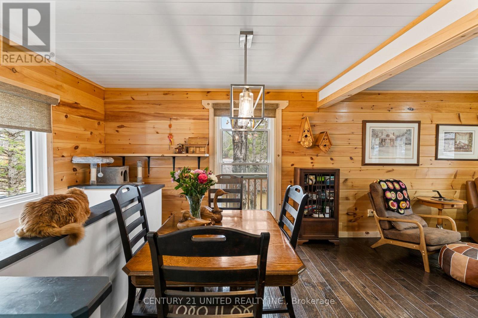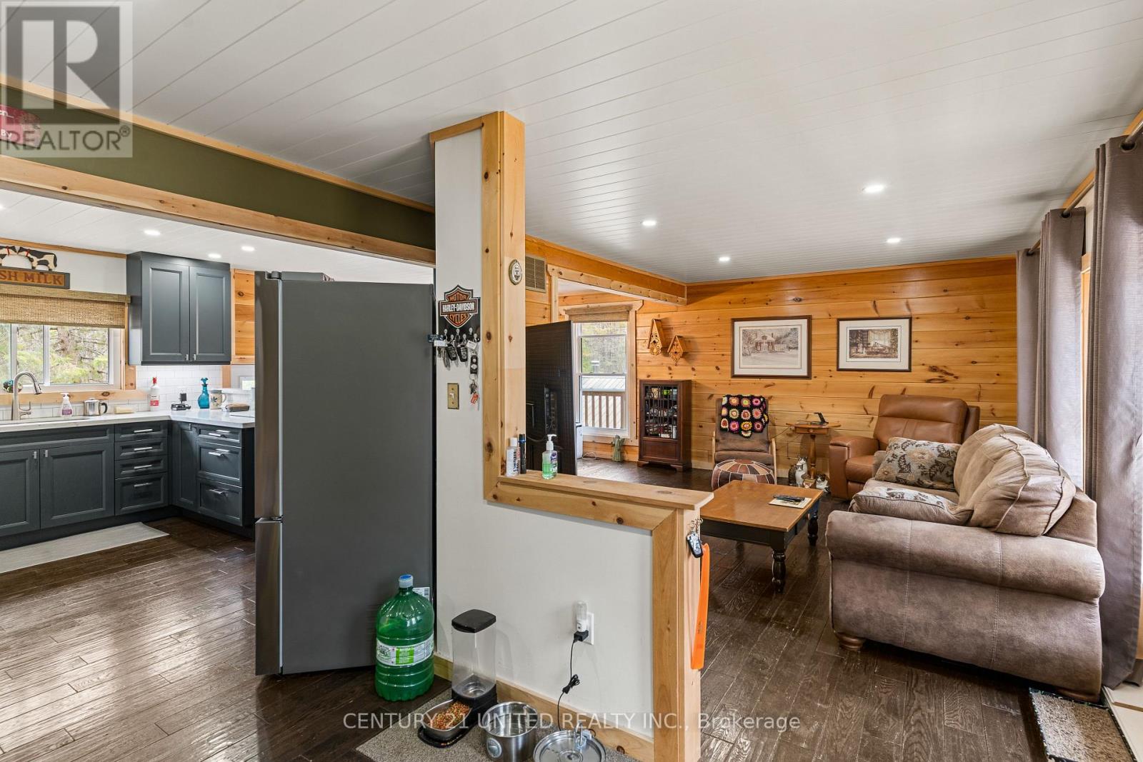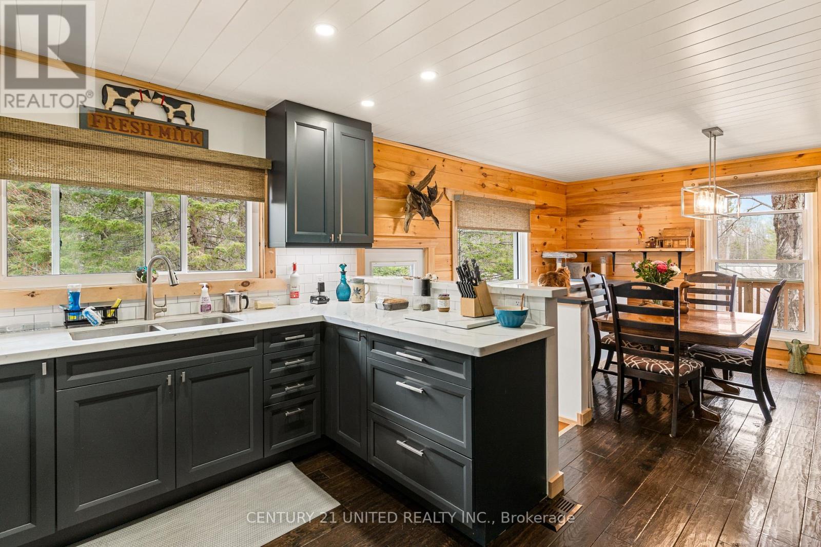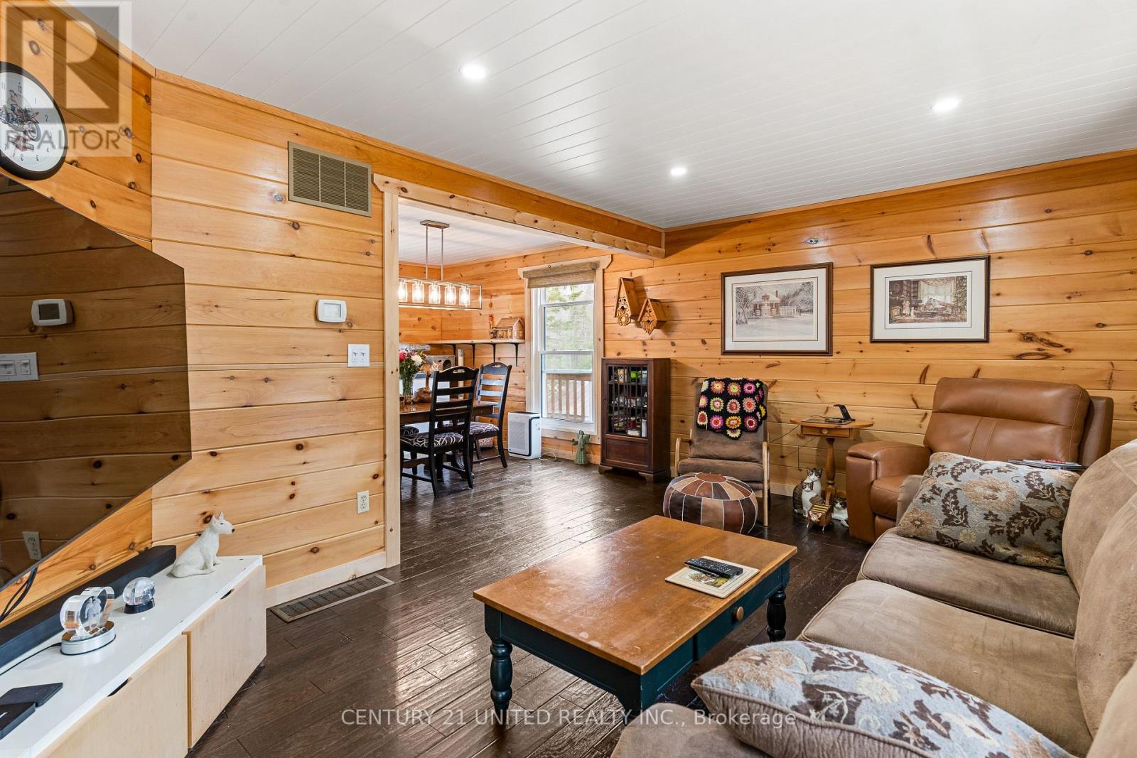 Welcome to your Highlands East escape-where country living meets lake lifestyle. Set on a private 1.37-acre pie-shaped lot, this updated, well-kept 2+1 bedroom bungalow offers deeded access to beautiful Tamarack Lake with a sandy beach perfect for swimming, paddling, and enjoying summer days. Inside, the home offers a bright and comfortable layout with an inviting living room, spacious dining area, updated kitchen, two main floor bedrooms, and a full bath. The finished walkout lower level adds excellent flexibility with a family room, third bedroom, laundry area, powder room, and kitchenette-ideal for guests, extended family, or potential in-law setup. Outside is where this property truly shines. Surrounded by trees and nature, the grounds feature a private pond, deck, porch, and plenty of room to roam. The impressive detached 4-car garage is perfect for hobbyists, contractors, toy storage, or anyone needing serious workspace, with additional parking for guests and recreational vehicles. Enjoy year-round living with propane forced air heat, central air, drilled well, septic system, and a wired-in Generac generator that powers the home during outages. High-speed internet is available, and the property is conveniently located a short drive to Haliburton with endless nearby lakes, trails, and recreation. A rare opportunity to enjoy privacy, space, and deeded lake access-all in one affordable package. (id:61423)