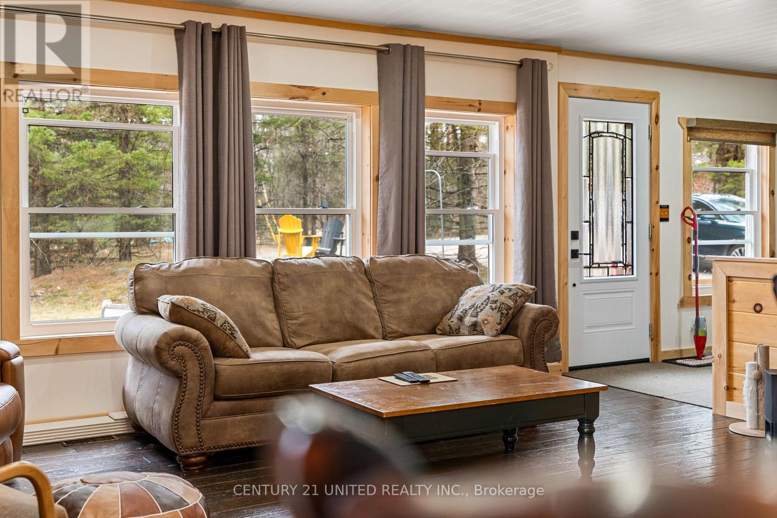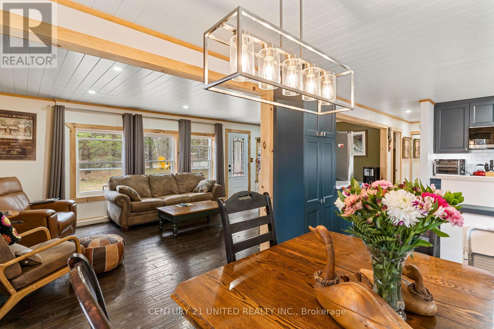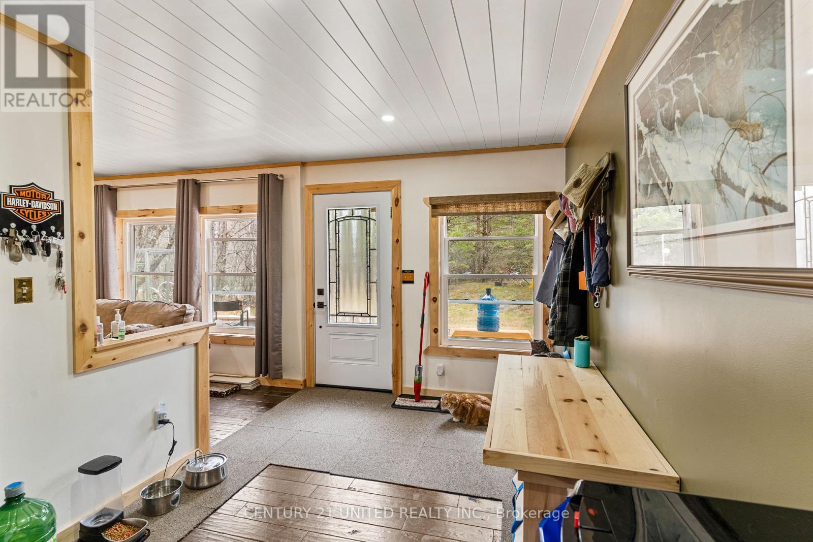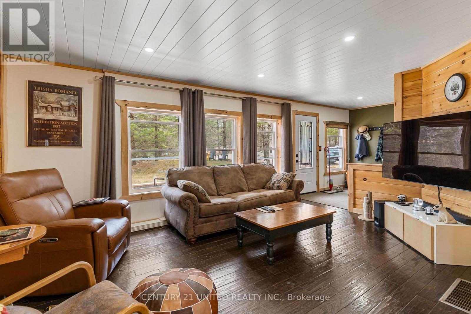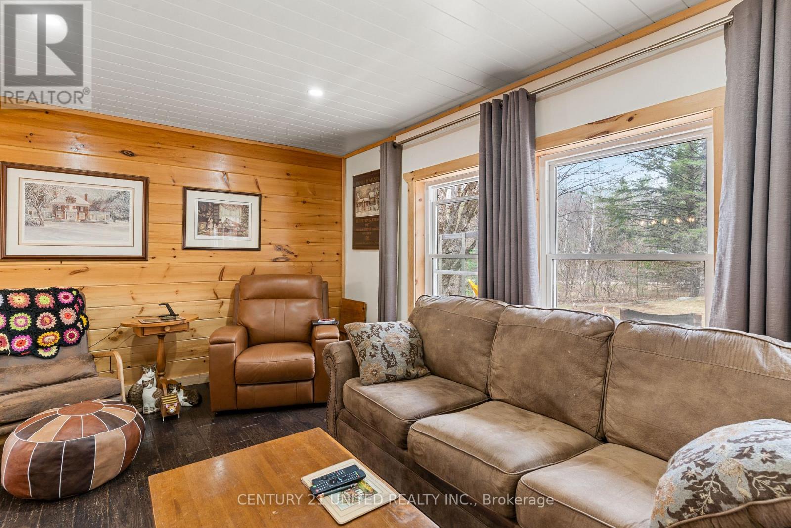 Welcome to your Highlands East escape-where country living meets lake lifestyle. Set on a private 1.37-acre pie-shaped lot, this updated, well-kept 2+1 bedroom bungalow offers deeded access to beautiful Tamarack Lake with a sandy beach perfect for swimming, paddling, and enjoying summer days. Inside, the home offers a bright and comfortable layout with an inviting living room, spacious dining area, updated kitchen, two main floor bedrooms, and a full bath. The finished walkout lower level adds excellent flexibility with a family room, third bedroom, laundry area, powder room, and kitchenette-ideal for guests, extended family, or potential in-law setup. Outside is where this property truly shines. Surrounded by trees and nature, the grounds feature a private pond, deck, porch, and plenty of room to roam. The impressive detached 4-car garage is perfect for hobbyists, contractors, toy storage, or anyone needing serious workspace, with additional parking for guests and recreational vehicles. Enjoy year-round living with propane forced air heat, central air, drilled well, septic system, and a wired-in Generac generator that powers the home during outages. High-speed internet is available, and the property is conveniently located a short drive to Haliburton with endless nearby lakes, trails, and recreation. A rare opportunity to enjoy privacy, space, and deeded lake access-all in one affordable package. (id:61423)