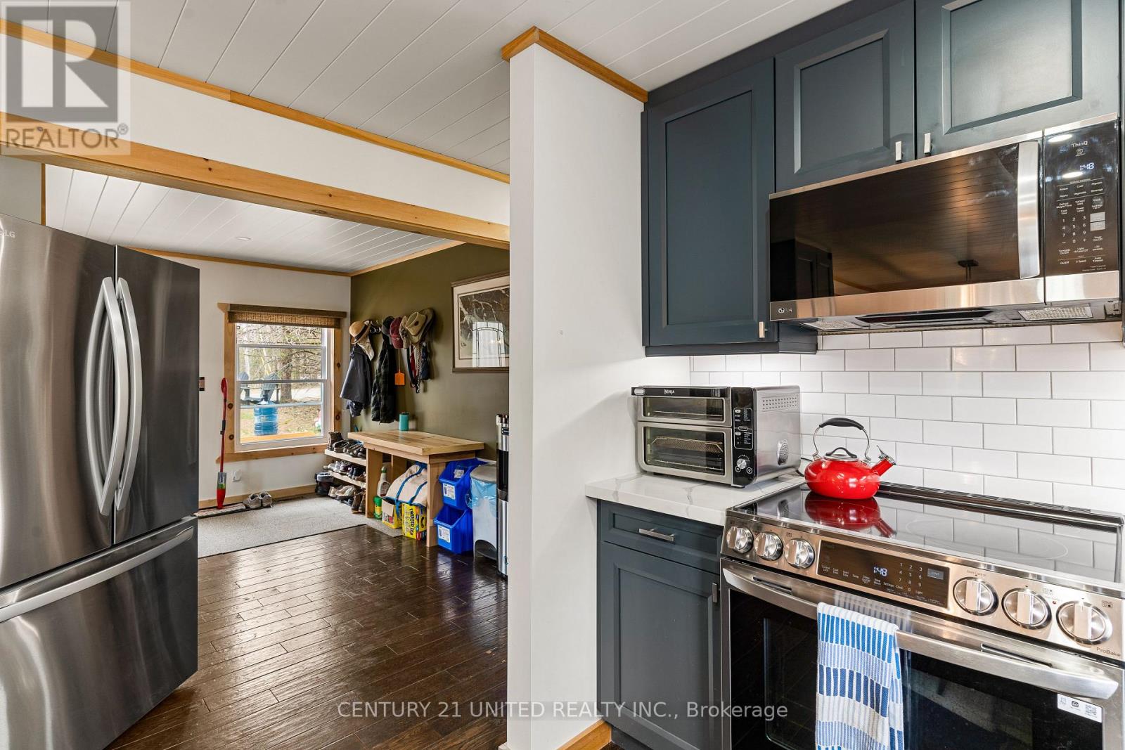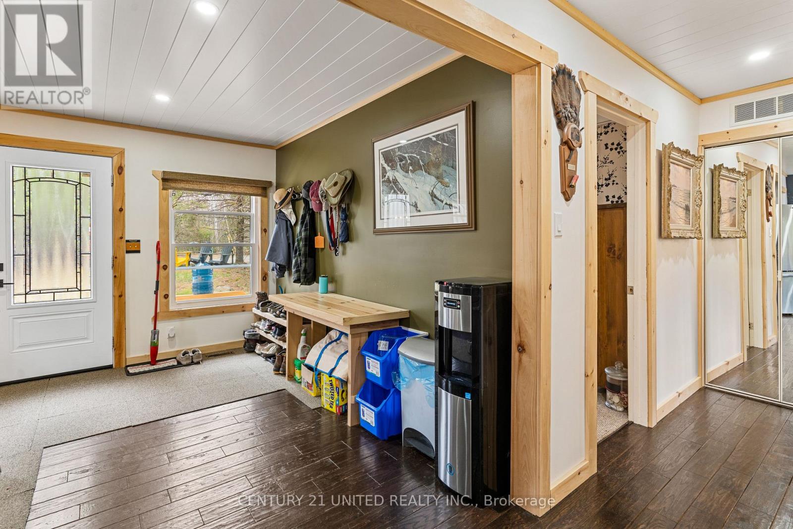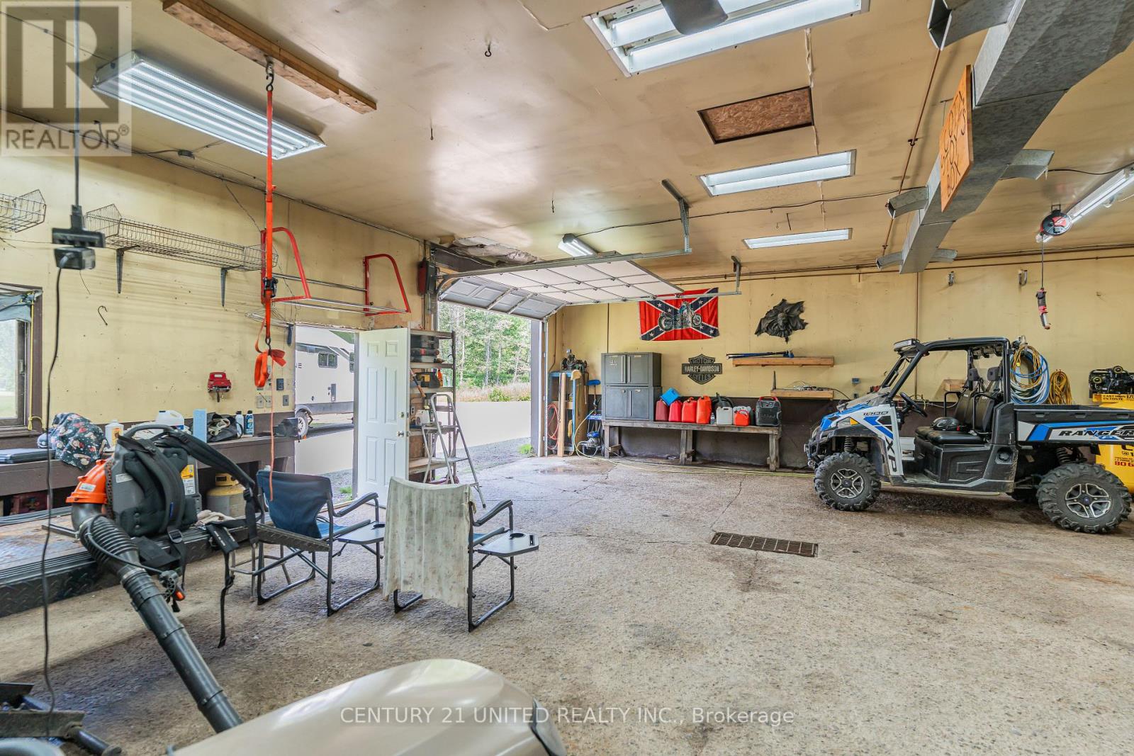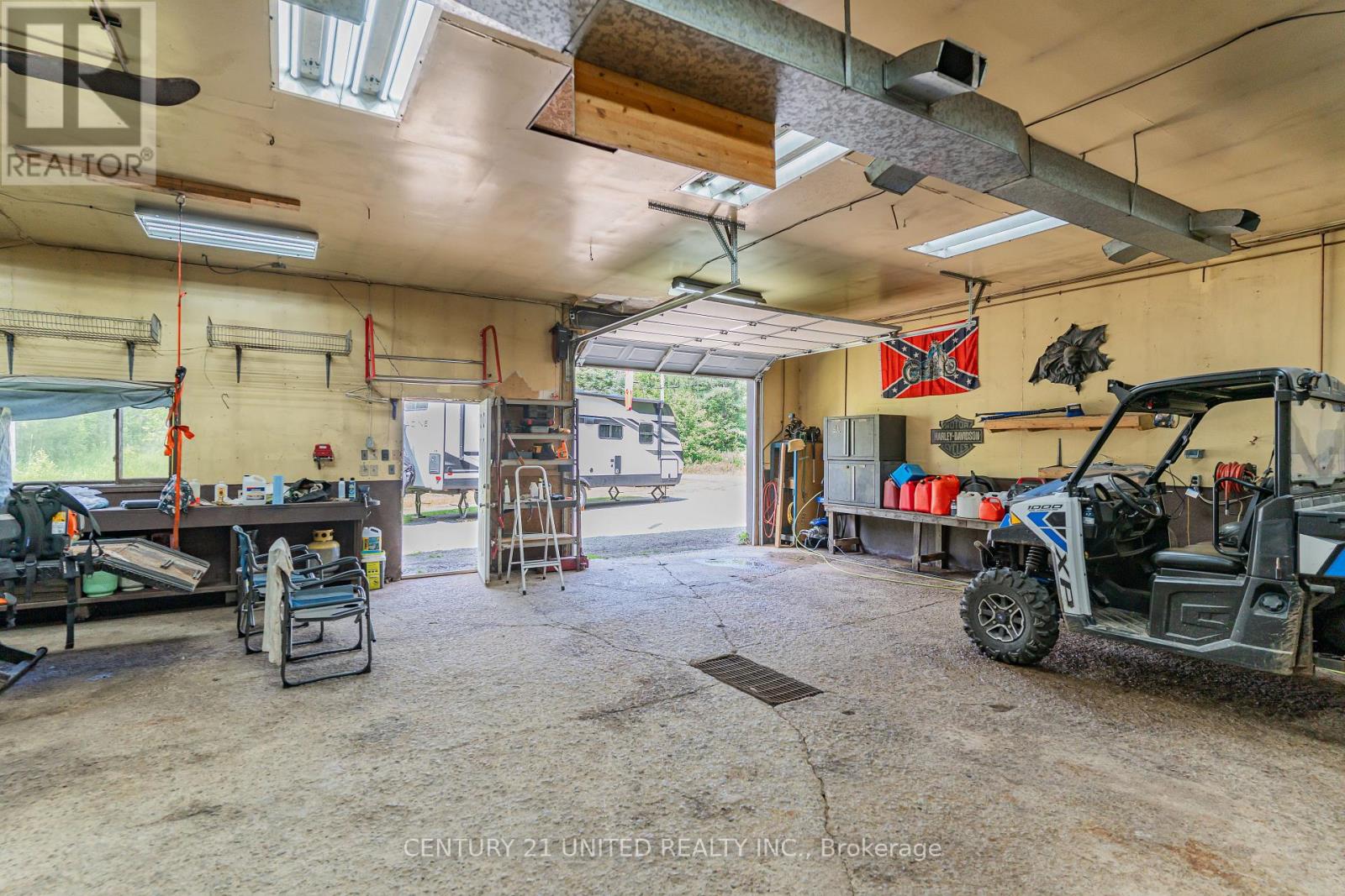 Welcome to your Highlands East escape-where country living meets lake lifestyle. Set on a private 1.37-acre pie-shaped lot, this updated, well-kept 2+1 bedroom bungalow offers deeded access to beautiful Tamarack Lake with a sandy beach perfect for swimming, paddling, and enjoying summer days. Inside, the home offers a bright and comfortable layout with an inviting living room, spacious dining area, updated kitchen, two main floor bedrooms, and a full bath. The finished walkout lower level adds excellent flexibility with a family room, third bedroom, laundry area, powder room, and kitchenette-ideal for guests, extended family, or potential in-law setup. Outside is where this property truly shines. Surrounded by trees and nature, the grounds feature a private pond, deck, porch, and plenty of room to roam. The impressive detached 4-car garage is perfect for hobbyists, contractors, toy storage, or anyone needing serious workspace, with additional parking for guests and recreational vehicles. Enjoy year-round living with propane forced air heat, central air, drilled well, septic system, and a wired-in Generac generator that powers the home during outages. High-speed internet is available, and the property is conveniently located a short drive to Haliburton with endless nearby lakes, trails, and recreation. A rare opportunity to enjoy privacy, space, and deeded lake access-all in one affordable package. (id:61423)