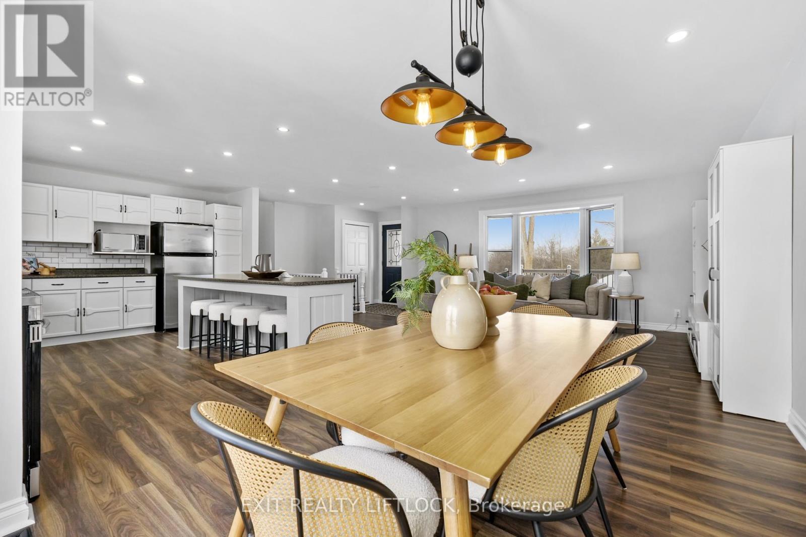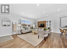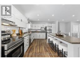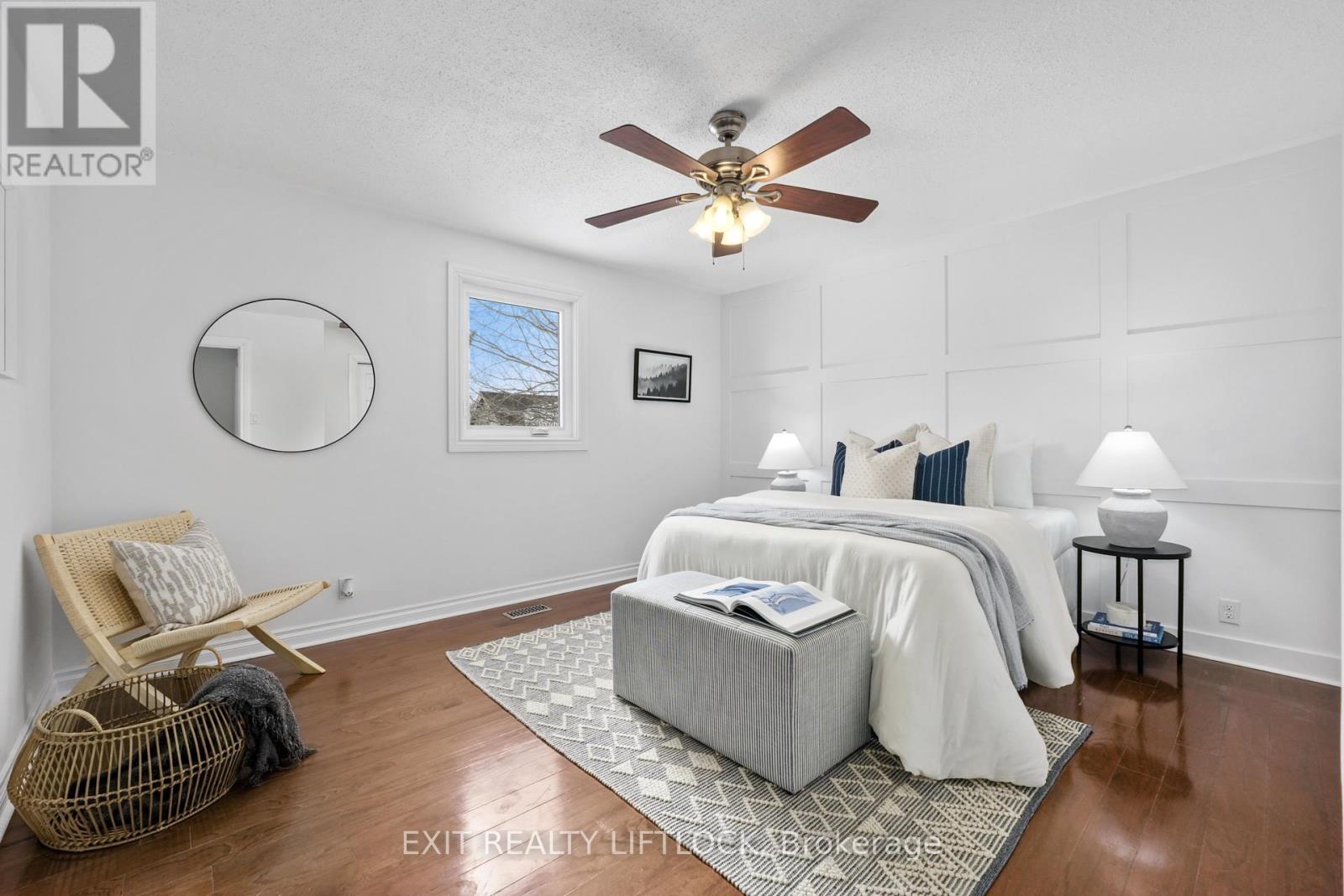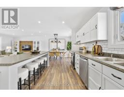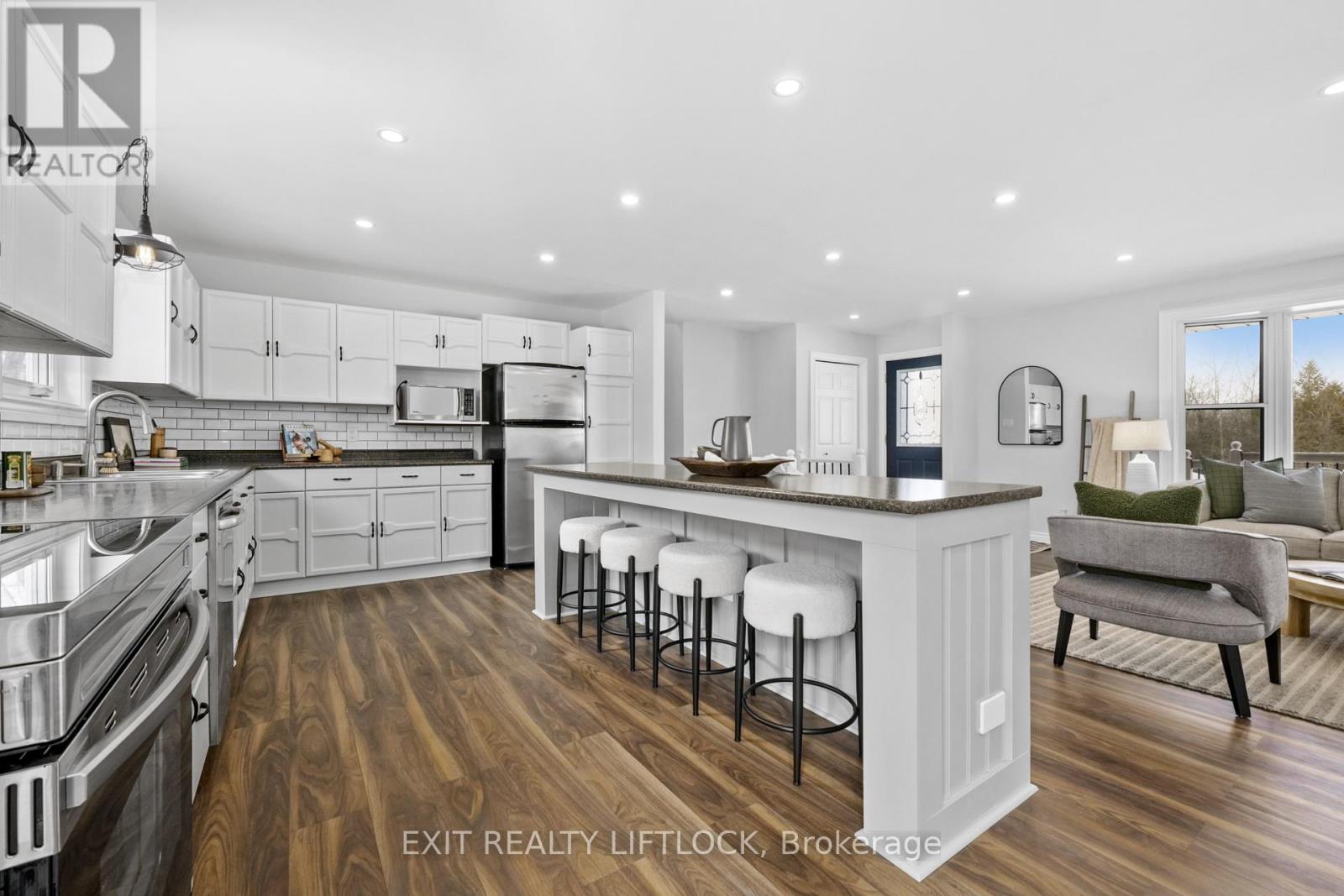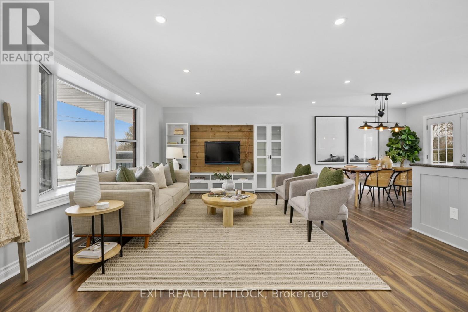 Set on a large, private lot on the edge of town, this beautifully updated four-level side-split offers the best of country-style living with everyday convenience close by. A bright, open-concept main level welcomes you with seamless living, dining, and kitchen spaces, complemented by stainless steel appliances and an inviting flow ideal for entertaining. The upper level features three bedrooms, including a stylish primary retreat with a striking feature wall and hardwood flooring throughout. The spa-inspired main bathroom is a true showstopper, complete with a standalone air-jet tub, walk-in shower, and modern LED pot lighting. The lower level adds versatility with a fourth bedroom, a convenient two-piece bath, and a beautifully finished laundry room with sink and high counters. The large drive is paved and continues behind the garage to the shed. It was formerly used as a basketball court. An attached double-car garage and a serene, oversized lot just minutes from town complete this exceptional offering. (id:61423)