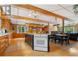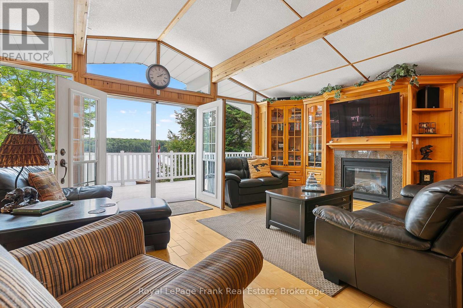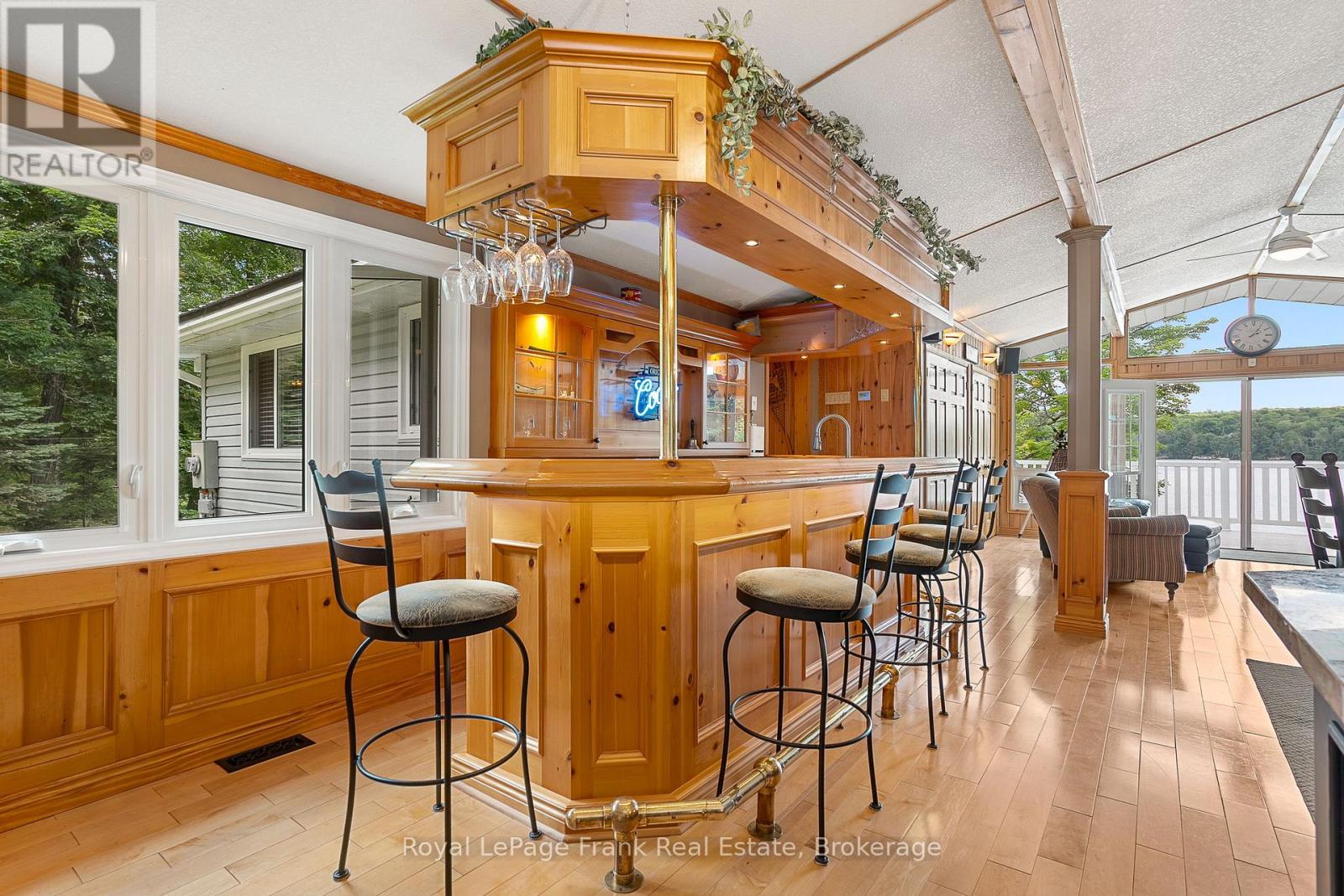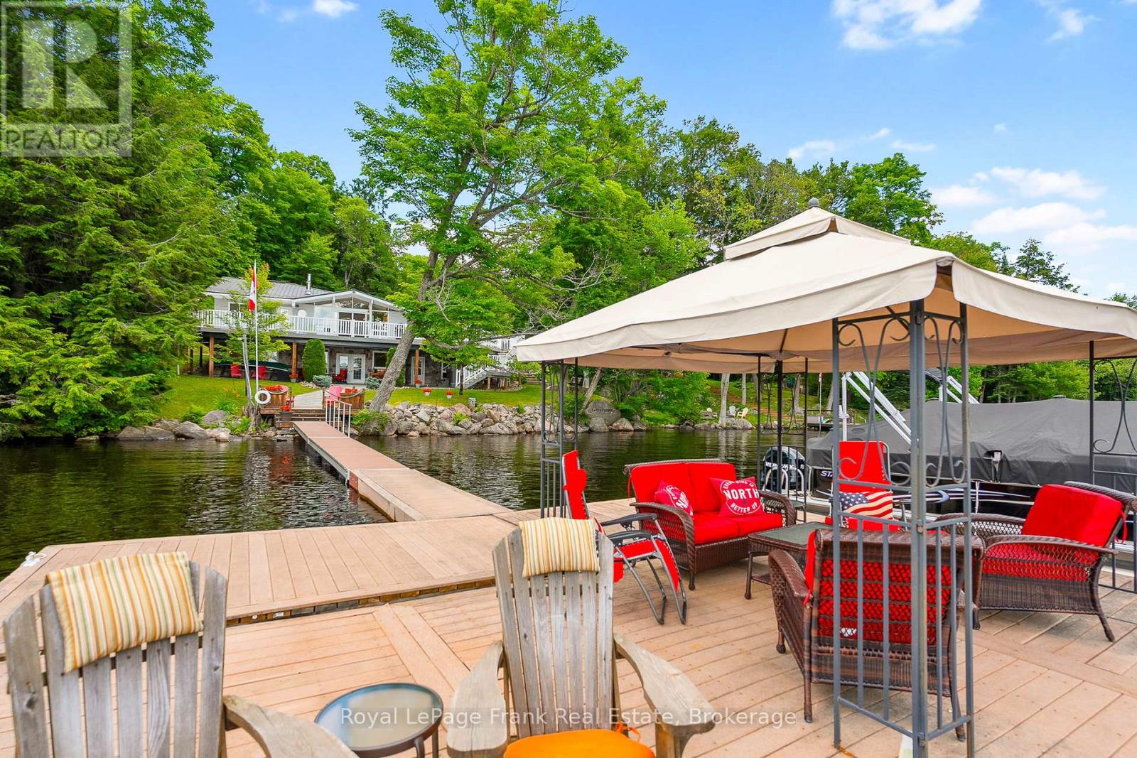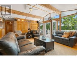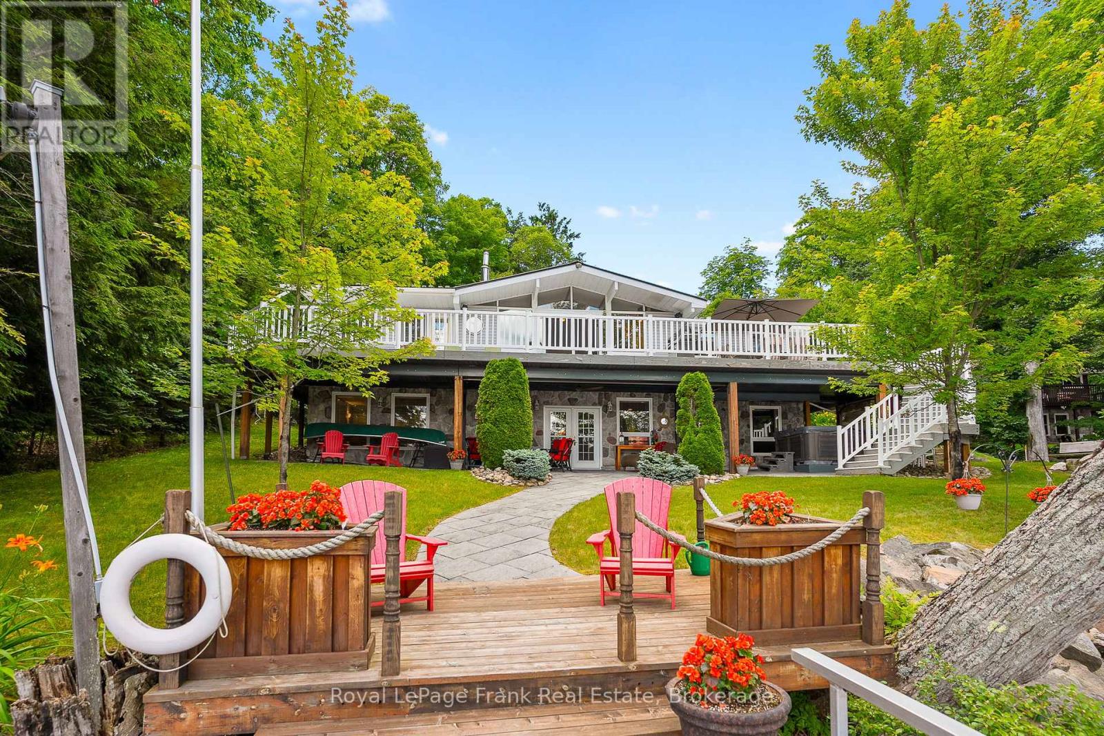Welcome to Greystone!! A spectacular, 4 Season walkout bungalow with a fully finished basement Perfect for large gatherings, situated on a gently sloping 119 waterfront lot. Over 3/4 of an Acre backing onto the Haliburton Forest and Wildlife with year round events. An incredible open concept kitchen with large dining area and Family Room. 3 Bathrooms, 4 bedrooms, 2 additional rooms for work at home offices. Granite counters, 2 Fridges, slide in Stove & Dishwasher with a spacious entertainers bar. Step outside from the family room to a picturesque full wrap around deck. Expansive dock for diving into the deep weedless water. Six person Artic Spa hot tub, Phantom Screened, retractable sunroom (2018) to enjoy nature's sounds or sit at your private fire pit. The 2 Storey 25 x 50 foot garage has room for all the toys, equipped with propane heat source and wood stove to gather after winter activities. The upper level provides ample storage for all of your cottage essentials along with a gym. Kennisis Lake boasts an active community with amenities like a marina with pickleball, food drink concession and live entertainment. Embrace the serenity of cottage life and create memories at this splendid cottage on Little Kennisis Lake. (id:61423)