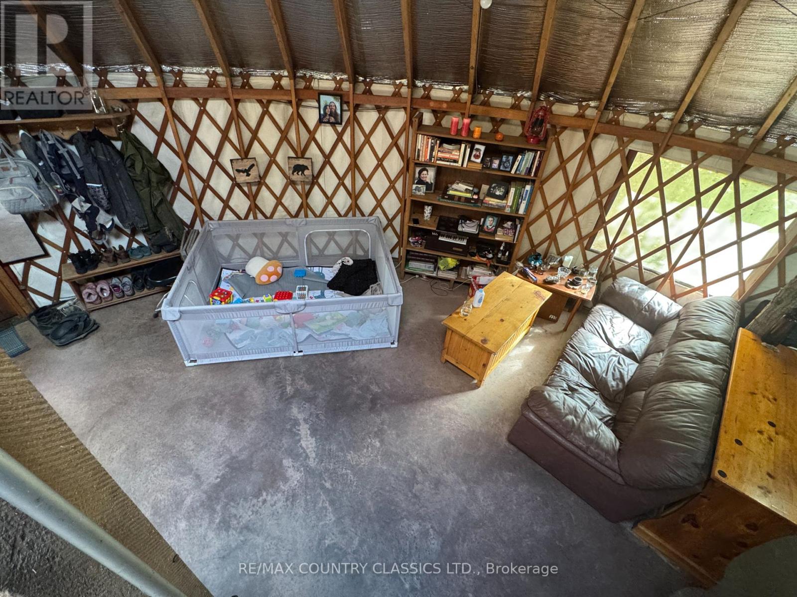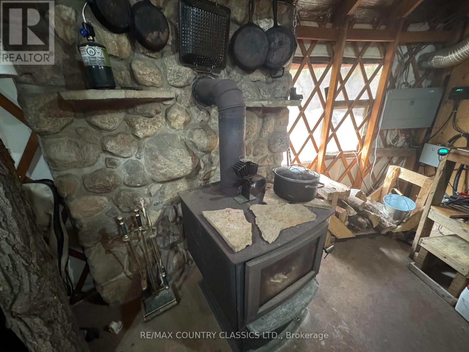 This off grid property is great for a getaway, hunting, glamping or Air B and B! Approximately 1,050 square foot yurt built in 2016 and situated on 54.72 +/- acres. The yurt is open concept with living room, kitchen, bedroom, 4 piece bath with laundry and utility room plus a bonus loft area. The property is heated with a wood stove. There is also in floor heating ready to be hooked up. Hydro is provided with the 11,000 watt diesel generator and 400 watt solar panels. There are trails through the property and features mainly maple, birch and beach trees. Located within five minutes of the town of Bancroft for all your amenities. Come and check out this excpetional property! (id:61423)