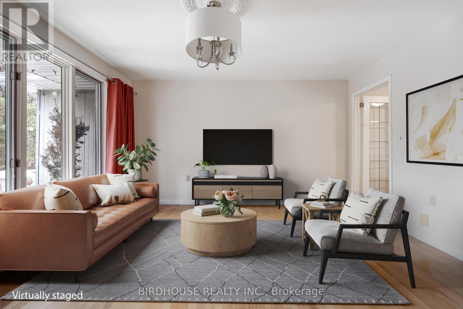 Riverside Retreat Between Buckhorn & Bobcaygeon. Spacious. Scenic. Serene. Welcome to your dream home on the peaceful Miskwaa Ziibi River, perfectly nestled between Buckhorn & Bobcaygeon. Offering the ideal blend of comfort, space, and natural beauty, this property is a rare find with direct access to Big Bald Lake- and a clean, deep swimming area right from your backyard. This raised bungalow is far larger than it appears, featuring 3 + 2 bedrooms and 4 bathrooms, across two generous levels. Step into a bright and welcoming front foyer that opens to both a formal living room and a cozy family room with fireplace, perfect for entertaining or quiet evenings at home. The bedroom wing includes three spacious bedrooms, a convenient two-piece bath, a four-piece main bath, and a primary suite complete with walk-in closet, elegant 4-piece ensuite, and a sunroom overlooking the water. The large, sun-filled kitchen boasts a charming bay window framing tranquil river views, while the formal dining room offers the perfect setting for family gatherings and dinner parties. Downstairs, the fully finished lower level provides even more room to relax and play, featuring a huge recreation room, two additional bedrooms, and a walk-out to the expansive lot leading to the water's edge- deal for summer evenings, bonfires, and watching the sunset. Additional highlights include: double car garage with interior access, convenient 2-piece bath and utility room at entry, and a full length deck stretching across the back of the home with panoramic river views. Whether you're looking for a year-round residence or a cottage getaway, this property delivers the best of country living- space, serenity, and sparkling water at your doorstep. (id:61423)