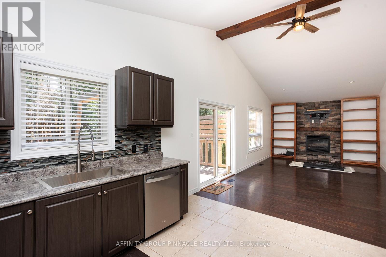 Welcome to 103 Cook St! Built in 2012, this all-brick, one owner 2+2 bungalow sits on a ravine lot with forest views and shows pride of ownership from top to bottom. The main floor features a large living area with vaulted ceilings, gas fireplace with built-in bookshelves & a walk out to the backyard deck, a large primary bedroom with great natural light and a 3 pc ensuite, an additional bedroom, 4 pc bath, main floor laundry room and a large kitchen with plenty of space for entertaining. The lower level features 2 good sized bedrooms, a kitchenette and living room combo with gas fireplace and stonework and built in bookshelves, a walkout to the backyard and plenty of storage space. Located at the end of a dead end street this home offers plenty of peace and quiet and with a separate entrance to the lower level, it also offers in-law suite potential. (id:61423)