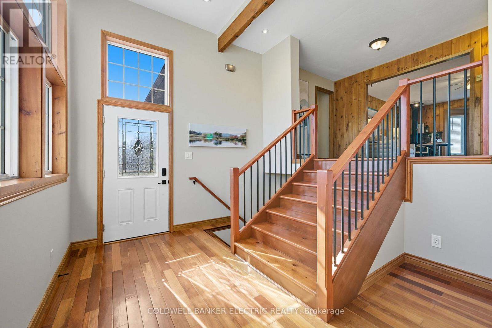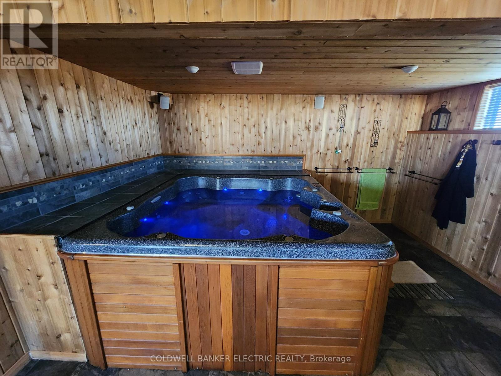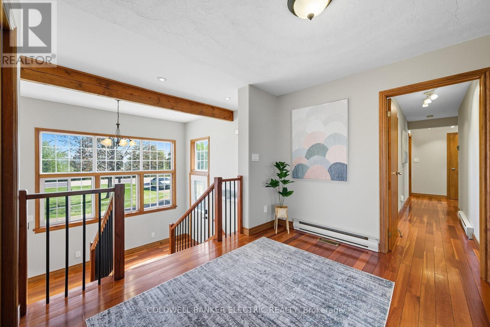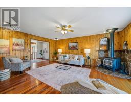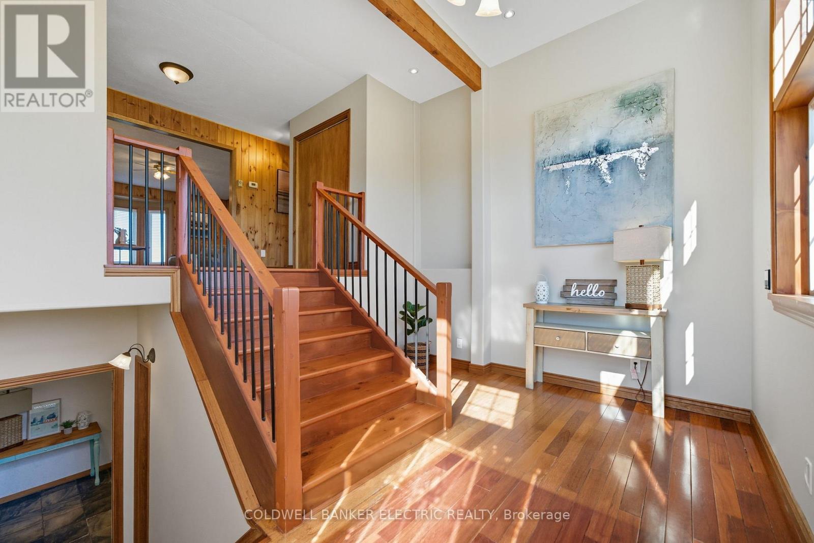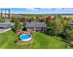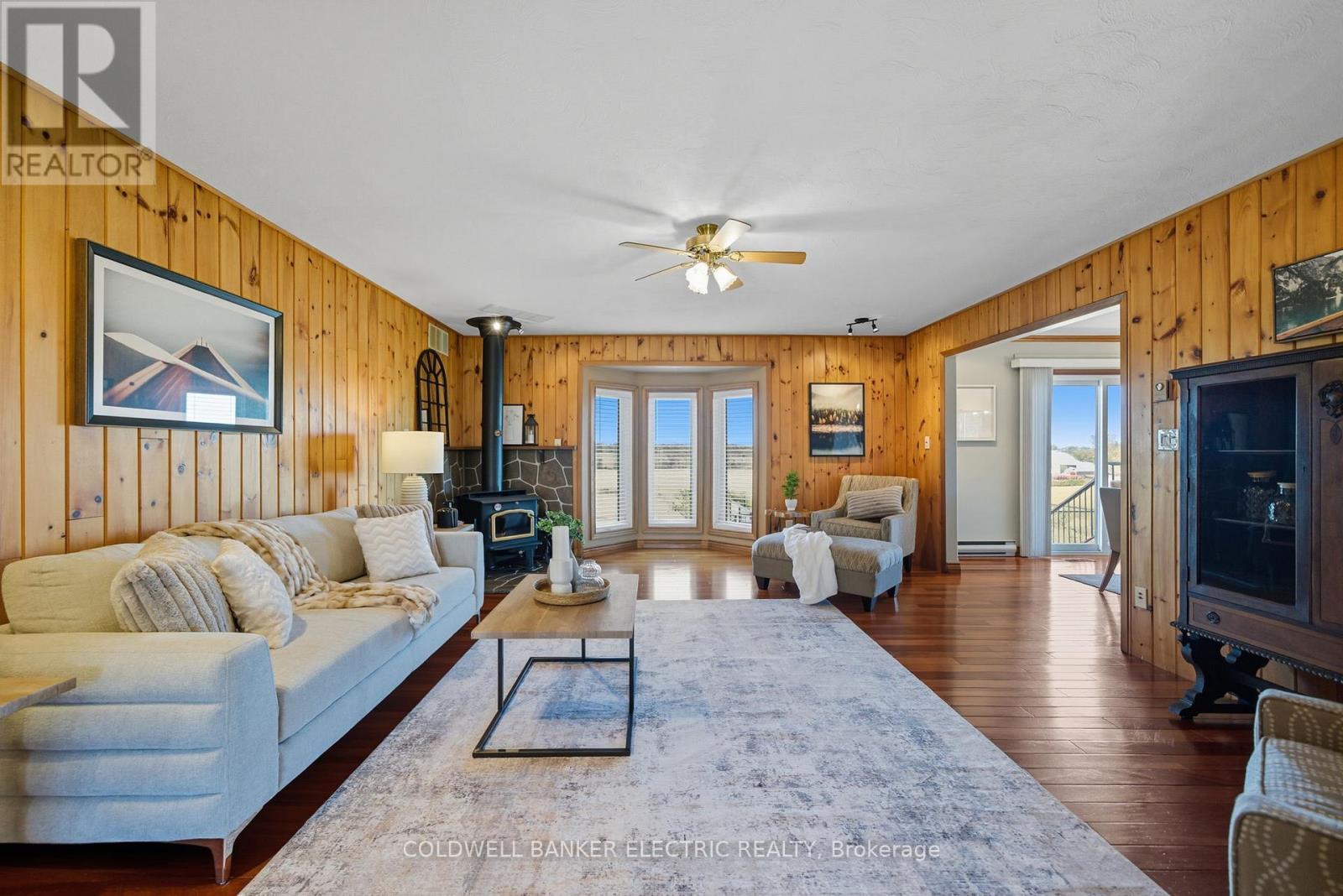 Enjoy cottage vibes without the cottage bills! This raised bungalow on Serpent Mounds Road offers a perfect balance of comfort, charm and practicality. With 3 + 2 bedrooms and 4 baths, you're getting dramatic rural panoramas and even glimpses of Rice Lake and just a minute (yes, I timed it) to the boat launch. Best part: no waterfront taxes, just pure lakeside joy. Step inside through a grand entry to the main floor, where gleaming Brazilian cherry wood floors shine. An oversized living room warmed by a wood stove features a heating redistribution system that sends cozy heat throughout the main floor, keeping you comfortable no matter where you are. The kitchen is both functional and generous: tons of cabinetry, a walk-in pantry, laundry room, plus direct access to the garage. The dining area leads out to a newer back deck (glass railings) overlooking a pool (liner replaced in 2025). Downstairs, the lower level is your custom-built chill zone: large family room with a stone gas fireplace, built-in hot tub for year-round relaxation, and two flexible rooms for bedrooms, office, hobby your choice. Outside, the fun continues: above-ground pool, fire pit, horseshoe pit, and wide open yard space for summer games or moonlit gatherings. The elevated lot gives you full 360-degree views, gorgeous sunsets, real wow moments. Location? Spot on. Close to Peterborough. Within walking reach of Keenes offerings: restaurant, pharmacy, LCBO / general store, library, school, medical centre, community centre with year-round events. Privacy, space and entertaining under one roof. A rare find near Rice Lake. (id:61423)