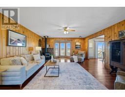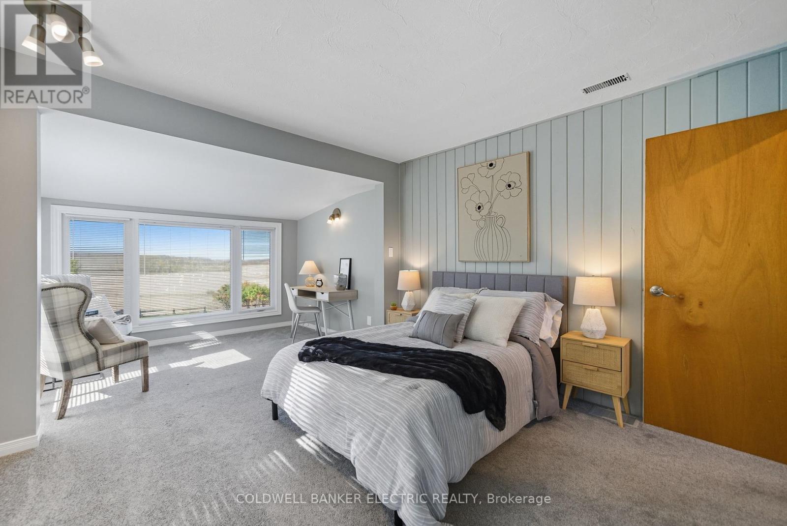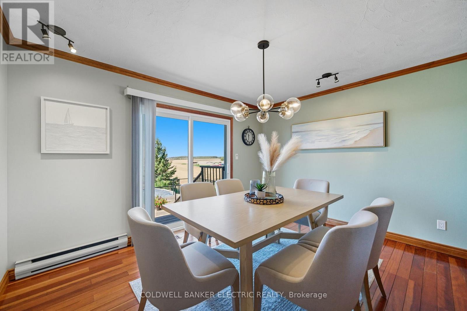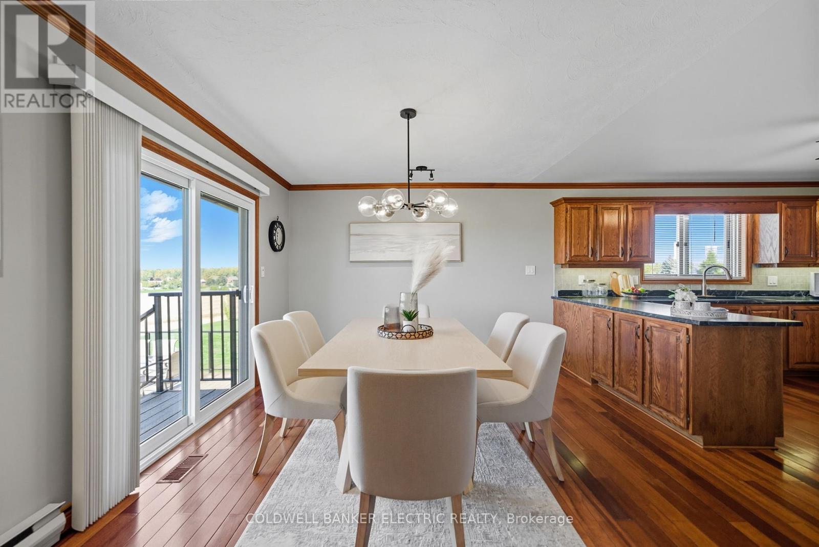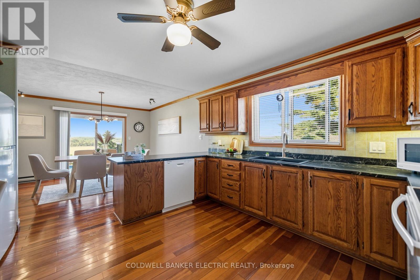 Enjoy cottage vibes without the cottage bills! This raised bungalow on Serpent Mounds Road offers a perfect balance of comfort, charm and practicality. With 3 + 2 bedrooms and 4 baths, you're getting dramatic rural panoramas and even glimpses of Rice Lake and just a minute (yes, I timed it) to the boat launch. Best part: no waterfront taxes, just pure lakeside joy. Step inside through a grand entry to the main floor, where gleaming Brazilian cherry wood floors shine. An oversized living room warmed by a wood stove features a heating redistribution system that sends cozy heat throughout the main floor, keeping you comfortable no matter where you are. The kitchen is both functional and generous: tons of cabinetry, a walk-in pantry, laundry room, plus direct access to the garage. The dining area leads out to a newer back deck (glass railings) overlooking a pool (liner replaced in 2025). Downstairs, the lower level is your custom-built chill zone: large family room with a stone gas fireplace, built-in hot tub for year-round relaxation, and two flexible rooms for bedrooms, office, hobby your choice. Outside, the fun continues: above-ground pool, fire pit, horseshoe pit, and wide open yard space for summer games or moonlit gatherings. The elevated lot gives you full 360-degree views, gorgeous sunsets, real wow moments. Location? Spot on. Close to Peterborough. Within walking reach of Keenes offerings: restaurant, pharmacy, LCBO / general store, library, school, medical centre, community centre with year-round events. Privacy, space and entertaining under one roof. A rare find near Rice Lake. (id:61423)