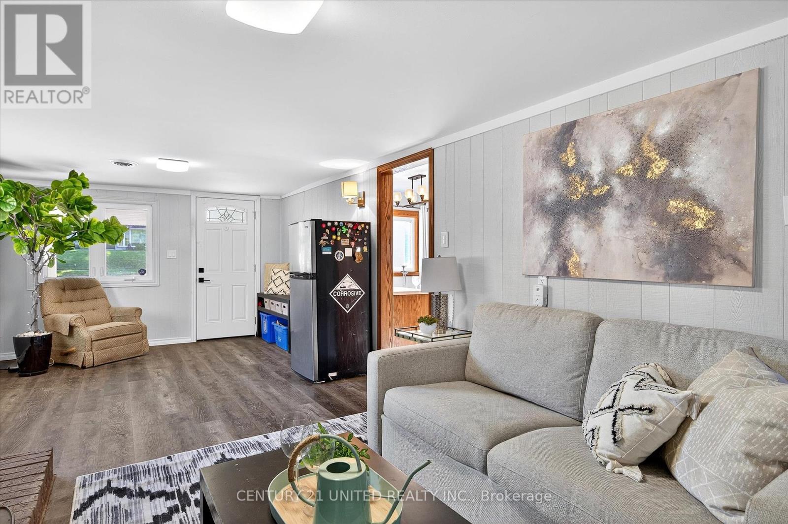 Looking for condo style living without condo fees? This 3 bed, 1 bath slab on grade bungalow offers a great low maintenance opportunity at an amazing price point. The main living room features large bright windows with a gas fireplace. Each bedroom is nicely proportioned with plenty of room for your family. Overlook your backyard deck from the kitchen which leads to the rear living area, a perfect place for a man-cave or tv-room. With a fully fenced backyard and plenty of parking, the lot has lots to offer. Updates include flooring and Bathroom 2019, fridge and dishwasher 2023, heat pump 2024, bathroom tile and lighting fixtures 2025. Located in a highly desired neighbourhood close to great schools with easy access to many amenities. Pre-inspected for your convenience. Don't miss your chance to check out this gem in the North end! (id:61423)