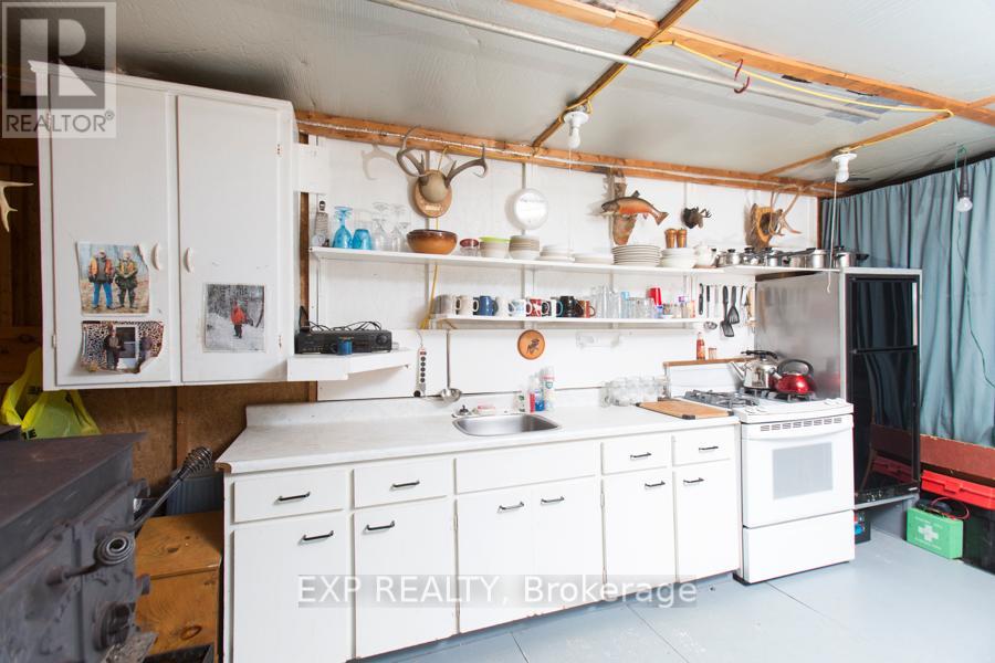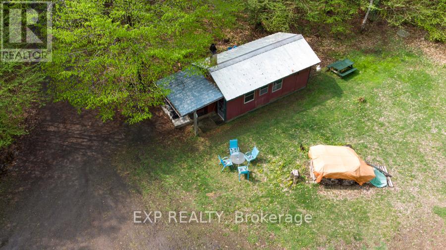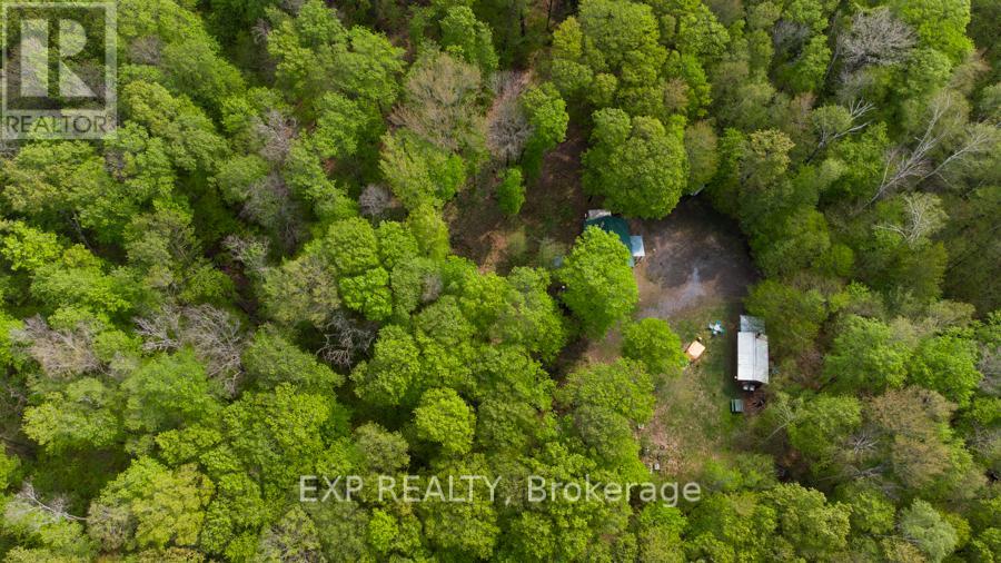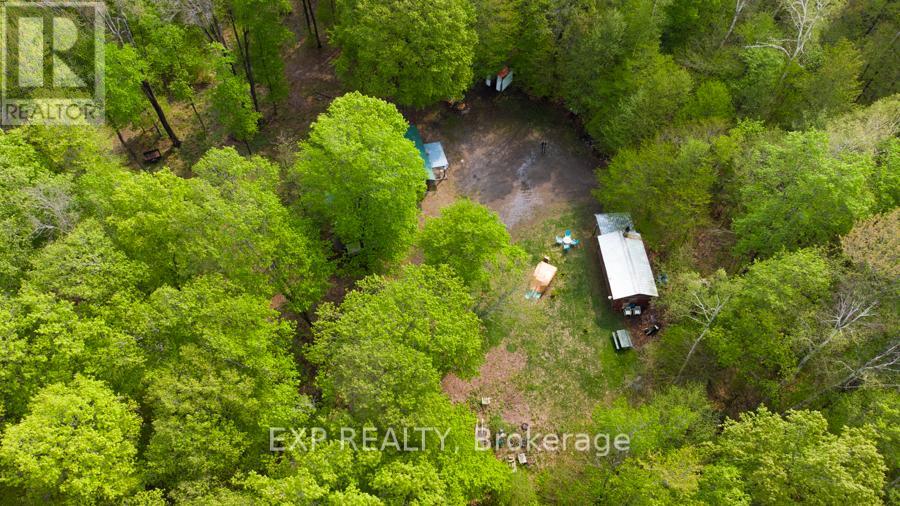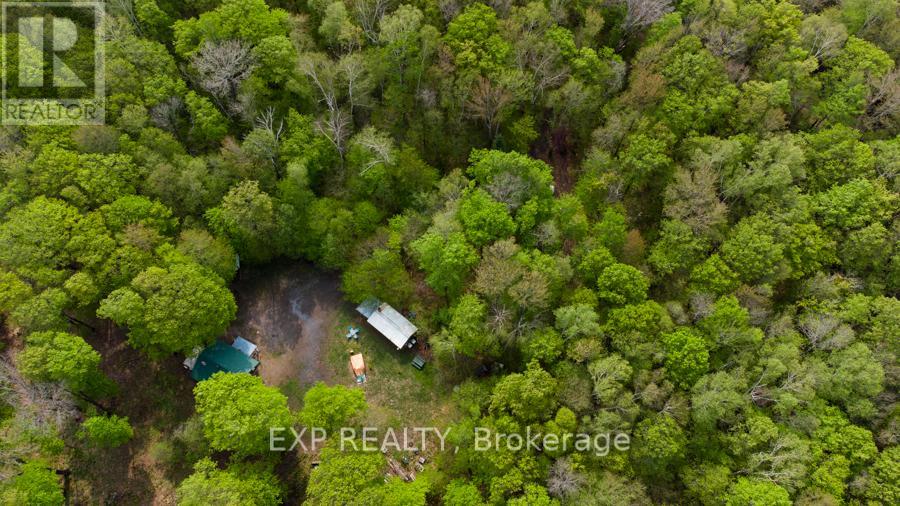 Set on approximately 50 acres of beautifully treed land, this unique rural property is comprised of two separate parcels being sold together, offering exceptional privacy and recreational opportunity in the heart of Harcourt. The property features multiple rustic cabins and outbuildings used for seasonal and recreational purposes, with established trails weaving throughout the land. Select outbuildings are fitted with wood stoves and include basic amenities such as a stove and fridge, enhancing the rustic, off-grid character of the setting. Allen Creek meanders through the property, creating a scenic natural backdrop with several picturesque areas to enjoy. Located just minutes from Elephant Lake and nearby public boat launches, the area is well known for outdoor recreation including boating, fishing, ATVing, snowmobiling, hiking, and hunting, subject to applicable regulations. Access is via Bill McLaren Trail, a quiet rural road surrounded by forest and crown land.This property is ideal for buyers seeking a private retreat, recreational land, or a long-term rural holding. Buyer to conduct their own due diligence regarding zoning, permitted uses, servicing, hunting regulations, and future development potential. (id:61423)
