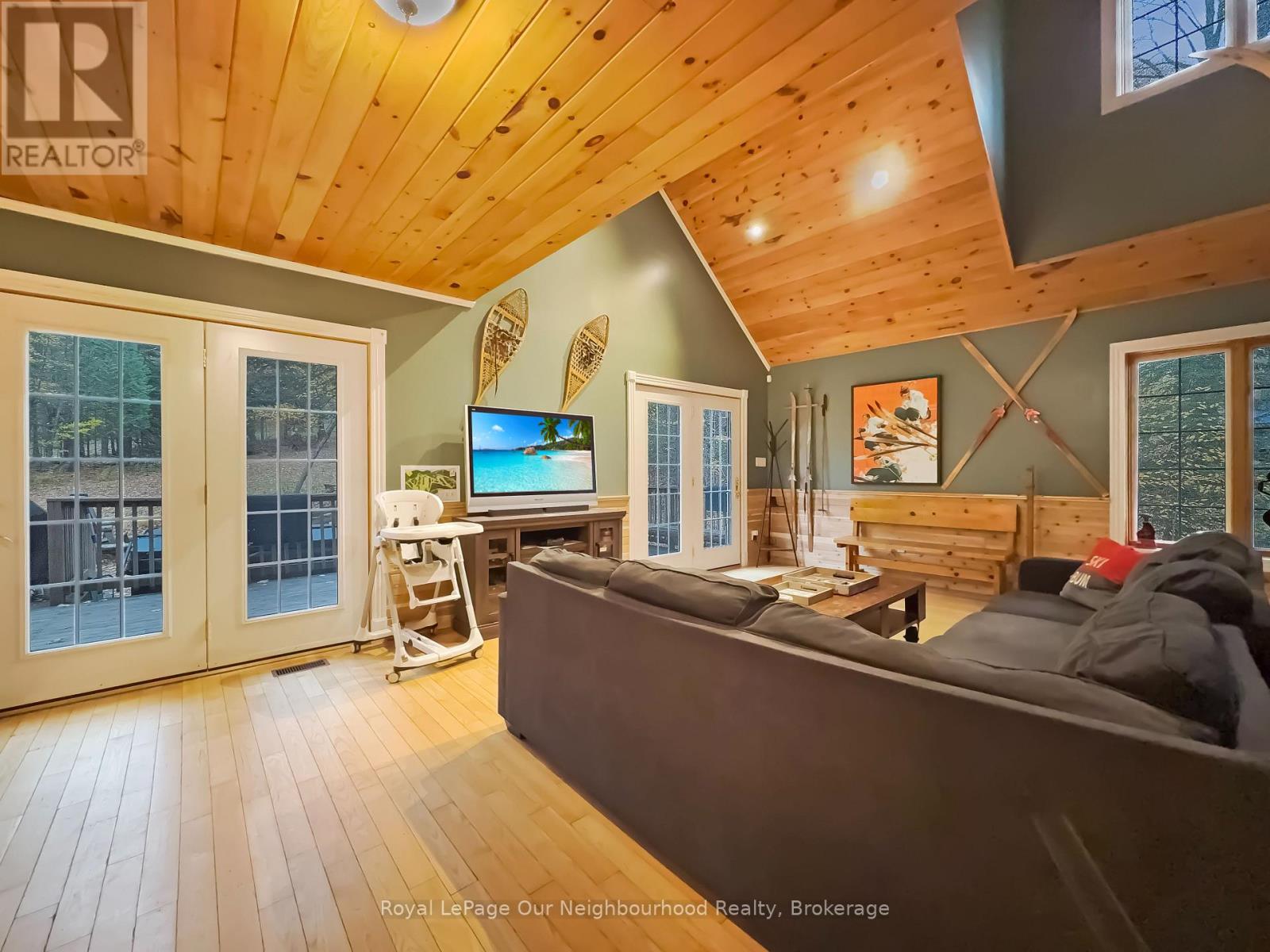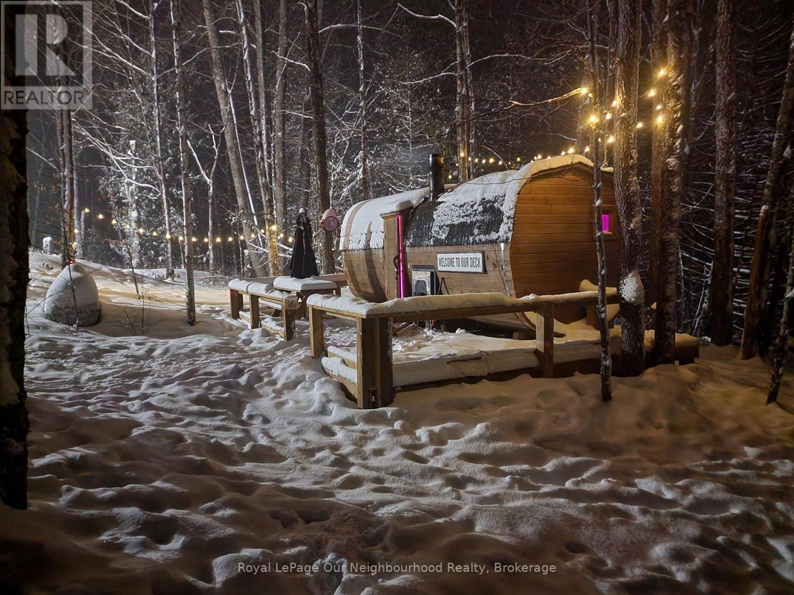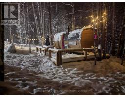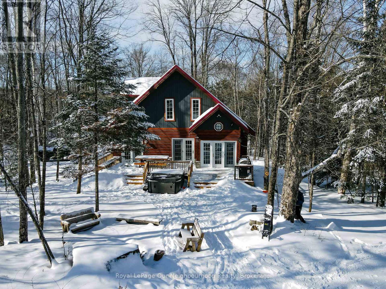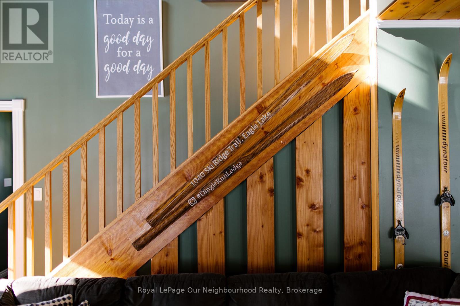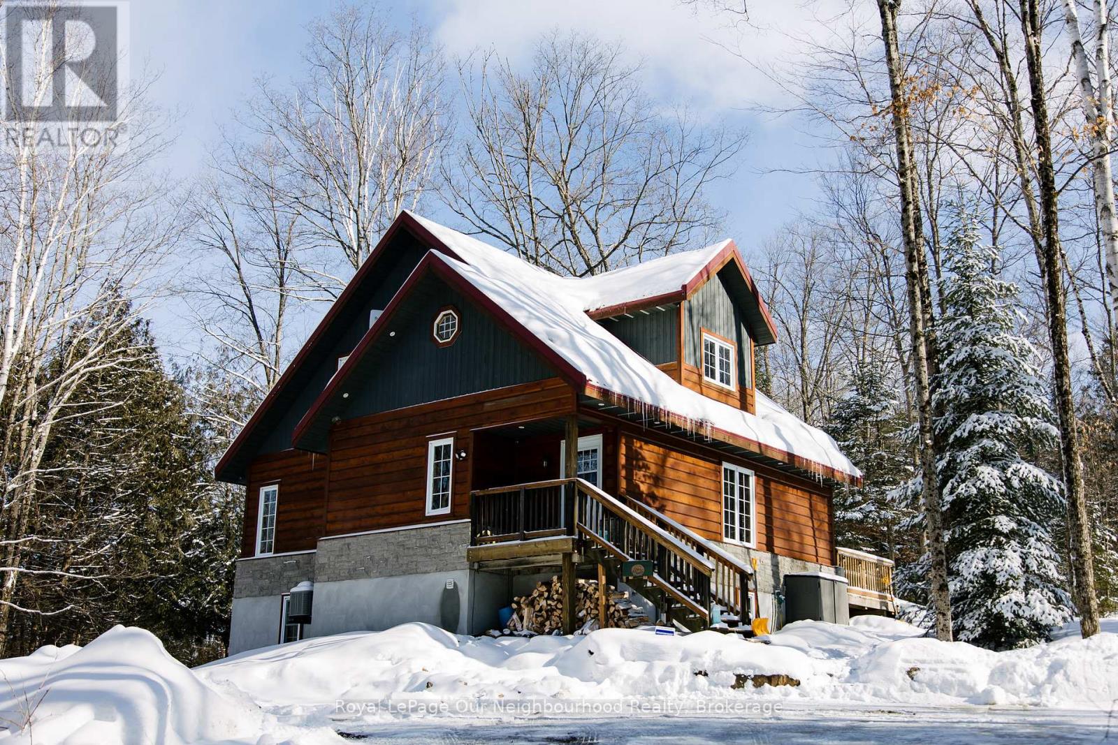 Welcome to 1040 Ski Ridge Trail! This stunning Ski-In/Ski-Out chalet is located directly on Sir Sam's Ski & Bike. Surrounded by pristine forest, offering peace, tranquillity and privacy. Enjoy the ease and convenience of ski-in/ski-out, snow shoeing, hiking or biking as you walk out from the beautiful deck which over looks an 8-person hot tub, 20' sauna and picturesque fire pit as you watch the skiers go by or join in on the fun yourself! The main floor of this tranquil 3+1 bedroom chalet-style home has an open concept main floor with loads of natural light and stunning views of the ski hill from the eat-in kitchen and spacious living room. The large primary bedroom has a small nursery/home office area built in and located directly across from the main floor 4-piece bathroom. The upper level consists of two additional bedrooms and a second 4-piece bathroom. The lower level offers additional living space including a cozy recreation room, spacious games room as well as a den! This property is complete with multi-camera security system, central vac and an EV fast charging station. In addition to the endless winter activities, when the snow melts, take advantage of the bike-in/bike-out access to the incredible bike trails, take a short walk to Eagle Lake public beach and boat launch for fishing, swimming and boating. Endless adventures await near by; hiking, ATVing, snowmobiling, Haliburton Forest, dog sledding, Wolf Centre and much more! (id:61423)