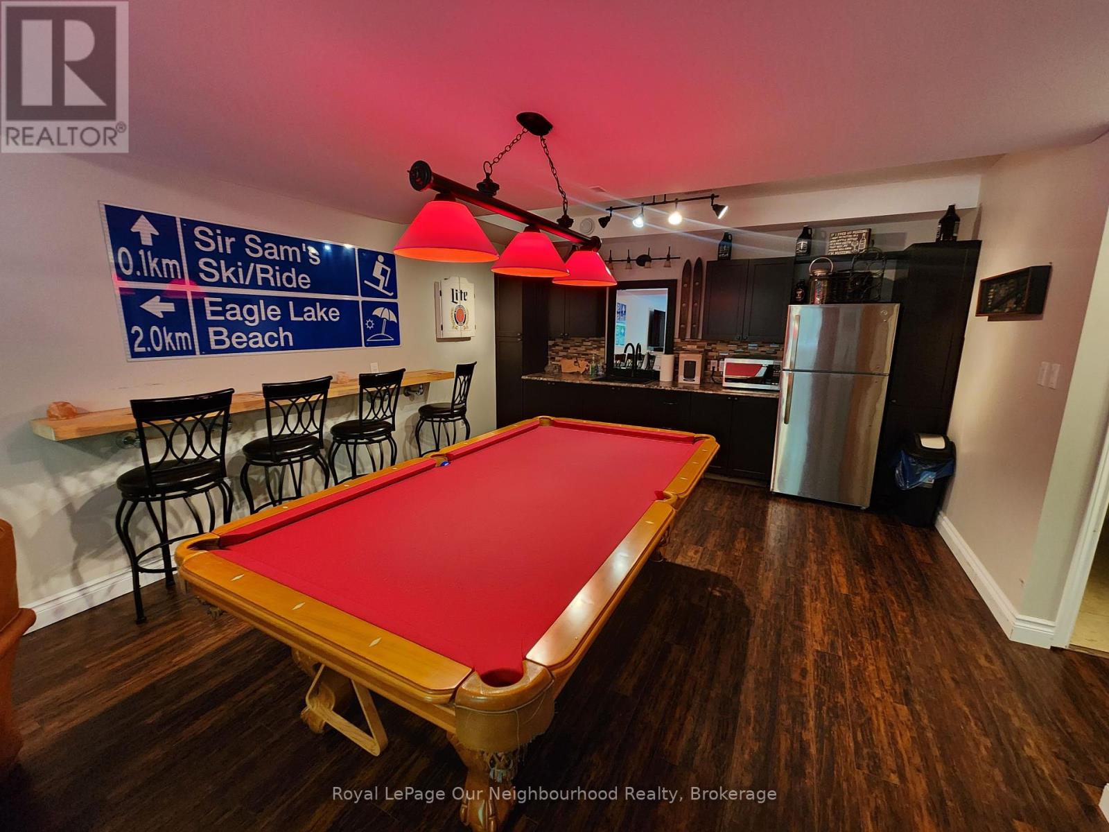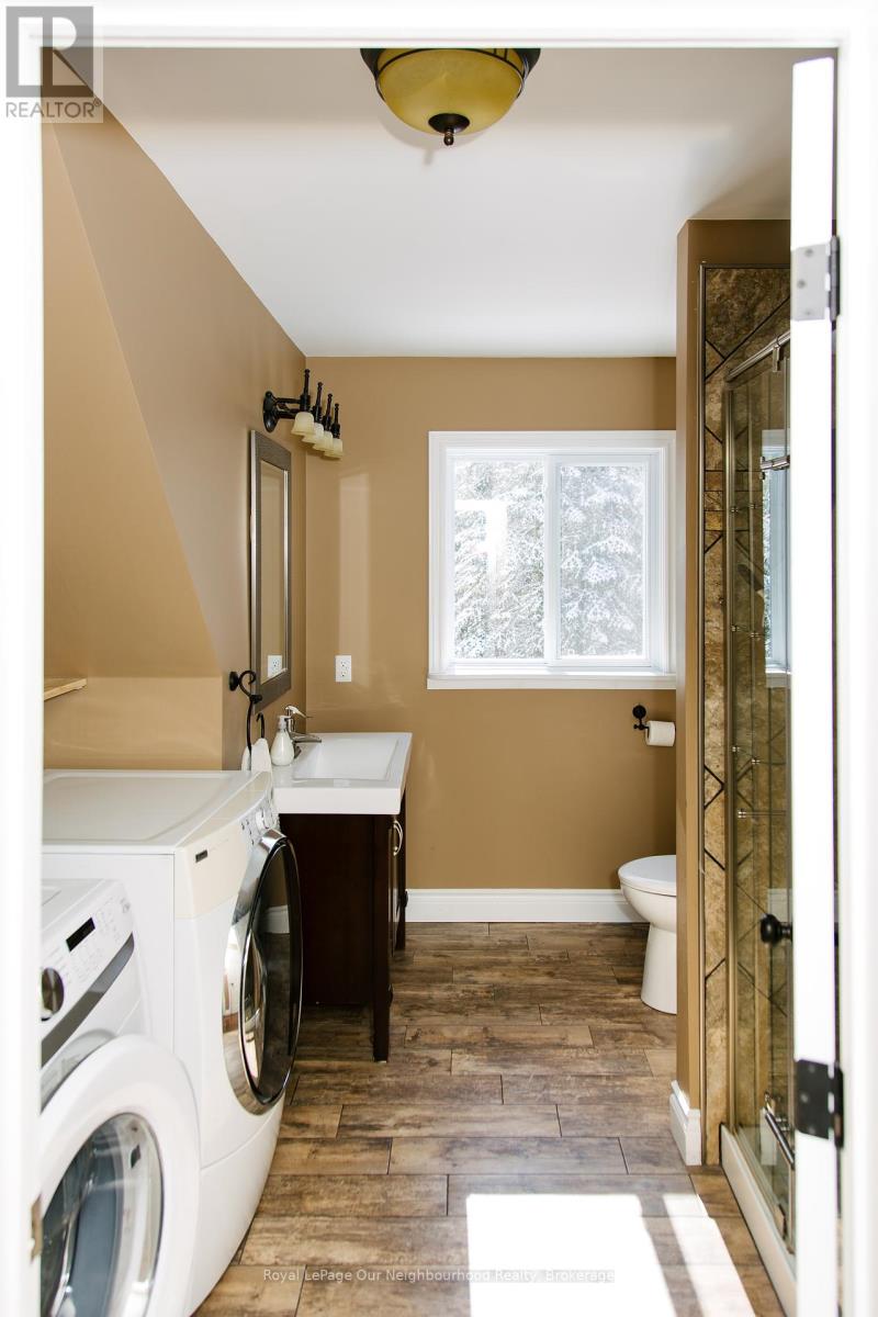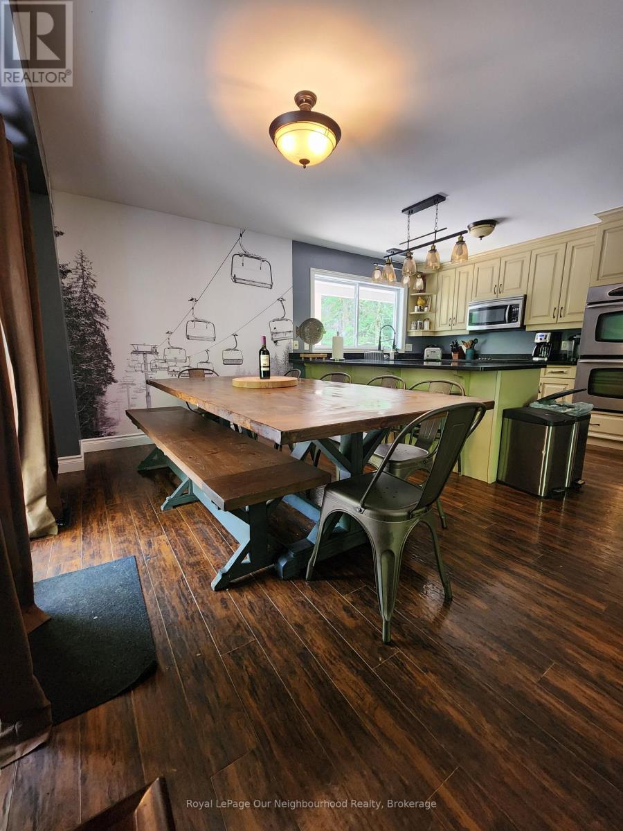 Welcome to 1042 Ski Ridge Trail.This 4 bedroom masterpiece offers convenient ski-in/ski-out access to Sir Sams Ski & Ride. Privately situated on 1.4 acres of pristine forest offering peace and tranquillity. The main floor consists of a stunning open concept kitchen/dining room combination and cozy living room along with 1 bedroom and 4-piece bath. 2nd floor consists of 3 additional bedrooms including primary bedroom and 3-piece bath. Fully finished basement offers additional living space, including recreation room, wet bar, games room and 3-piece bath. Basement walks out to beautiful patio and hot tub. Enjoy roaring fires out front and sip your favourite drink on the stunning covered custom stone wrap around porch. Enjoy relaxing evenings in the charming and spacious authentic wood burning outdoor sauna. Home is complete with multi-camera security system and EV fast charging station. Private, secondary driveway located on the back side of the property leading to endless possibilities. During the winter months, enjoy ski-in/ski-out access to the ski hill, double the fun with bike-in/bike-out access to the incredible bike trails during the rest of the year. There is never a dull moment here with Hiking, ATVing, snowmobiling and much more at your finger tips,, the possibilities are endless! 10 minute walk to a beautiful beach on Eagle Lake. (id:61423)