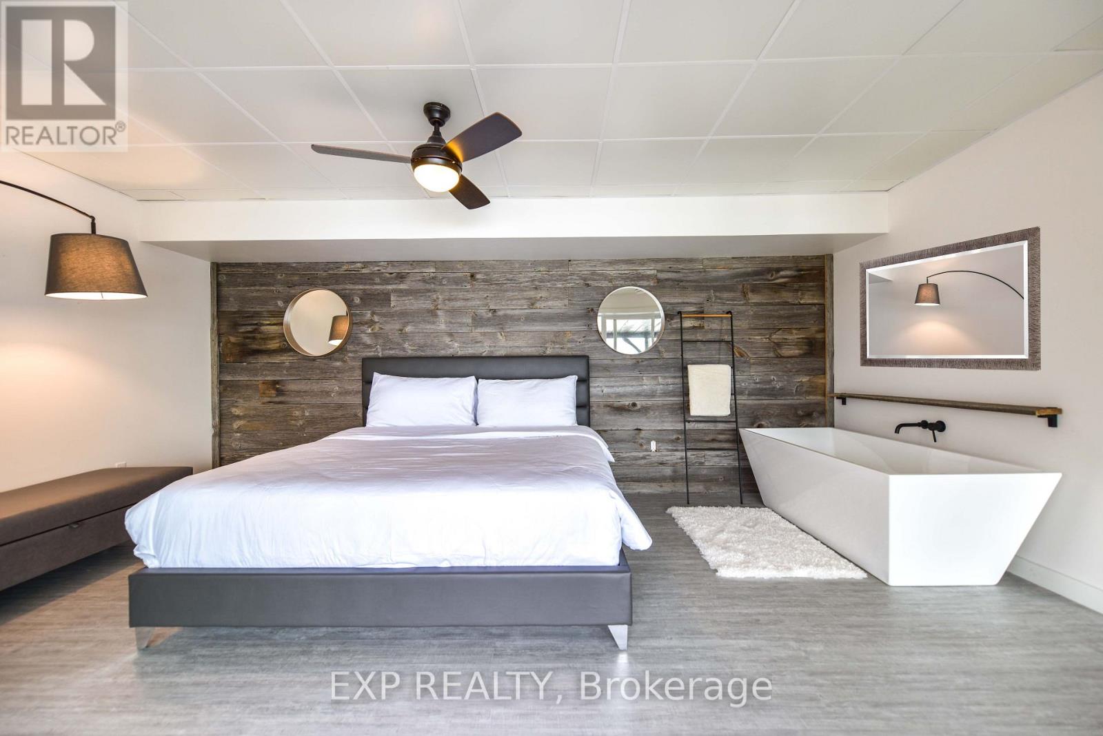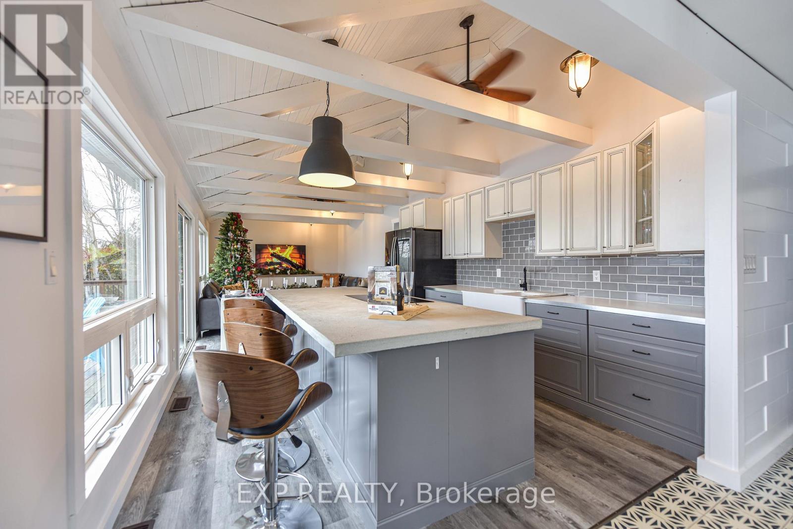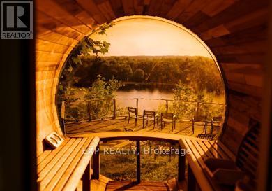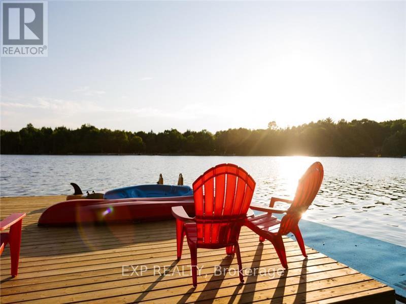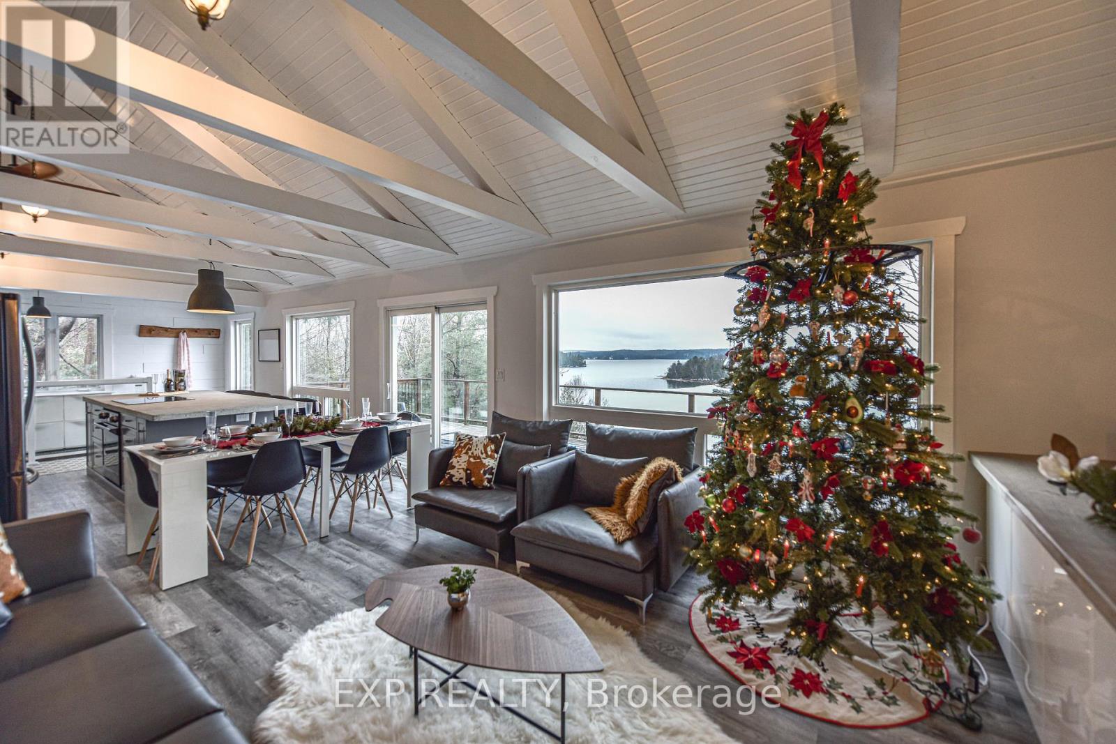 Perched above the pristine shores of Boshkung Lake, 1047 Whyman Road is a storybook four-season retreat where luxury and nature meet. This architecturally striking 2+2 bedroom, 2-bathroom home is set on a gently sloped lot with breathtaking panoramic views, western sunset exposure, and sandy walk-in waterfront perfect for families, investors, or those seeking refined relaxation.The elevated design blends rustic charm with modern minimalism. Wrapped in black exterior accents and tiered decking, the home invites you into open-concept interiors flooded with natural light. Wide-plank floors, vaulted ceilings, and a spa-like primary suite with soaker tub elevate every space. A panoramic barrel sauna and hot tub on the patio overlook the lake, creating a wellness sanctuary right at home.Upgrades include a new septic system, electrical panel, Starlink Wi-Fi, and year-round municipal road access. A new dock extends into deeper water, ideal for boating, swimming, and fishing across the renowned three-lake Boshkung chain.Whether hosting family at Christmas, retreating for a quiet weekend, or generating passive income from a proven rental history, this property offers both lifestyle and legacy. Just 20 minutes from Haliburton, Minden, and Sir Sams Ski Hill, this rare offering delivers on every front a luxury lakeside escape designed to impress. (id:61423)