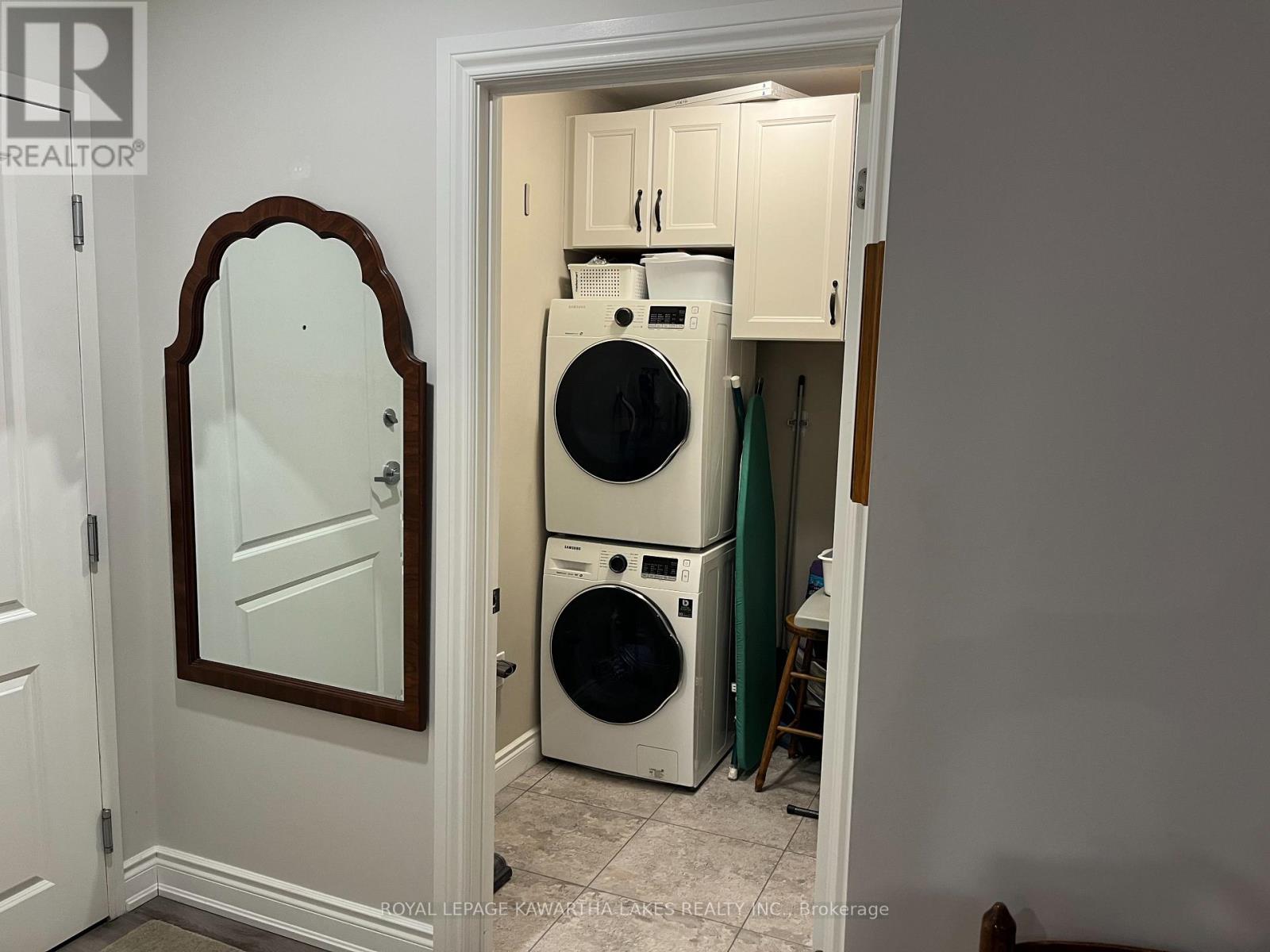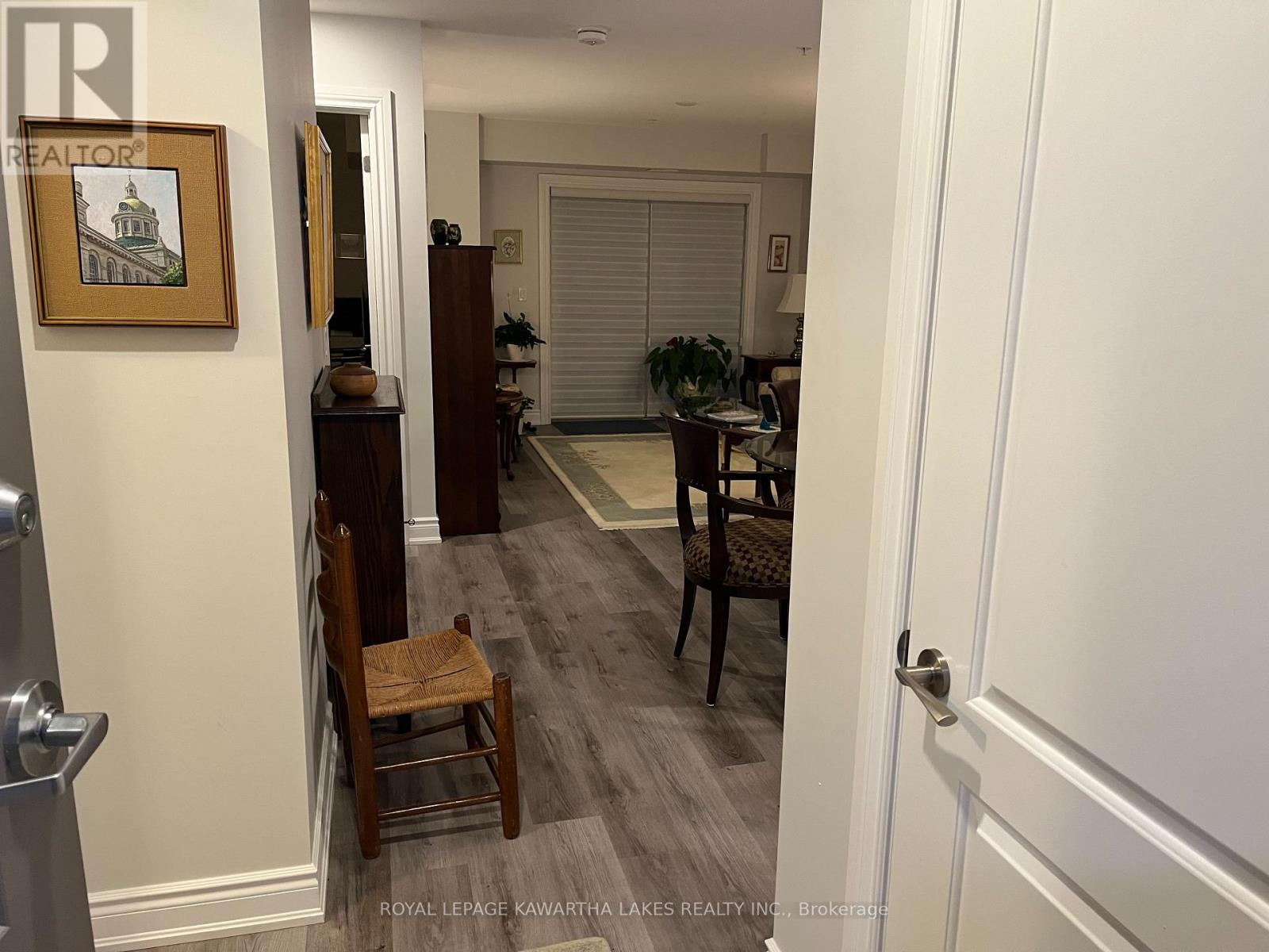 $659.48 MonthlyThis is condo living in downtown Lindsay! This bright, open concept, ground floor unit offers 2 bedrooms, 2 bathrooms, with in-suite laundry. The primary bedroom has huge, double walk through closets that lead to the private bathroom with a jetted soaker tub. The spacious living room has sliding doors to your private patio with beautiful planters and electric blinds offering privacy when wanted. This secure, well maintained building has a guest suite, roof top patios (bbq areas included), exercise room and a party room with lots of social activities. Within walking distance to shops, restaurants, and entertainment or just a short drive from your heated underground parking spot to all that Lindsay has to offer. This unit is definitely one of a kind...so don't delay, come take a look...you won't be disappointed! (id:61423)