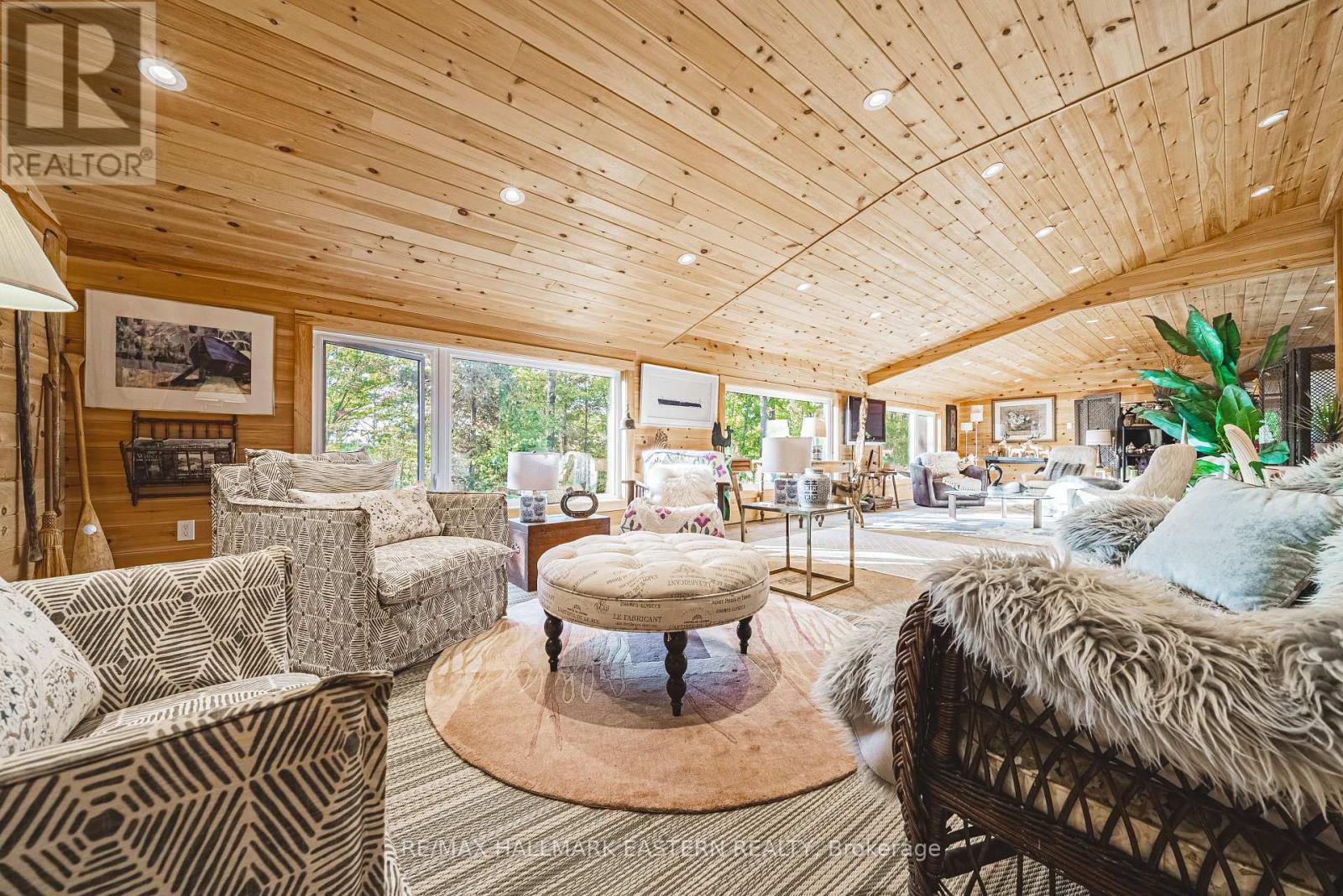 Living in this house is like living on a boat! It is so close to the water you can hear the waves gently lapping at night. Complete privacy in your 1.3 Acres 270 Ft waterfront oasis on Clear Lake awaits. So much thoughtful quality here has to be seen to be appreciated. Mature trees, dappled light and a feeling of magic envelope this mid century boathouse conversation. Tucked into a beautiful cove with natural sand beach sits a totally unique blend of cottage feel with the quality and convenience of a luxurious 4 season bungalow. Drive right to your door and only I step into this open light and bright space. So much attention to detail has been taken for ease of living. White oak wide plank flooring, soaring ceilings and massive amounts of glass bring the lake in from every room. Custom cabinetry adorn this chef's kitchen. Neutral palettes throughout and expansive rooms welcome any decor. Full walkout and covered decks on the lower level for shady summer days, a hot tub set into the landscape, a gazebo for relaxing after a swim in the crystal clear dive off the dock water. Pull your paddle board or kayak up on the natural sand beach, hop in your boat off one of two lifts and explore the beauty of this gorgeous lake on the Trent System right at your door. Keep all your toys safe and clean in the ICF garage and grand loft for play above. Bunkies for the kids, parking for huge parties, huge newer septic, newer drilled well, all systems on massive generator if the power goes out. Boat to Wildfire for Golf, dine at one of three waterfront restaurants and play on the iconic Clear and Stoney Lakes. Meet new lake friends at Juniper Island for tennis, pickleball, sailing, explore granite islands, coves and natural beauty to explore at a world class level. Live here 4 seasons, enjoy it on weekends or use it as a gorgeous retreat home. minutes from the charming village of Lakefield.1.5 hrs from the GTA, 22 mins to Peterborough. Don't miss this opportunity to live your dreams (id:61423)