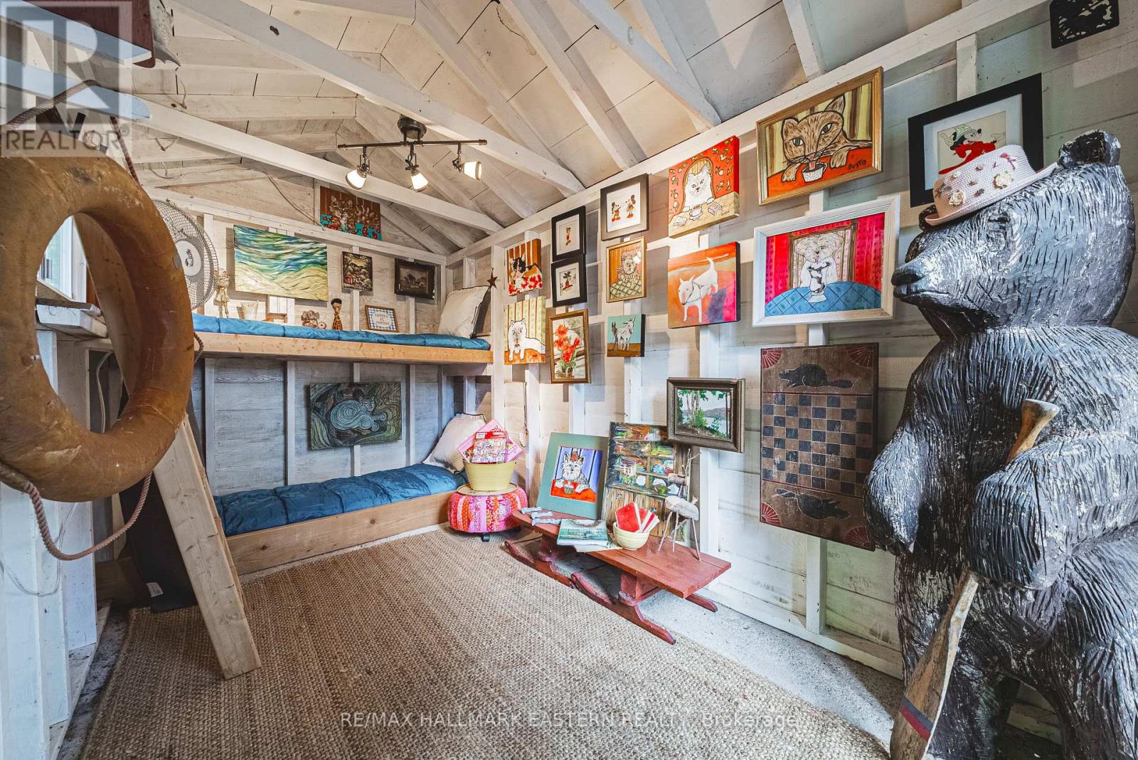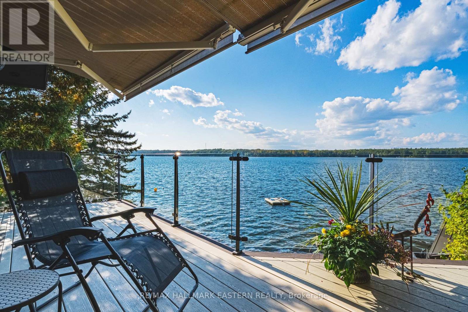 Living in this house is like living on a boat! It is so close to the water you can hear the waves gently lapping at night. Complete privacy in your 1.3 Acres 270 Ft waterfront oasis on Clear Lake awaits. So much thoughtful quality here has to be seen to be appreciated. Mature trees, dappled light and a feeling of magic envelope this mid century boathouse conversation. Tucked into a beautiful cove with natural sand beach sits a totally unique blend of cottage feel with the quality and convenience of a luxurious 4 season bungalow. Drive right to your door and only I step into this open light and bright space. So much attention to detail has been taken for ease of living. White oak wide plank flooring, soaring ceilings and massive amounts of glass bring the lake in from every room. Custom cabinetry adorn this chef's kitchen. Neutral palettes throughout and expansive rooms welcome any decor. Full walkout and covered decks on the lower level for shady summer days, a hot tub set into the landscape, a gazebo for relaxing after a swim in the crystal clear dive off the dock water. Pull your paddle board or kayak up on the natural sand beach, hop in your boat off one of two lifts and explore the beauty of this gorgeous lake on the Trent System right at your door. Keep all your toys safe and clean in the ICF garage and grand loft for play above. Bunkies for the kids, parking for huge parties, huge newer septic, newer drilled well, all systems on massive generator if the power goes out. Boat to Wildfire for Golf, dine at one of three waterfront restaurants and play on the iconic Clear and Stoney Lakes. Meet new lake friends at Juniper Island for tennis, pickleball, sailing, explore granite islands, coves and natural beauty to explore at a world class level. Live here 4 seasons, enjoy it on weekends or use it as a gorgeous retreat home. minutes from the charming village of Lakefield.1.5 hrs from the GTA, 22 mins to Peterborough. Don't miss this opportunity to live your dreams (id:61423)