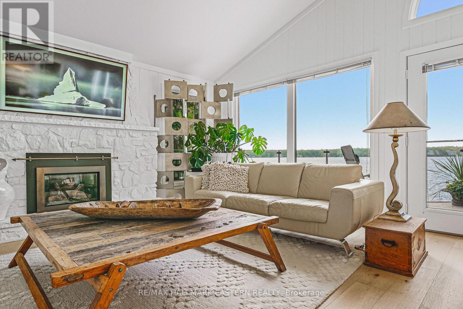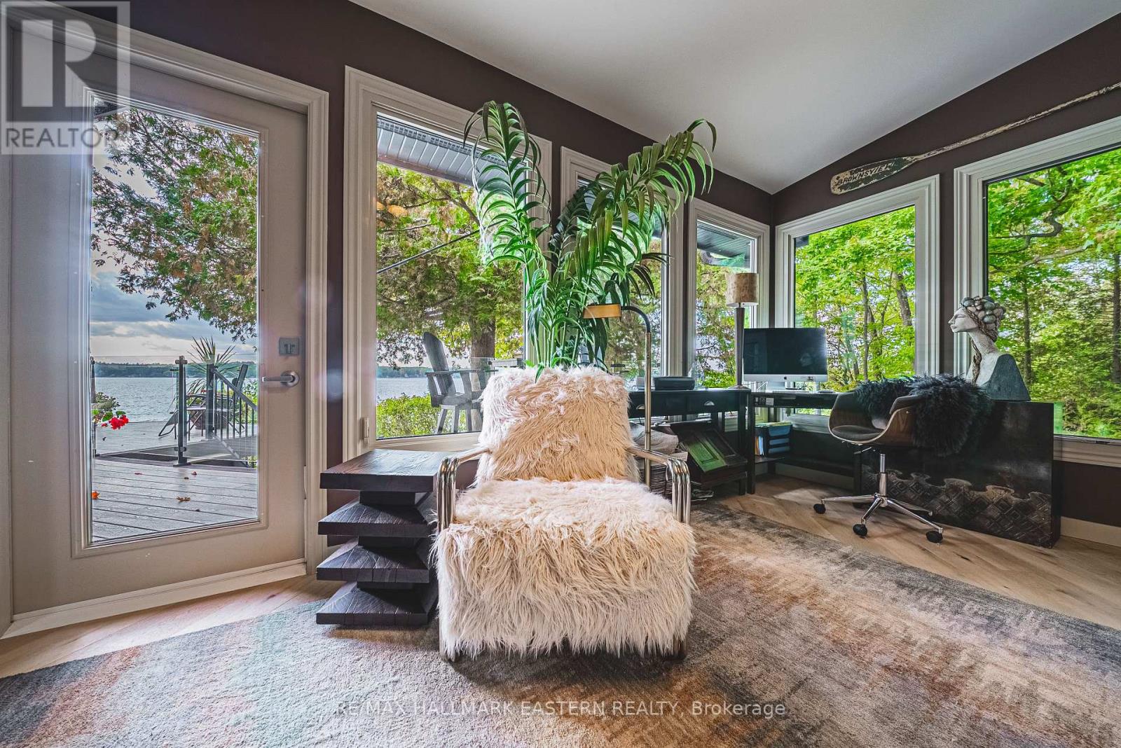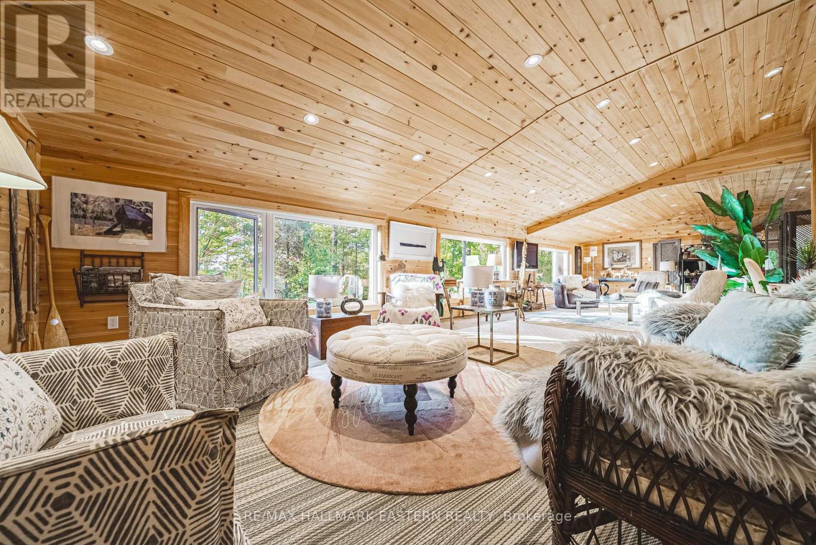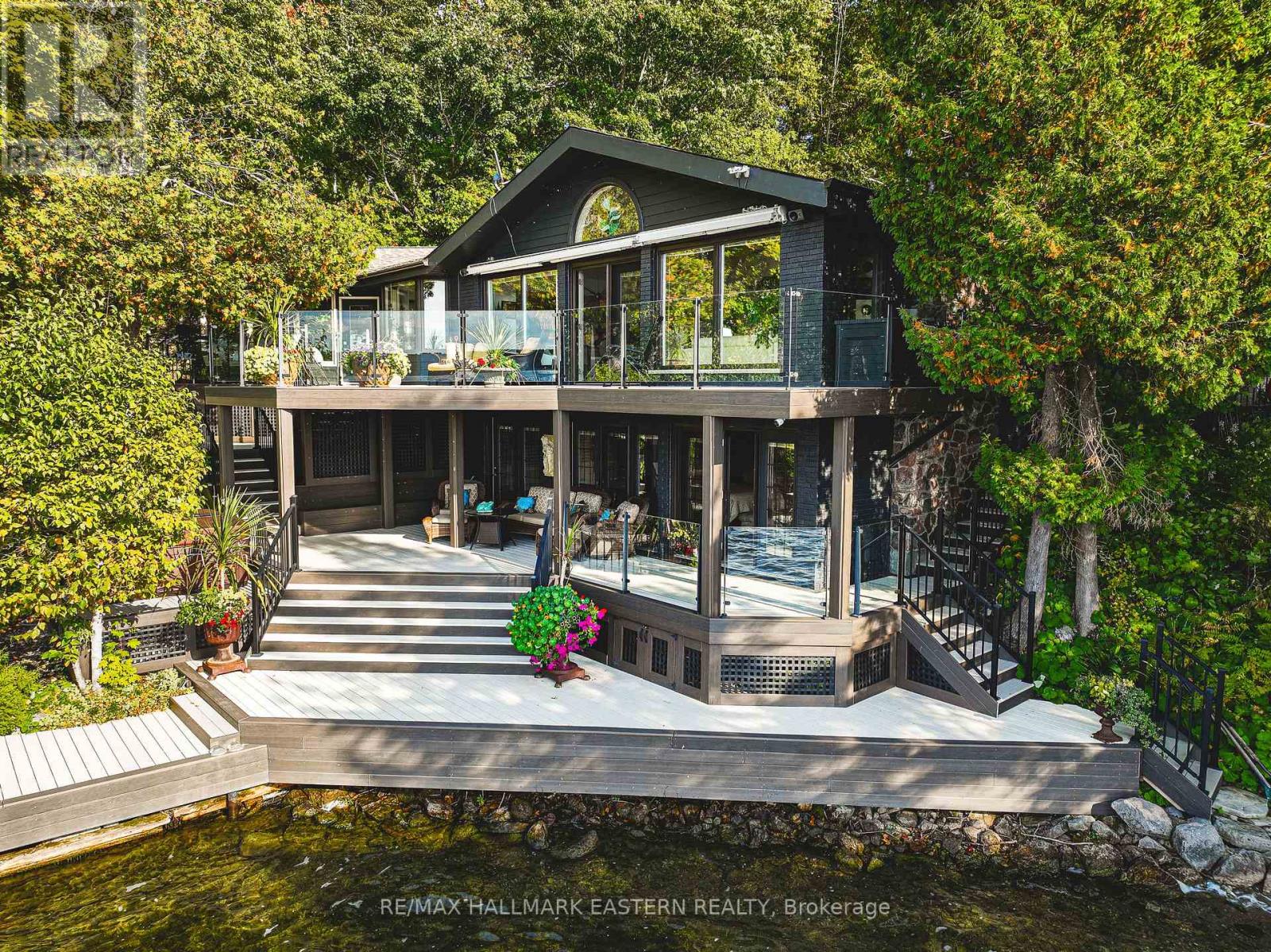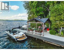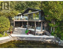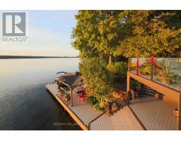 Living in this house is like living on a boat! It is so close to the water you can hear the waves gently lapping at night. Complete privacy in your 1.3 Acres 270 Ft waterfront oasis on Clear Lake awaits. So much thoughtful quality here has to be seen to be appreciated. Mature trees, dappled light and a feeling of magic envelope this mid century boathouse conversation. Tucked into a beautiful cove with natural sand beach sits a totally unique blend of cottage feel with the quality and convenience of a luxurious 4 season bungalow. Drive right to your door and only I step into this open light and bright space. So much attention to detail has been taken for ease of living. White oak wide plank flooring, soaring ceilings and massive amounts of glass bring the lake in from every room. Custom cabinetry adorn this chef's kitchen. Neutral palettes throughout and expansive rooms welcome any decor. Full walkout and covered decks on the lower level for shady summer days, a hot tub set into the landscape, a gazebo for relaxing after a swim in the deep dive off the dock water. Pull your paddle board or kayak up on the natural sand beach, hop in your boat off one of two lifts and explore the beauty of this gorgeous lake on the Trent System right at your door. Keep all your toys safe and clean in the ICF garage and grand loft for play above. Bunkies for the kids, parking for huge parties, huge newer septic, newer drilled well, all systems on massive generator if the power goes out. Boat to Wildfire for Golf, dine at one of three waterfront restaurants and play on the iconic Clear and Stoney Lakes. Meet new lake friends at Juniper Island for tennis, pickleball, sailing, explore granite islands, coves and natural beauty to explore at a world class level. Live here 4 seasons, enjoy it on weekends or use it as a gorgeous retreat home. minutes from the charming village of Lakefield.1.5 hrs from the GTA, 22 mins to Peterborough. Don't miss this opportunity to live your dreams (id:61423)
