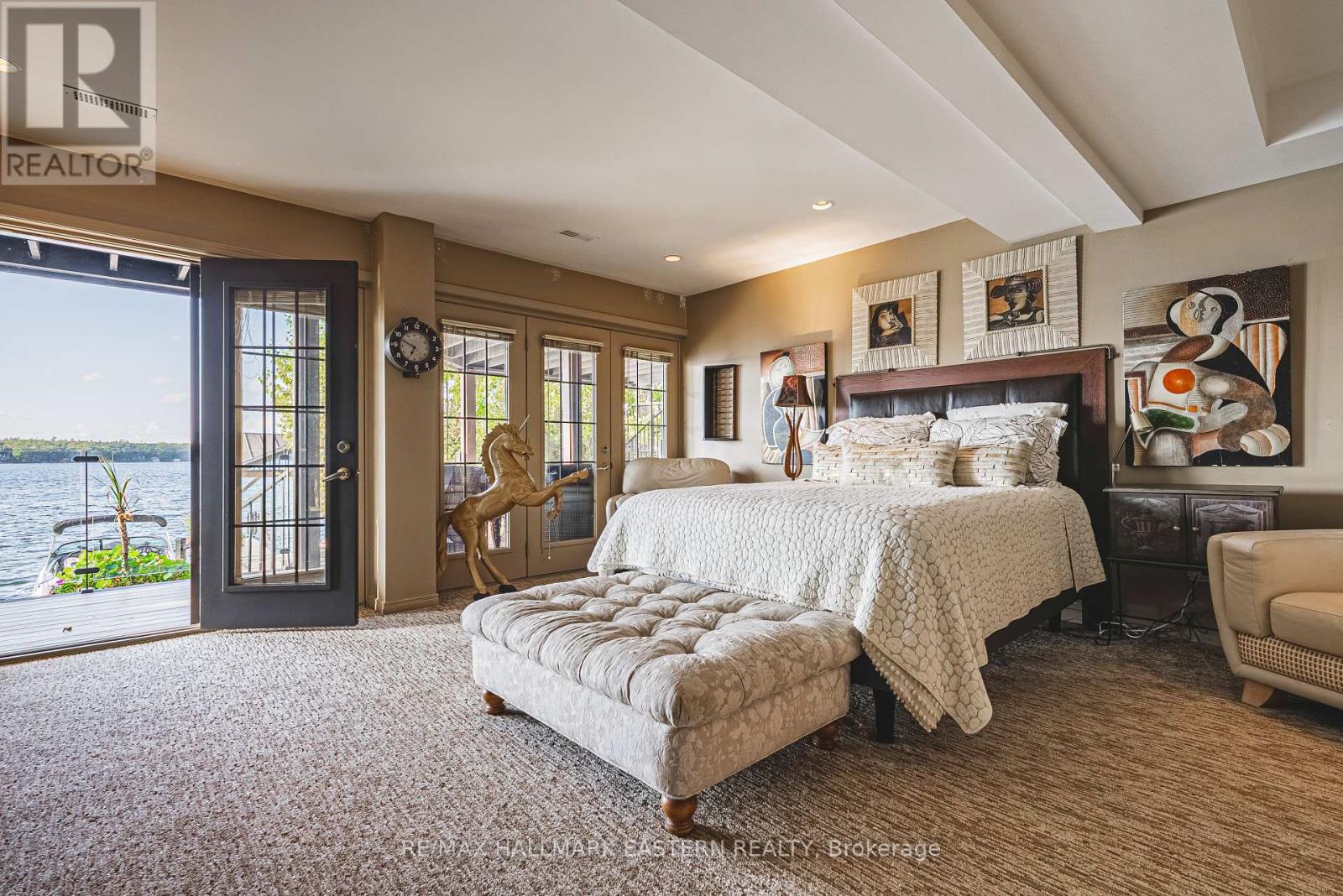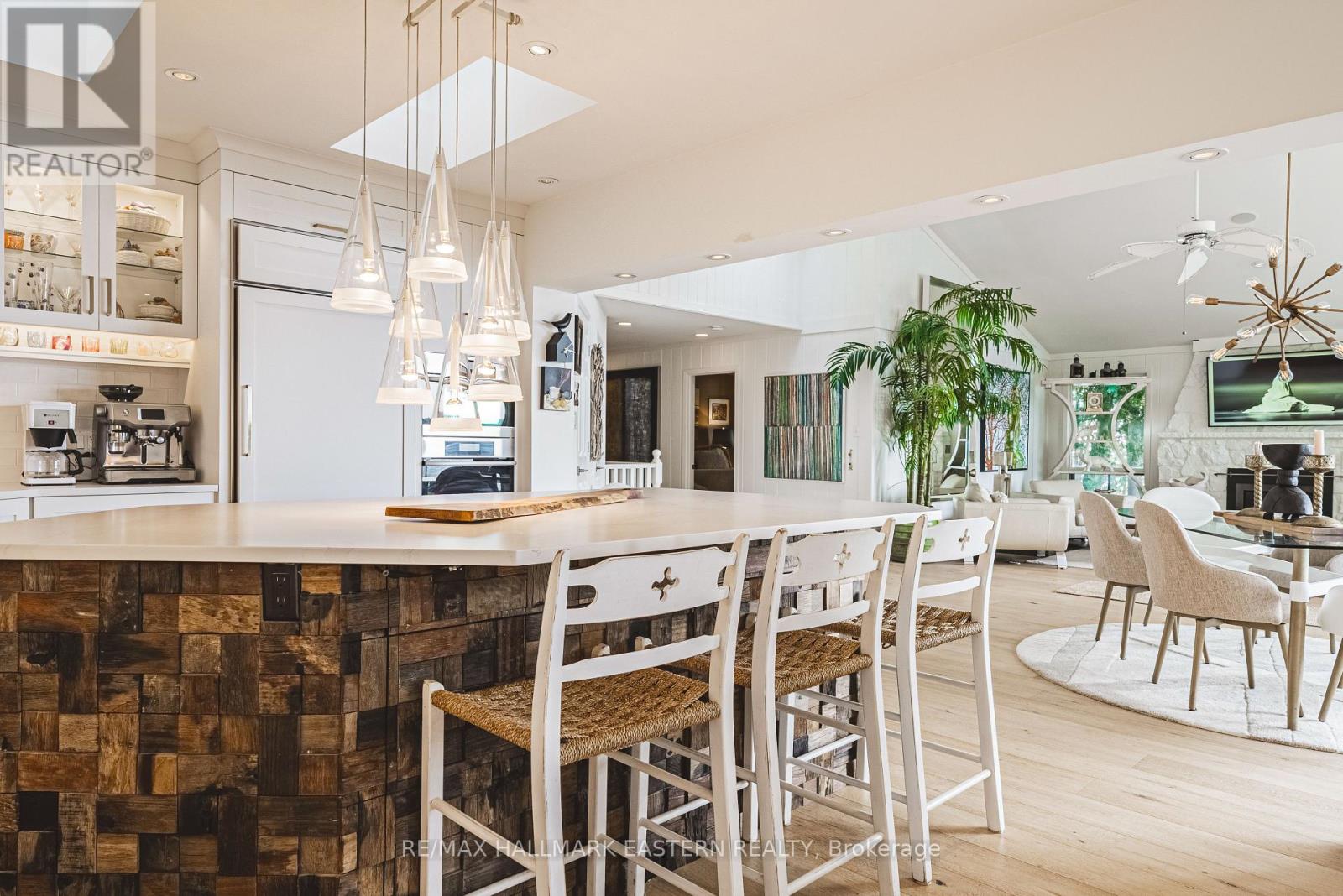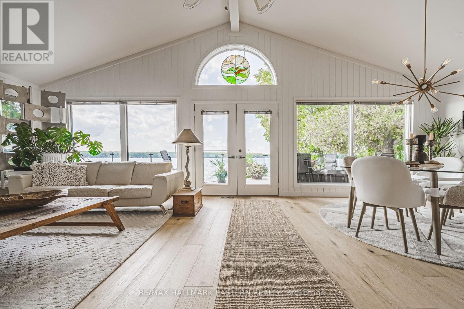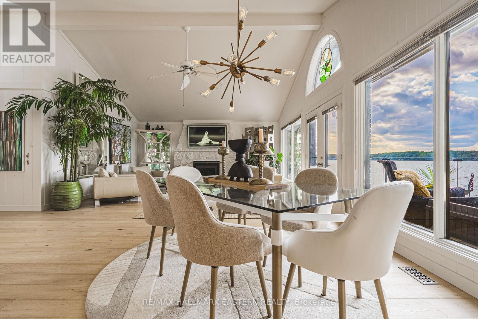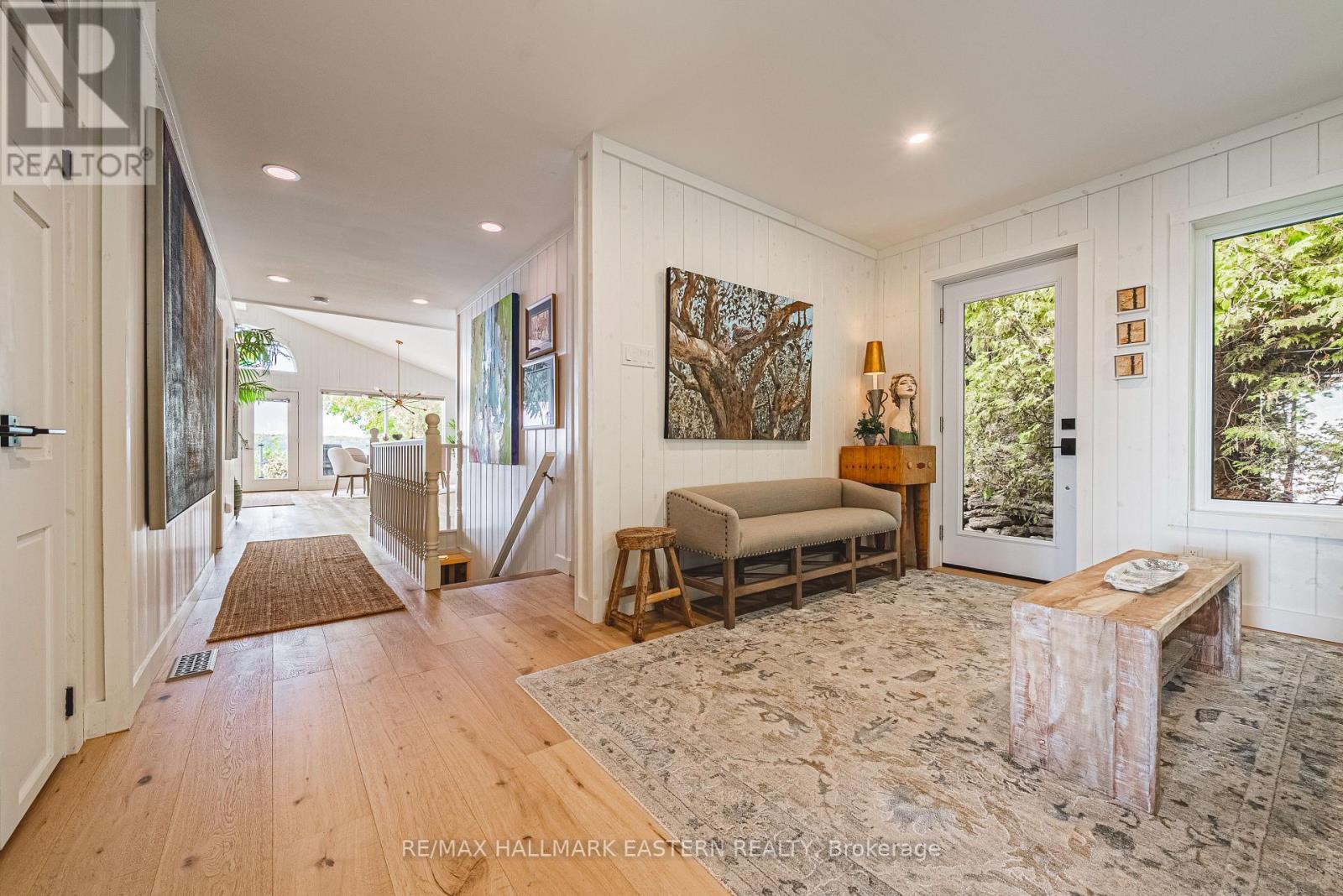 Living in this house is like living on a boat! It is so close to the water you can hear the waves gently lapping at night. Complete privacy in your 1.3 Acres 270 Ft waterfront oasis on Clear Lake awaits. So much thoughtful quality here has to be seen to be appreciated. Mature trees, dappled light and a feeling of magic envelope this mid century boathouse conversation. Tucked into a beautiful cove with natural sand beach sits a totally unique blend of cottage feel with the quality and convenience of a luxurious 4 season bungalow. Drive right to your door and only I step into this open light and bright space. So much attention to detail has been taken for ease of living. White oak wide plank flooring, soaring ceilings and massive amounts of glass bring the lake in from every room. Custom cabinetry adorn this chef's kitchen. Neutral palettes throughout and expansive rooms welcome any decor. Full walkout and covered decks on the lower level for shady summer days, a hot tub set into the landscape, a gazebo for relaxing after a swim in the deep dive off the dock water. Pull your paddle board or kayak up on the natural sand beach, hop in your boat off one of two lifts and explore the beauty of this gorgeous lake on the Trent System right at your door. Keep all your toys safe and clean in the ICF garage and grand loft for play above. Bunkies for the kids, parking for huge parties, huge newer septic, newer drilled well, all systems on massive generator if the power goes out. Boat to Wildfire for Golf, dine at one of three waterfront restaurants and play on the iconic Clear and Stoney Lakes. Meet new lake friends at Juniper Island for tennis, pickleball, sailing, explore granite islands, coves and natural beauty to explore at a world class level. Live here 4 seasons, enjoy it on weekends or use it as a gorgeous retreat home. minutes from the charming village of Lakefield.1.5 hrs from the GTA, 22 mins to Peterborough. Don't miss this opportunity to live your dreams (id:61423)