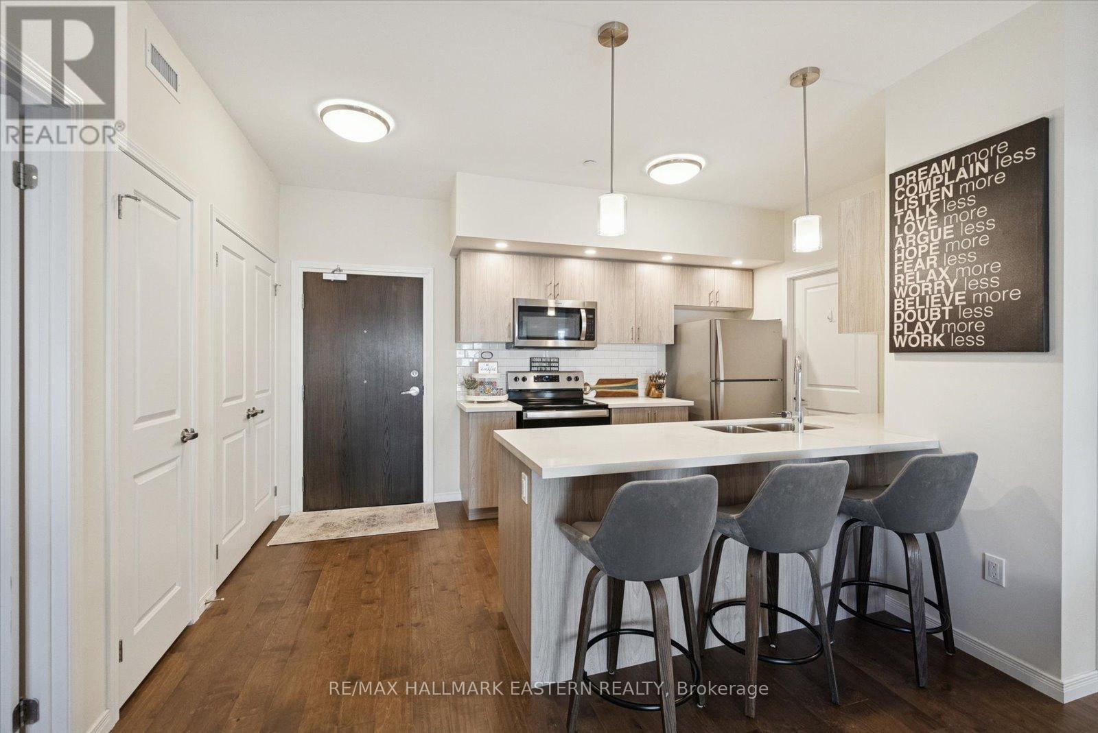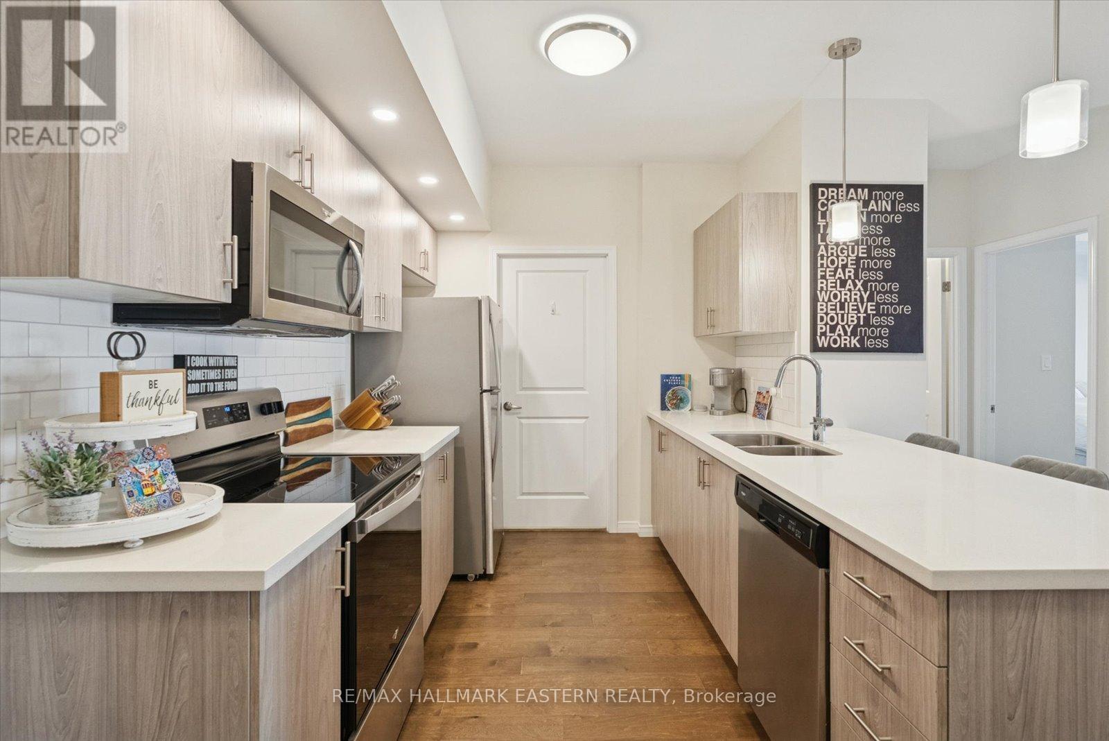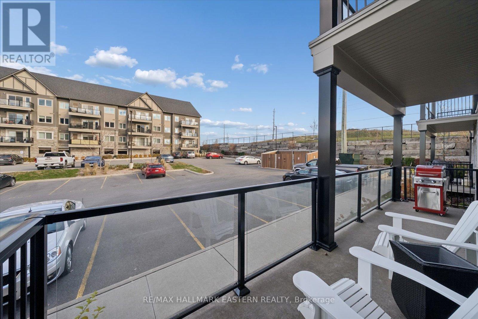 $372.39 Monthly**Watch The Reel - Press Play & Fall in Love!!** This Condo Has It All - Peterborough's Premier West-End Community! Located in the prestigious Jackson Creek Meadows neighbourhood on the edge of the city, this modern condominium offers the perfect blend of convenience and style. Situated on the first level, this 2-bedroom, 2-bathroom unit comes with 1 parking space and visitor parking. Inside, you'll find an open-concept layout designed for comfort and entertaining. The kitchen features quartz countertops, modern lighting, pot lights throughout, an island with seating, and a pantry for extra storage. The living room walks out to an oversized balcony. The primary bedroom includes a walk-in closet and a private ensuite with a glass shower. A separate laundry room adds practicality and convenience. Additional highlights include: gas furnace, central air, Bell Fibe internet, and so much more! Don't miss this move-in-ready condo in one of Peterborough's most sought-after locations! Come take a look and make this beautiful space yours today. (id:61423)