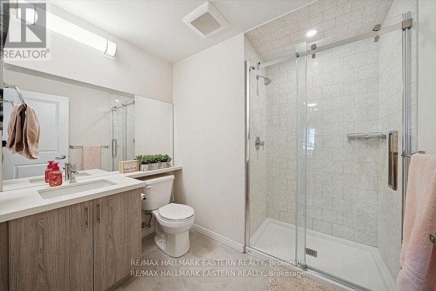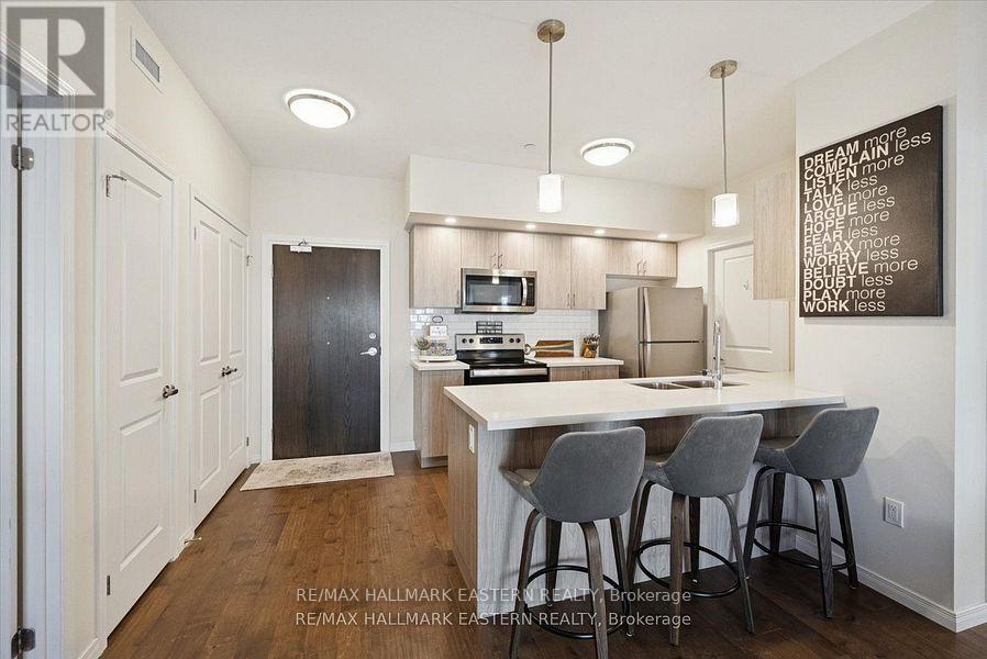 $372.39 Monthly**Watch The Reel - Press Play & Fall in Love!!** This Condo Has It All - Peterborough's Premier West-End Community! Located in the prestigious Jackson Creek Meadows neighbourhood on the edge of the city, this modern condominium offers the perfect blend of convenience and style. Situated on the first level, this 2-bedroom, 2-bathroom unit comes with 1 parking space and visitor parking. Inside, you'll find an open-concept layout designed for comfort and entertaining. The kitchen features quartz countertops, modern lighting, pot lights throughout, an island with seating, and a pantry for extra storage. The living room walks out to an oversized balcony. The primary bedroom includes a walk-in closet and a private ensuite with a glass shower. A separate laundry room adds practicality and convenience. Additional highlights include: gas furnace, central air, Bell Fibre internet, and so much more! Don't miss this move-in-ready condo in one of Peterborough's most sought-after locations! Come take a look and make this beautiful space yours today. (id:61423)
