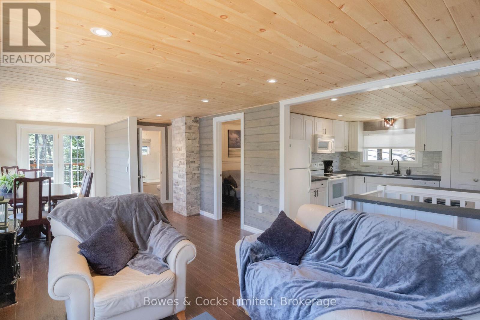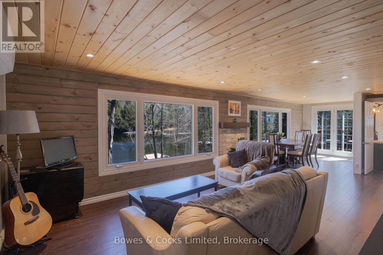 Beautifully renovated 4-bedroom, 2-bathroom waterfront home or cottage, in an exclusive bay on sought-after Esson Lake. The new septic system, UV filter, heat pump with A/C, 200-amp panel, dishwasher, tongue and groove walls and ceilings and upgraded insulation, along with the modern wood fireplace and upgraded baseboard heaters throughout, create a four-season paradise. New waterfront deck, dock, outdoor furniture, barbeque, paddleboat and most indoor furnishings included. Large 180 sq./ft. shed is perfect for lawn equipment and toys. Situated in a wonderful community of longtime residents and cottagers, walking distance to the boat launch and only five minutes to Wilberforce and 20 minutes to Haliburton. Private road is maintained and plowed, and driveway is plowed, through the road association. (id:61423)