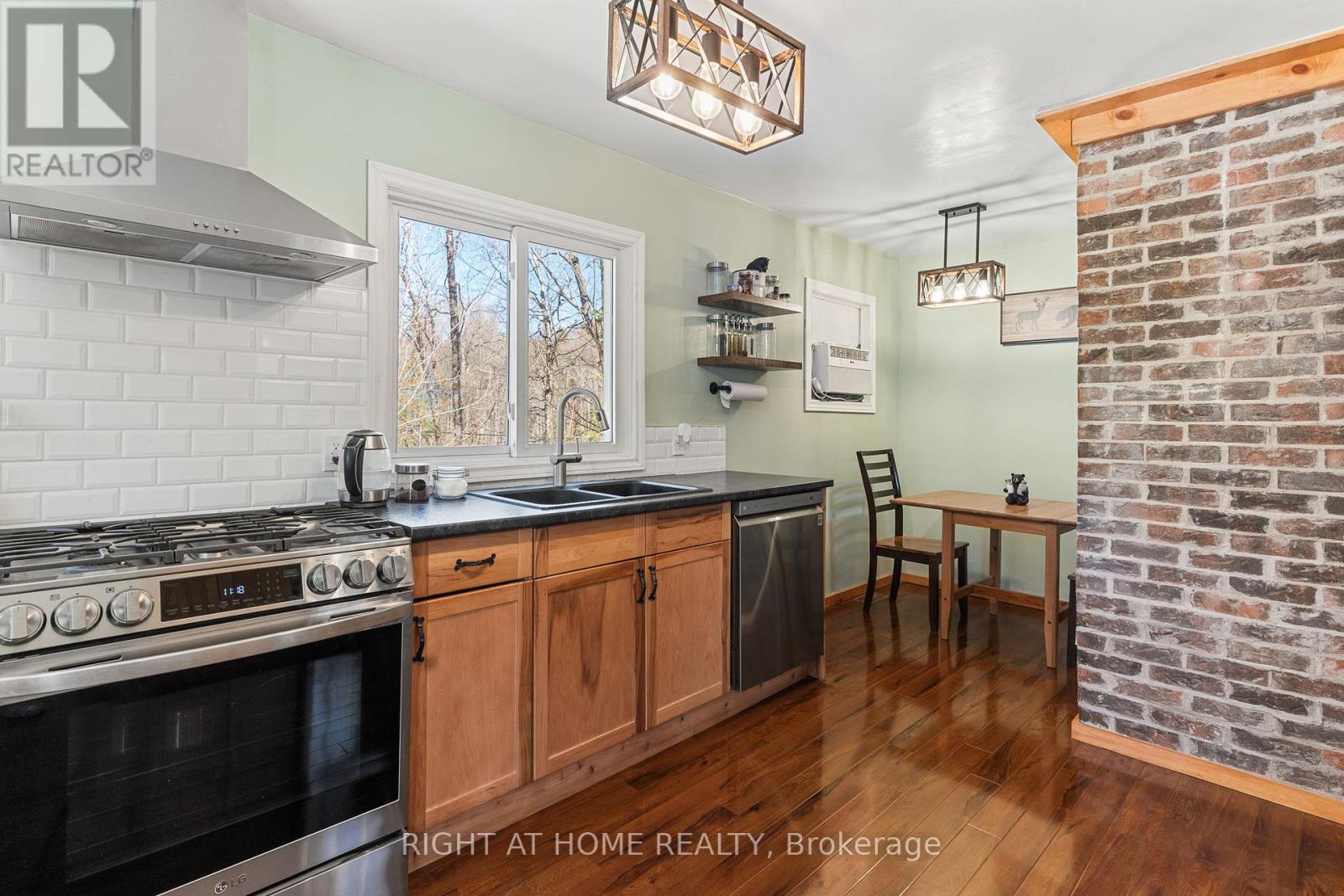 Welcome to this charming and updated rural home only minutes away from Wilberforce, Haliburton, Bancroft, and countless local lakes and fishing spots, all on a rarely offered 16+ acre parcel of gorgeous treed property! This home has been updated and upgraded!! Since 2023, upgrades include a newly reshingled roof (6 months), new main level bath with stacking main floor laundry combination (2023), lovely s/s appliances including a gas stove (propane), huge fridge, exposed brick feature wall and cozy eating nook, all new laminate flooring throughout the main level and a highly efficient woodburning stove in 2023 (wett certified). Propane furnace approx 12 years old, U.V. filter, updated septic system, updated windows and doors are only a few of the improvements. The plumbing, electrical and insulation are all newer, including a fully foam insulated basement and attic cavity. The electricity costs are less than 1500 per annum! Combine all this with even more value.... including a hydro quick-connect for your generator - All of this in your own forested wonderland with the deer and wildlife literally at your doorstep (id:61423)