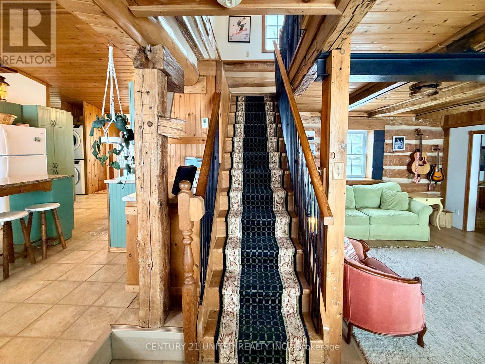 Turn-Key Hobby Farm: Brimming with character and rural charm, this inviting hobby farm sits on just over 4 acres of beautifully usable land surrounded by open farm fields and sweeping country views. Enjoy a coffee on the front porch watching the sun rise or unwind with a glass of wine on the expansive back deck while taking in breathtaking sunsets. This meticulously maintained 4-bedroom, 2-bath, two-story log home (circa 1900) blends timeless charm with modern convenience, offering warmth and personality in every corner. A separate two-story building provides exceptional flexibility - ideal as a fully functional work-from-home office with high-speed connectivity or easily adapted into additional living space for extended family. Additional outbuildings include a workshop, wood storage shed, chicken coop and more. For those seeking hobby farm potential, the well-kept 4-stall barn, fenced paddocks, and ample space for riding or expansion offer excellent opportunity. Private and peaceful, yet conveniently located just 10 minutes to Lakefield Village and 20 minutes to Peterborough, this property offers the perfect balance of country living and modern accessibility. (id:61423)