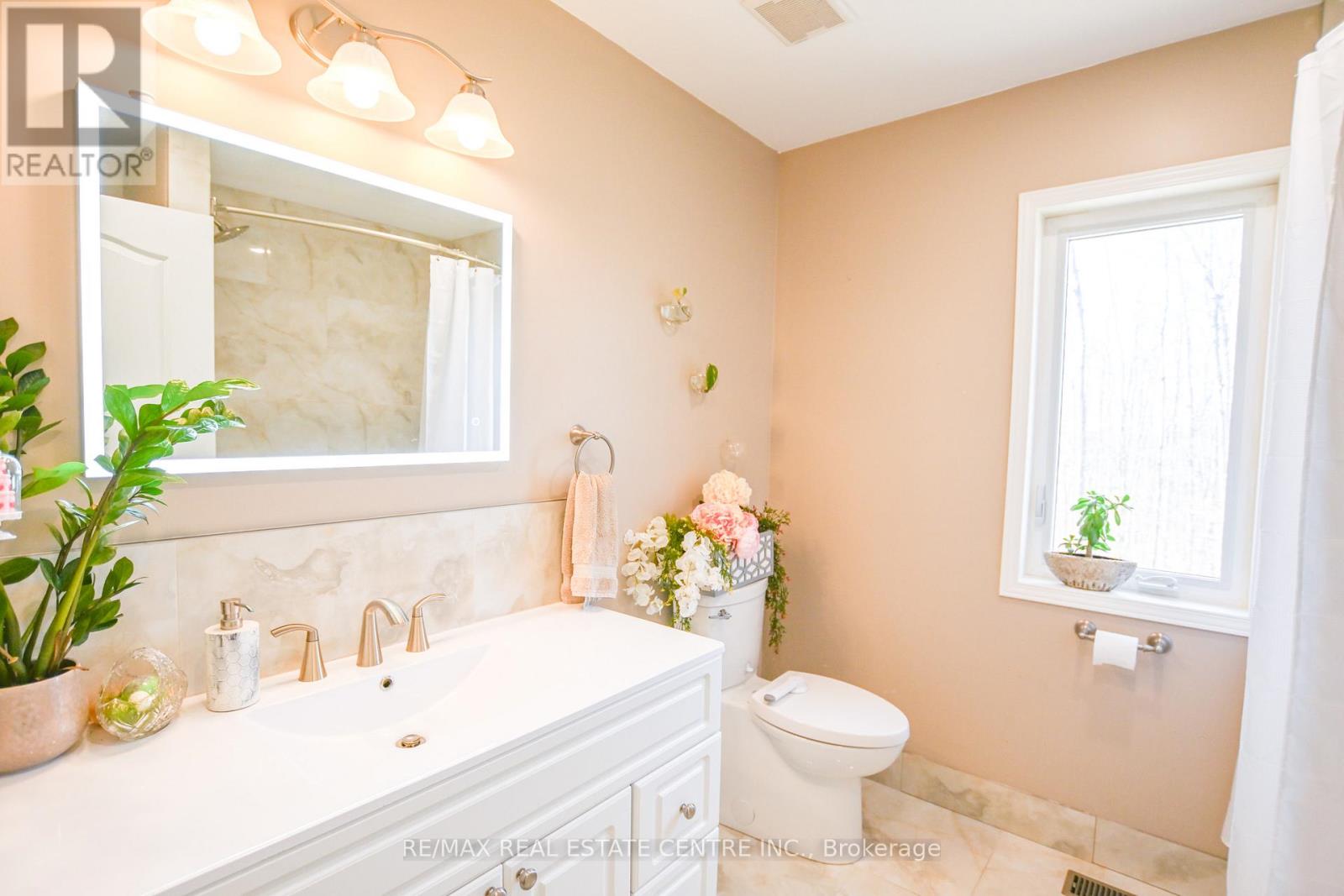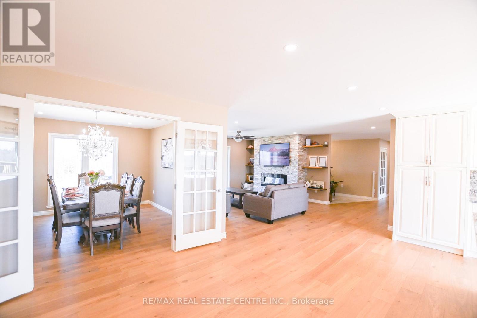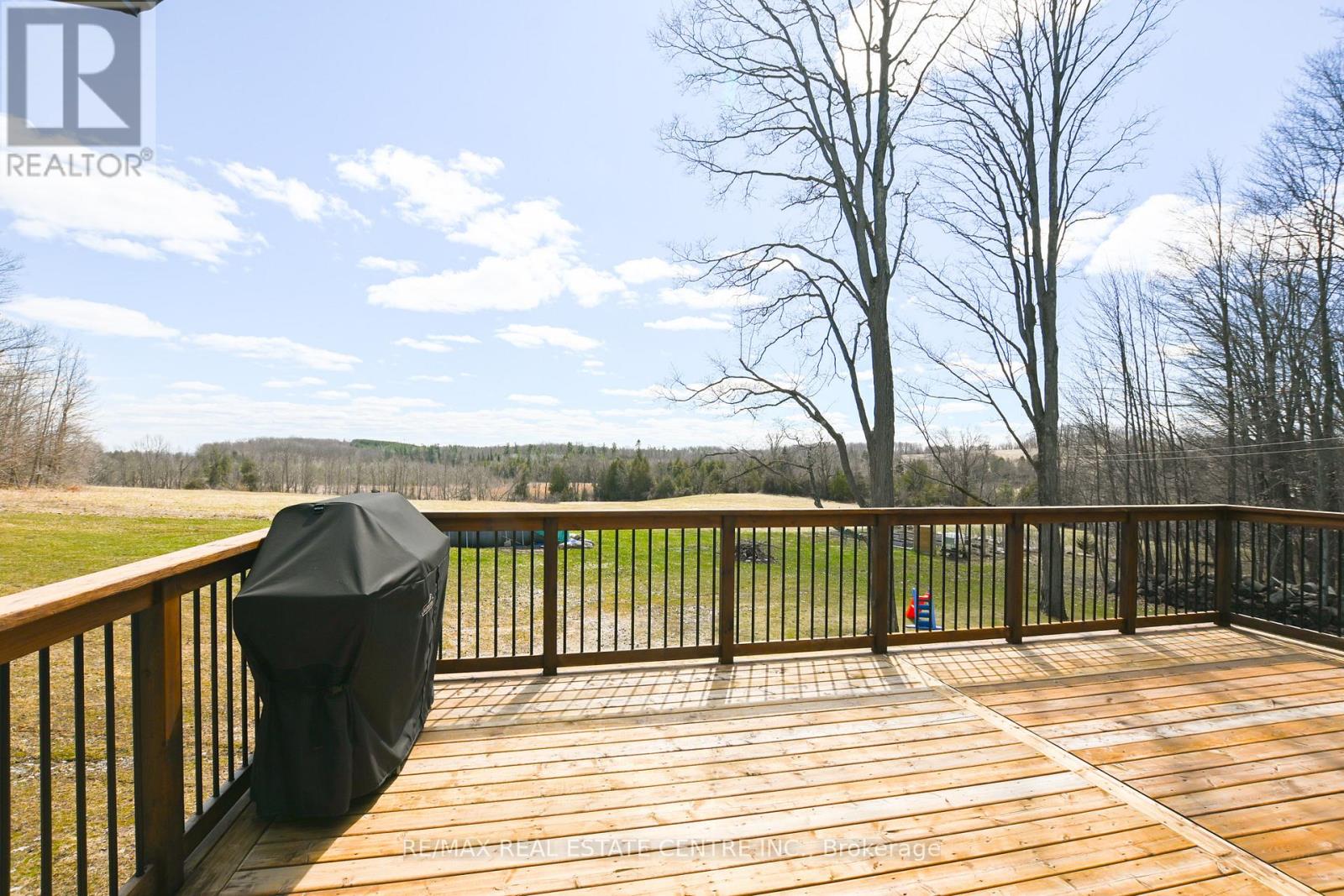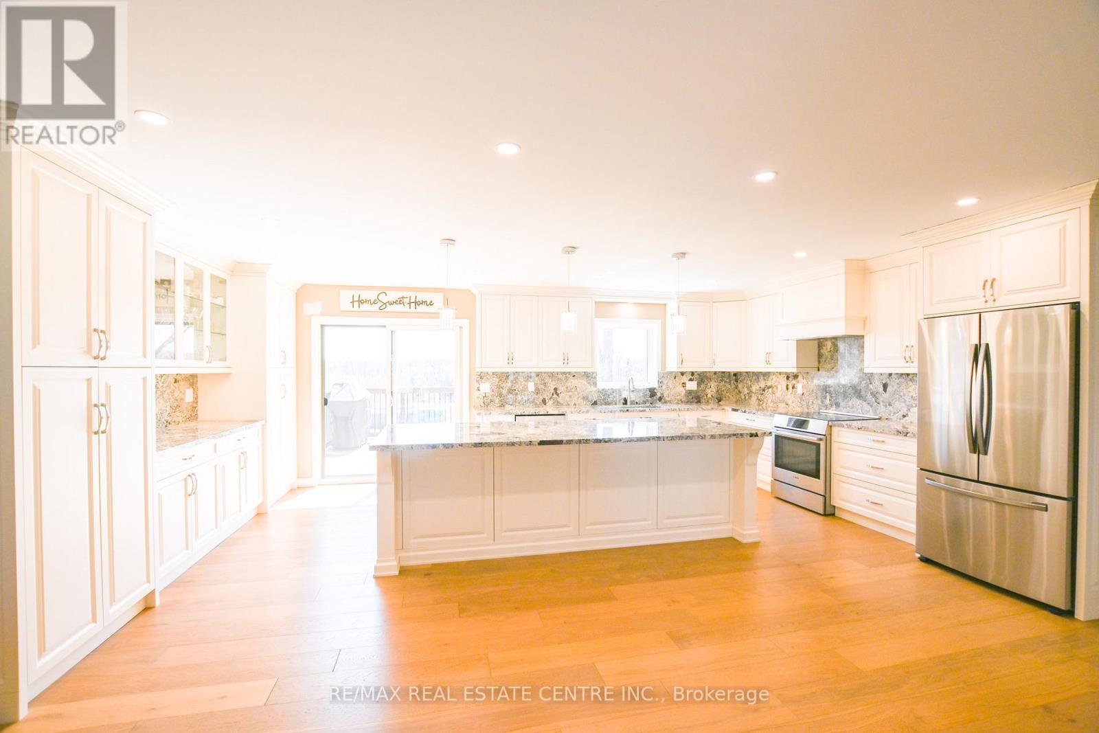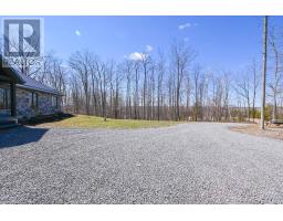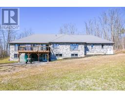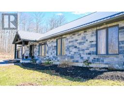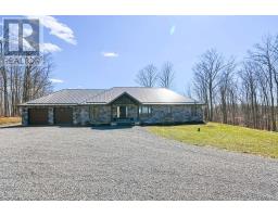This one of a kind custom bungalow showcases high end luxury finishes rarely seen, offering a timeless warmth and elegance designed to suit any generation. Perched high on a hill and surrounded by complete privacy, the home enjoys breathtaking views in every direction.The thoughtfully designed main level features a highly desirable layout, with the primary suite and exquisite en-suite privately positioned at one end, and two additional bedrooms with huge 4 x 8 closets located at the opposite end of the home. Full length windows throughout flood the space with natural light, creating a bright and inviting atmosphere.At the heart of the home, exceptional craftsmanship is evident in the extra thick, solid wood cabinetry and the oversized granite island-perfect for family gatherings and entertaining. The open concept living space flows seamlessly to a large deck overlooking uninterrupted scenic views. White engineered oak flooring runs throughout the home, while tiled bathrooms feature beautiful fixtures that truly set this property apart.Garden enthusiasts will appreciate the ample opportunity to expand upon the existing raised garden boxes. The lower level down the extra wide ( 4ft) stairs offers a walk out with mostly finished space, ready for your customisation and creative vision.Set on nearly two acres, this impressive stone home features a metal roof with snow stoppers, providing durability and low maintenance. With separate entrances and a spacious lower level, the property offers excellent potential for multi generational living or simply enjoying a superior quality home at an affordable price. * lower Bathroom will be finished and armour stone added to the front step. (id:61423)