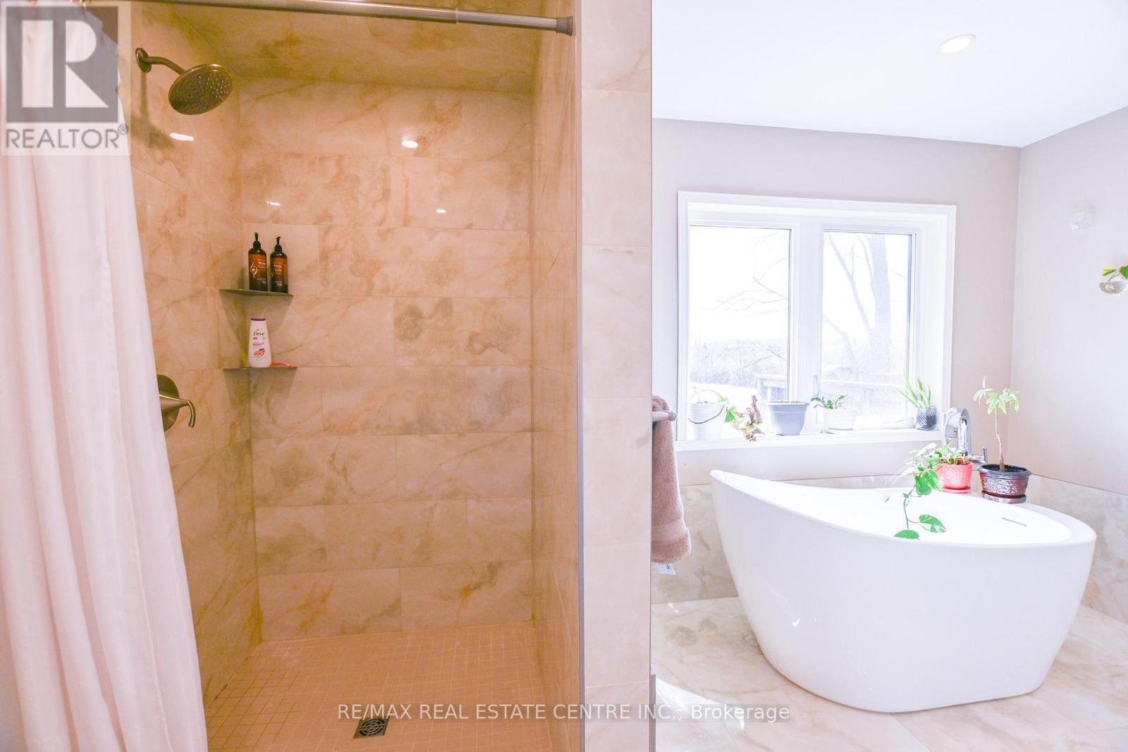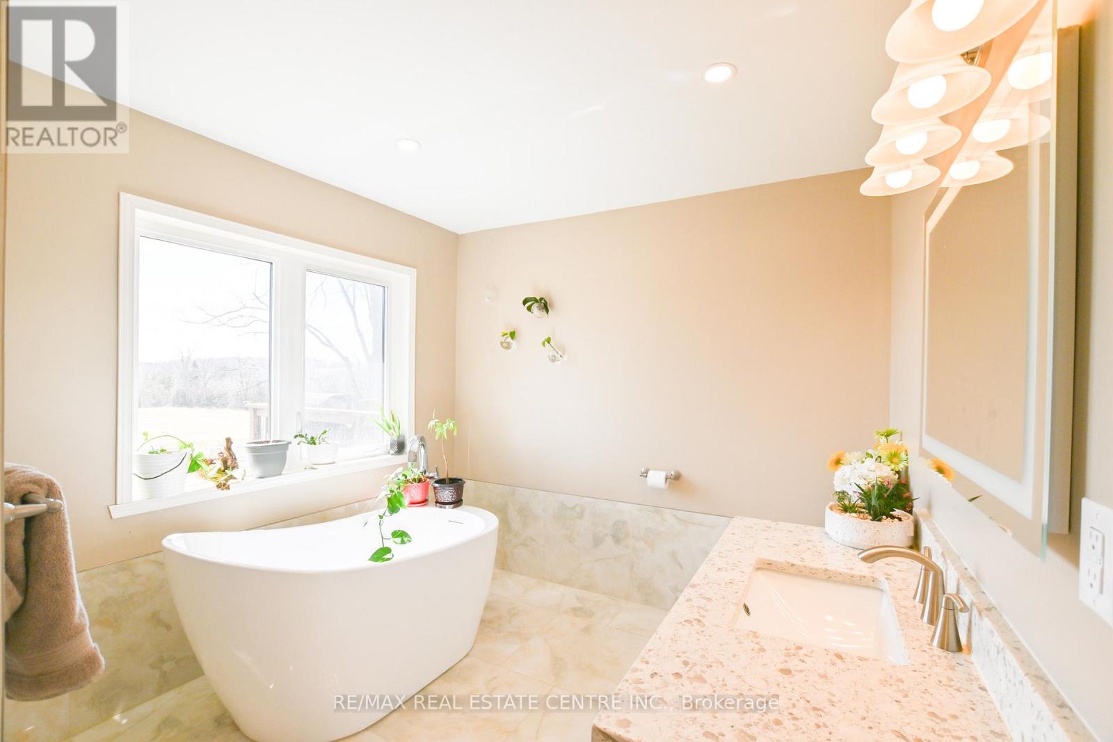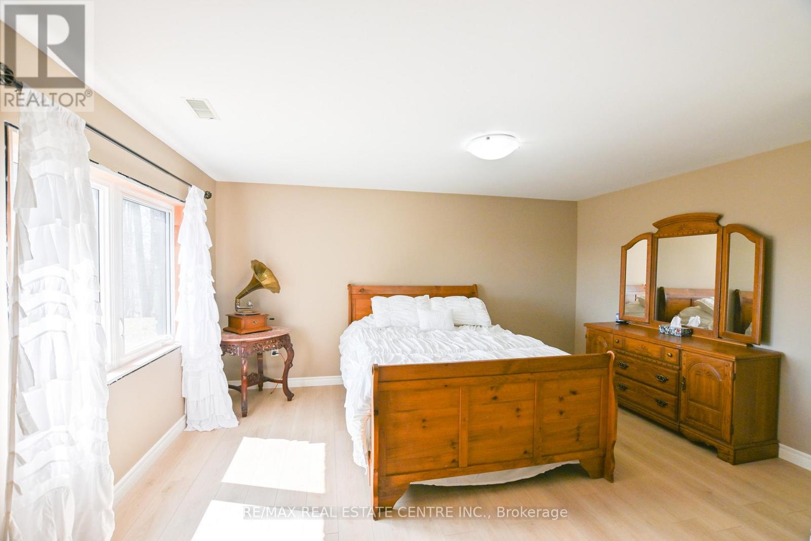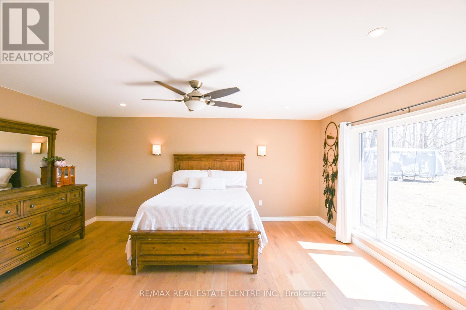 This one of a kind custom bungalow showcases high end luxury finishes rarely seen, offering a timeless warmth and elegance designed to suit any generation. Perched high on a hill and surrounded by complete privacy, the home enjoys breathtaking views in every direction.The thoughtfully designed main level features a highly desirable layout, with the primary suite and exquisite en-suite privately positioned at one end, and two additional bedrooms with huge 4 x 8 closets located at the opposite end of the home. Full length windows throughout flood the space with natural light, creating a bright and inviting atmosphere.At the heart of the home, exceptional craftsmanship is evident in the extra thick, solid wood cabinetry and the oversized granite island-perfect for family gatherings and entertaining. The open concept living space flows seamlessly to a large deck overlooking uninterrupted scenic views. White engineered oak flooring runs throughout the home, while tiled bathrooms feature beautiful fixtures that truly set this property apart.Garden enthusiasts will appreciate the ample opportunity to expand upon the existing raised garden boxes. The lower level down the extra wide ( 4ft) stairs offers a walk out with mostly finished space, ready for your customisation and creative vision.Set on nearly two acres, this impressive stone home features a metal roof with snow stoppers, providing durability and low maintenance. With separate entrances and a spacious lower level, the property offers excellent potential for multi generational living or simply enjoying a superior quality home at an affordable price. * lower Bathroom will be finished and armour stone added to the front step. (id:61423)