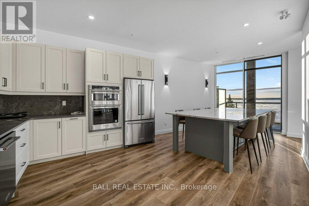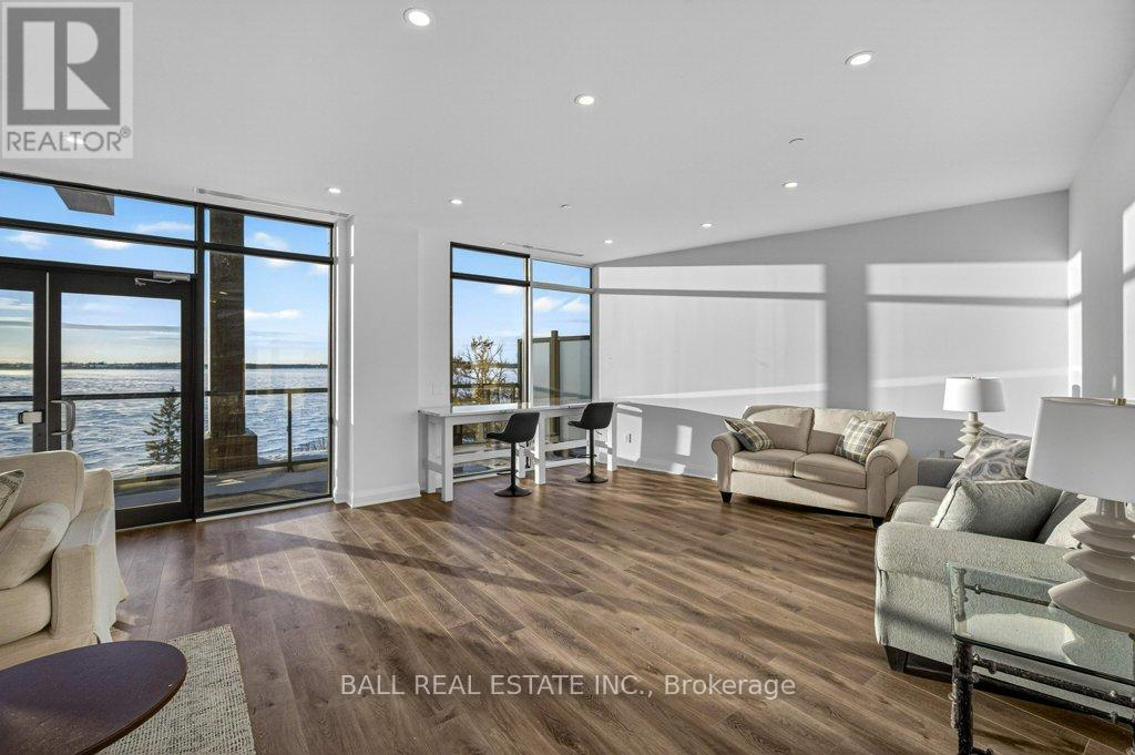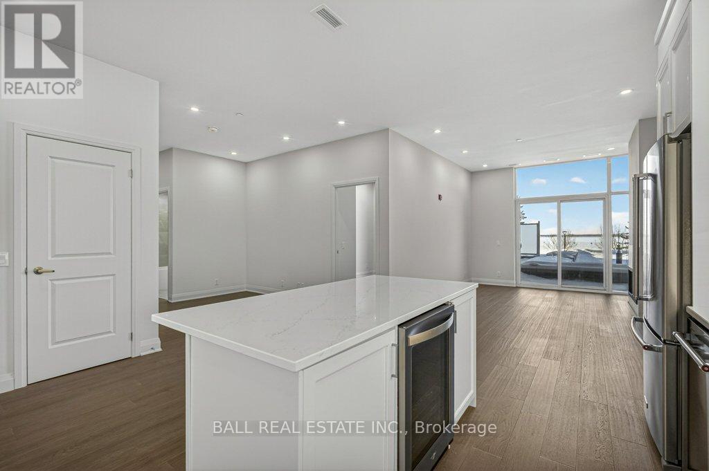 Luxury Living in the Heart of Kawartha Lakes, experience resort-style living every day in Kawartha Lakes' premier condo development - The Moorings on Cameron Lake. This stunning 2-bedroom, 2-bath suite + den offers 1401 sq foot of elegant and spacious living with nine foot ceilings, clerestory windows and an open-concept layout with premium finishes throughout. Suite Features: Expansive kitchen/dining/living area with gas fireplace and walk-out terrace overlooking the lake with western sunsets (gas BBQ hookup). Upgraded kitchen with quality cabinets, quartz countertops, under-cabinet lighting, large island and stainless steel appliances. Primary suite has waterfront view with walk-in closet and luxurious en-suite bathroom. Second bedroom ideal for guests or office space with waterfront view. Den area with a walk-in closet. In-suite laundry room with extra storage. Engineered hardwood & porcelain tile flooring throughout, upgraded doors and trim. Two underground parking spots and private locker included. World-Class Amenities: Outside Lakeview lounge with western sunsets, lakeview state-of-the-art fitness centre with indoor sauna, lakeview owners lounge with caterer's kitchen and movie theatre, (can be booked for private events). Two guests suites, grand foyer with gas fireplace, heated outdoor pool & hot tub, tennis/pickleball court, and beautifully landscaped outdoor areas. Boat slips available for purchase at the on-site marina (to be built, spaces limited). Steps from the Victoria Trail, shopping, dining, wellness services, and entertainment. Located on the tranquil shores of Cameron Lake, part of the Trent-Severn Waterway, and just minutes to Lindsay and Bobcaygeon, this is an ideal blend of luxury, convenience, and nature. Enjoy spectacular western sunsets, peaceful surroundings, and vibrant local living - all less than 90 minutes from the GTA. Only a few units remain - don't miss this rare opportunity to own at The Moorings! (id:61423)