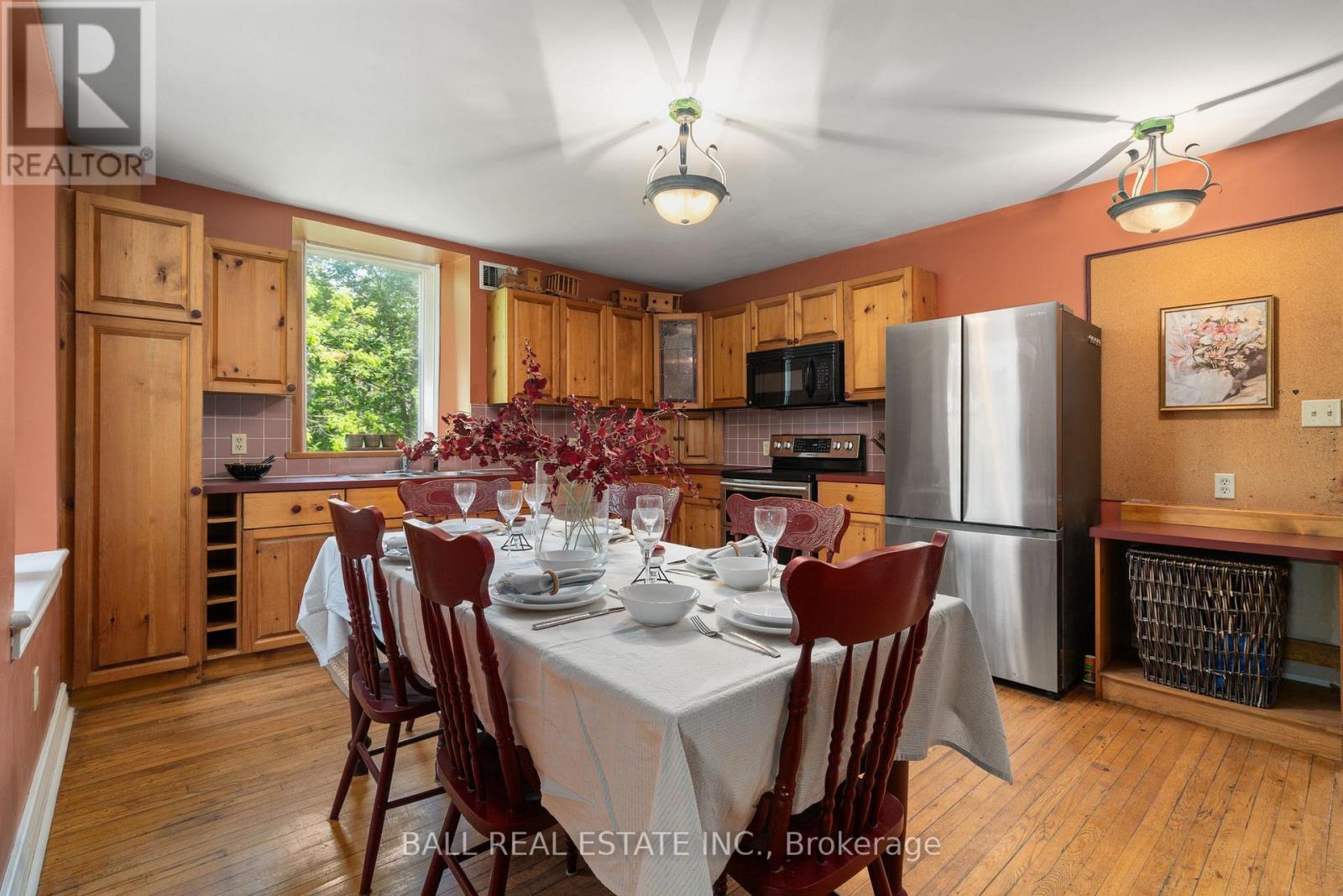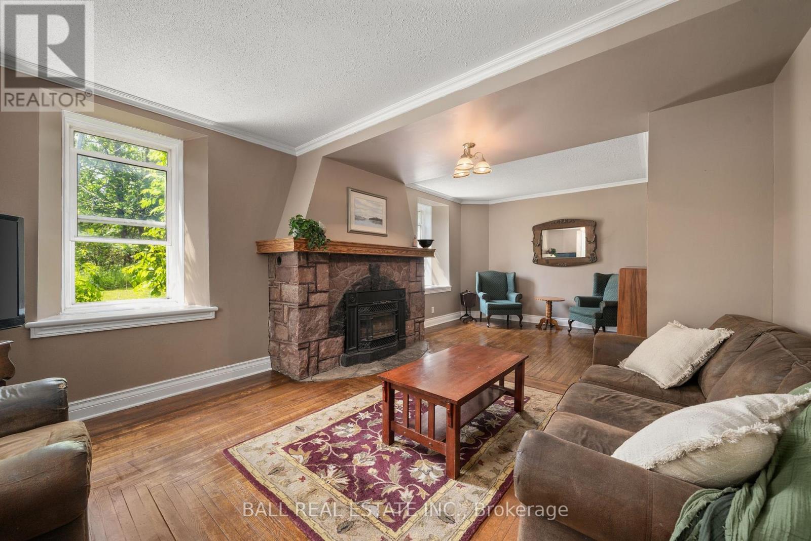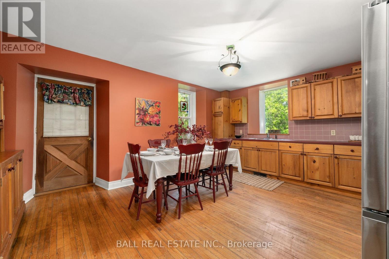 Set on 3.3 acres of open countryside just minutes to Bobcaygeon and Buckhorn, this classic two-storey home offers the space, privacy, and versatility that's getting harder to find. Originally built in the early 1900s, the home features a beautiful local limestone exterior and over 2,700 sq.ft. of living space, blending character with key updates already in place. Inside, you'll find a spacious, functional layout with a large living room anchored by a granite propane fireplace, original hardwood floors, and an eat-in kitchen with plenty of room for gathering. A main floor office nook adds flexibility for working from home, along with a convenient 2-piece bath. Upstairs offers four bright, generously sized bedrooms and a full 4-piece bathroom, making this a great fit for families or those needing extra space. The 40' x 40' detached shop is a standout feature - ideal for hobbyists, storage, or running a home-based business. Recent updates include propane furnace (2022), shingle roof (2022), updated windows, and spray foam insulated basement, providing improved efficiency and peace of mind. Located on a municipally maintained road and surrounded by farmland, you'll enjoy a quiet rural setting with Pigeon Lake just down the road, plus easy access to a local golf course and nearby marina - perfect for making the most of everything the Kawarthas has to offer. Properties offering this combination of acreage, square footage, and a large shop in this location are rare - a great opportunity to make it your own and add value over time. (id:61423)