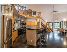 Architecturally Designed 4-Bedroom Retreat on 7 Acres with Lake Access. Step into luxury and comfort with this stunning 3,600+ sq. ft. architectural home, designed for modern living and energy efficiency. Situated on 7 private acres, this property offers the perfect balance of elegance, functionality, and natural beauty. Thoughtfully crafted open-concept layout with sleek, modern lines and new windows that flood the home with natural light. Geothermal in-floor heating, a durable metal roof, and a backup generator for sustainable, worry-free living. Includes 4 large bedrooms, 3 bathrooms, walk-in closets, and a charming loft library for relaxation or study. The expansive Muskoka room, complete with a fireplace and built-in BBQ, is perfect for year-round gatherings. Numerous walkouts lead to a large deck, seamlessly blending indoor and outdoor living. With rented dock space on Talon Lake, enjoy fishing, boating, or simply unwinding by the water just steps away from your peaceful retreat. This property is a rare gem, offering modern amenities, privacy, and proximity to nature. Whether you are looking for a family home or a tranquil getaway, this energy-efficient, architecturally designed residence comes fully furnished and is sure to impress. (id:61423)