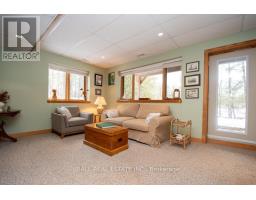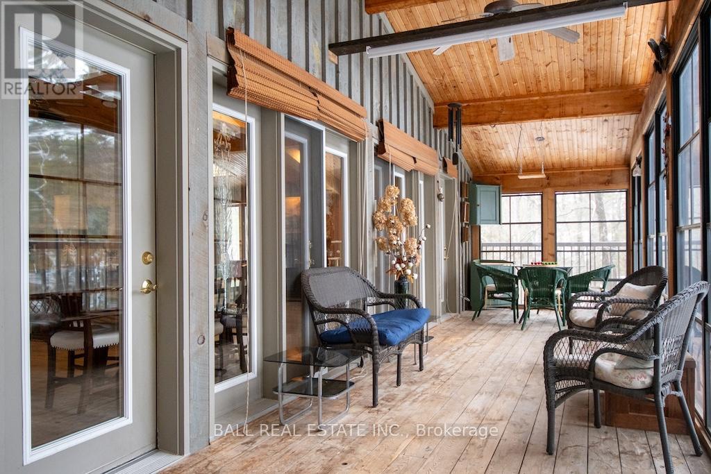 STONEY LAKE.... This year-round waterfront home sits at the west end of Lovers' Lane in a nice cove just 10 seconds from the open lake and with a western exposure for great sunsets. The walkout fully finished lower level has a full bath while the main level with cathedral ceilings features a screened in porch across the whole front of the home. The home was a complete reno in 2000 featuring ICF construction plus there is a fantastic bunkie also overlooking the waterfront. With 170 feet of waterfront this property has over 6.4 acres of pine oak and maple woods PLUS .... a great garage/barn/workshop with loft. It's in an area of upscale year-round waterfront homes with private road access [ yearly fee $750.00]and garbage and recycle pickup right at the property line. A short drive to Wildfire Golf Course lots of shopping amenities in nearby Lakefield or Norwood. Be sure to watch the virtual tour then book your viewing appointment right away. This is a value plus rated listing. (id:61423)