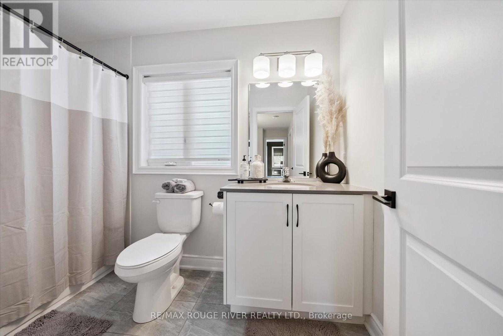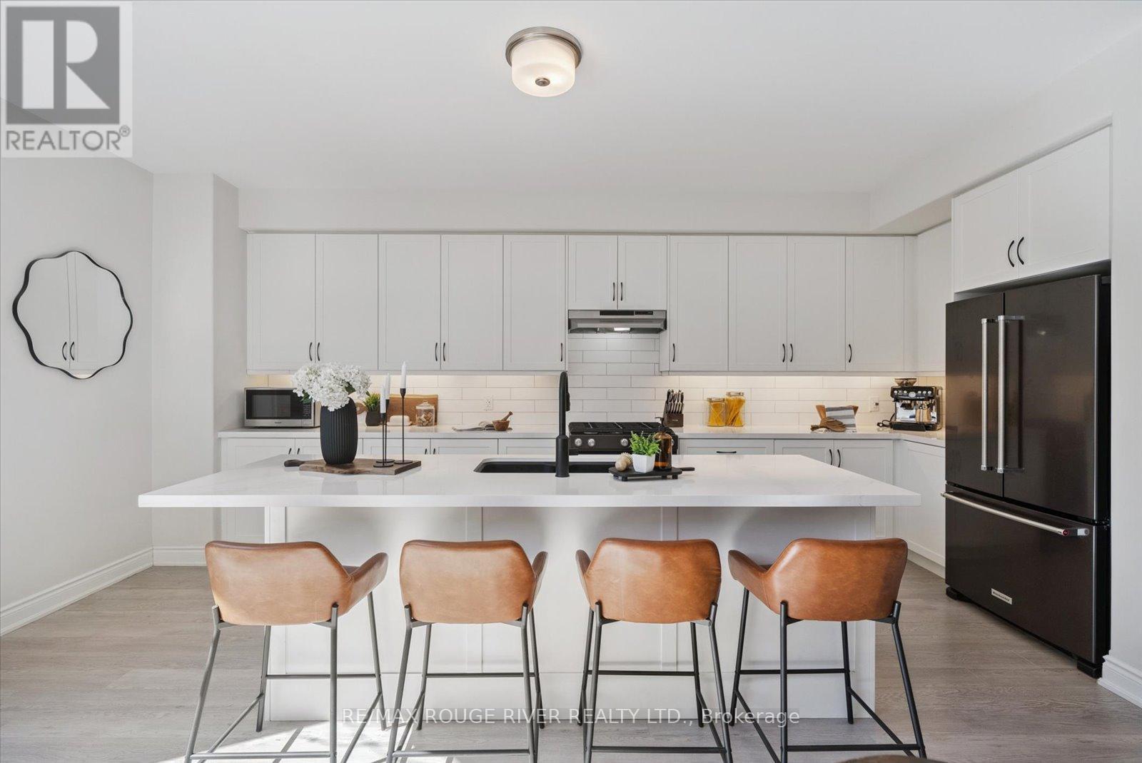 Welcome to 1093 Rippingale Trail, located in Peterborough's highly sought-after Northcrest community. This modern, all-brick, two-storey urban detached home was built in 2022 by award winning builder Mason Homes. Inside, the open-concept design blends style and functionality, creating a bright and inviting space perfect for both everyday living and entertaining. The gourmet kitchen features quartz countertops, sleek cabinetry, a stylish backsplash, premium black stainless steel appliances, and a generous island ideal for culinary enthusiasts. The adjoining living and dining area offer a versatile setting for hosting guests or enjoying cozy nights by the fireplace. Upstairs, you'll find three spacious bedrooms, including a bright and comfortable primary suite with a walk-in closet and private ensuite. Step outside to the low-maintenance yard complete with a newly built deck perfect for those seeking a manageable outdoor space without the upkeep. Additional highlights include main floor laundry with garage access, an unspoiled basement boasting upgraded high ceilings, above-grade egress windows, and a bathroom rough-in. With Easy Access to Trent University, Top-Rated Schools, Parks, Walking trails, Groceries & Restaurants. Parking for 4 vehicles, 2garage spaces + 2 driveway spaces, This home has it all! (id:61423)