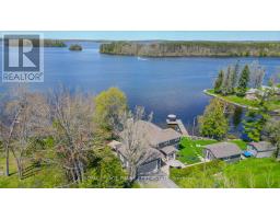 Beautiful year round or vacation home on Buckhorn Lake. Sunny open concept design with panoramic views of Buckhorn Lake and its Islands with Western exposure and beautiful sunsets. An immaculate property with many updates throughout including many windows, recent shingles and siding. The great room offers a huge kitchen with island and its own sink, granite counter tops, extra high ceilings and wood burning fireplace, built-in dishwasher and abundance of pot lighting and hardwood floors. Large bright primary bedroom with huge windows and spectacular lake views. Lovely 5 pc ensuite bath with walk-in closet and heated floors. Updated main bath with heated floors. Main floor laundry room. Attached 2.5 car garage with extra ceiling height to accommodate a car hoist to store that sports car you have always wanted and a handy entrance direct into the home. Quality outbuildings include a 1.5 car garage on a concrete slab, currently finished as an extremely nice 5 Star guest cabin or Bunkie with a sauna and its own separate hydro panel. Also a quality built storage shed 12X16 Ideal for a riding lawnmower, seadoo, skidoo or other tools and toys. Beautiful covered front entrance porch with seating area with a brand new steel entrance door. Outside offers a fantastic large level lot with 236 feet of frontage. The level lot allows for many out door games ie badminton, horse shoes, darts, etc. 2 large patio areas. Excellent large permanent dock. BBQ Propane hook up on patio. Sump pump equipped with battery back up. Generlink connect at the hydro meter. Secondary heat system is heat pump for heating and air conditioning. (id:61423)