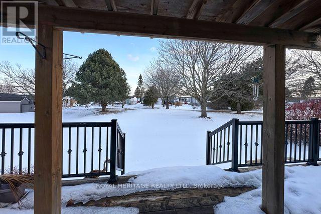 Welcome to 11 Heritage Lane in the Sought After Adult Community of Wilmot Creek on the Shores of Lake Ontario. This Home Was Renovated Top to Bottom Inside and Out 2016-2018 Home Boasts Over $150,000 In Renos. Black Appliances Include Gas Stove, Fridge, BI Dishwasher, and BI Microwave. Home is Complete With Garburator, Central Vac, Central Air, California Shutters and Blinds, Crown Molding, Quartz Counters in Kitchen and Bath, Extra Cupboard Storage with Pantry in Dining Room, Gas Bbq , Gas Dryer in Separate Laundry Room. Large Family Room (2018) With W/I Storage/Closet and Gas Fireplace, High End Flooring Throughout. (Shingles/Siding/Gas/Air/Renos From 2016 - 2018). Extra Closet With Shelving In Master. Walk out To Generous Deck with Wooden Gazebo Overlooking Greenspace. Hot Water Tank (Owned) Monthly Fee of $1300 Incl. Use of Golf Course, Pools, and All Amenities, Snow Removal From Driveway. Please Note There is a 2 Occupant Per Household Restriction. (id:61423)
