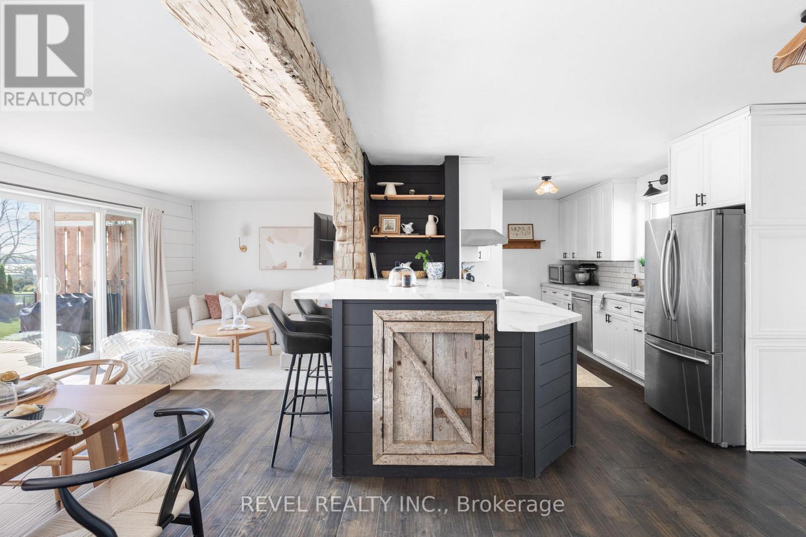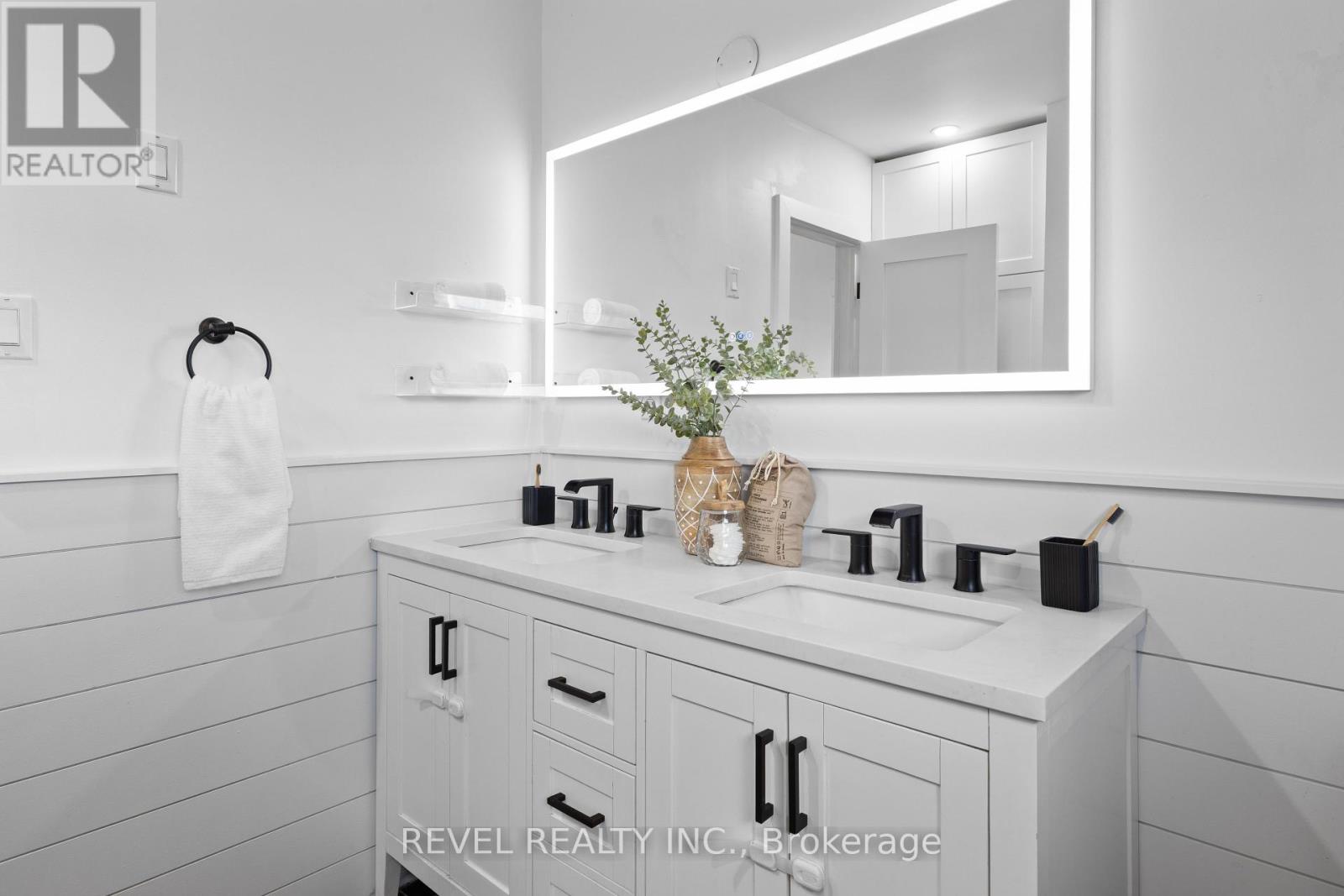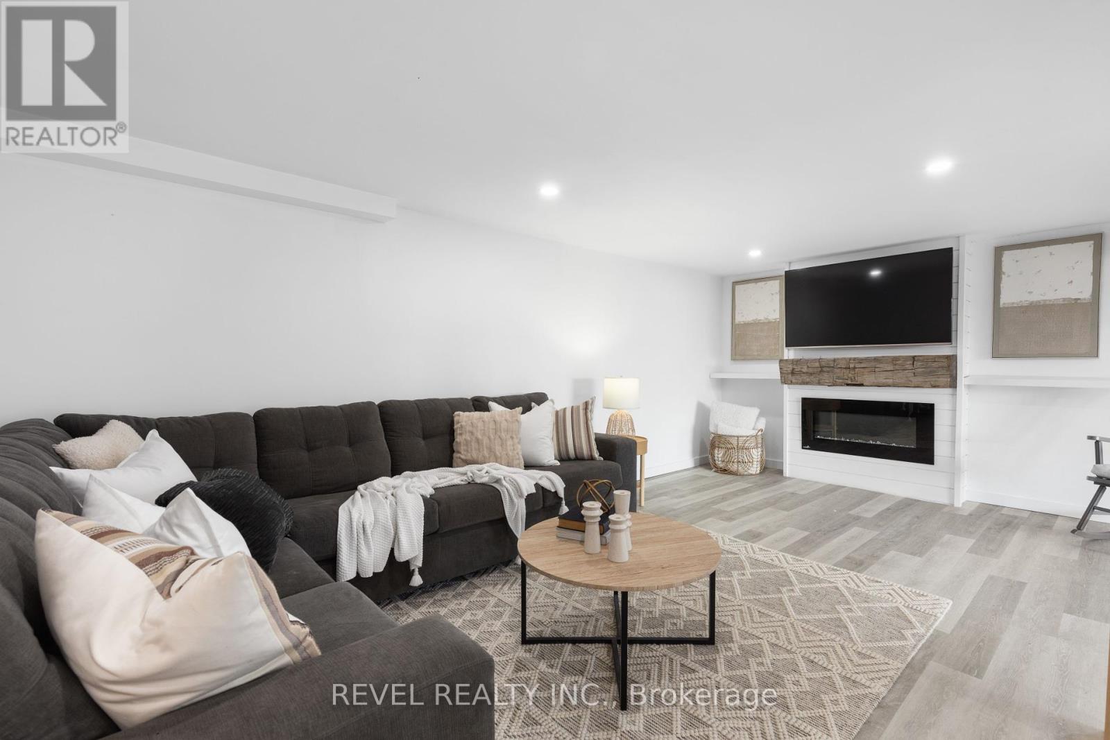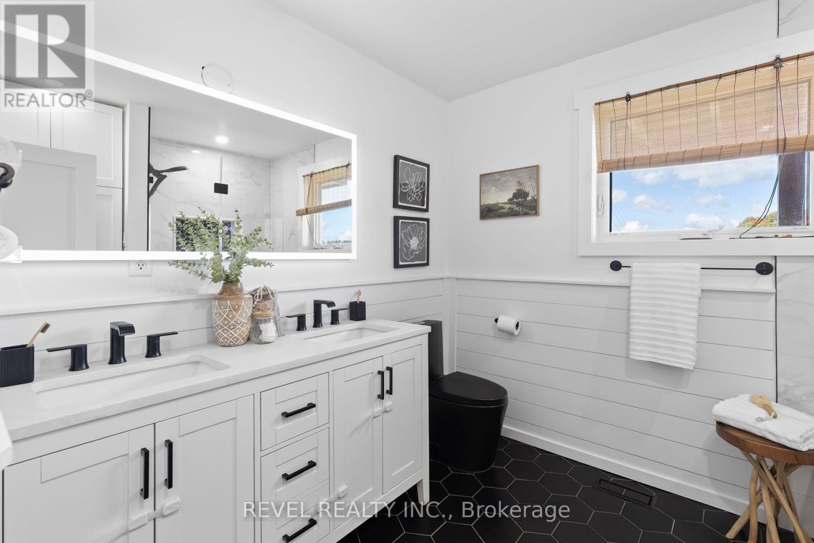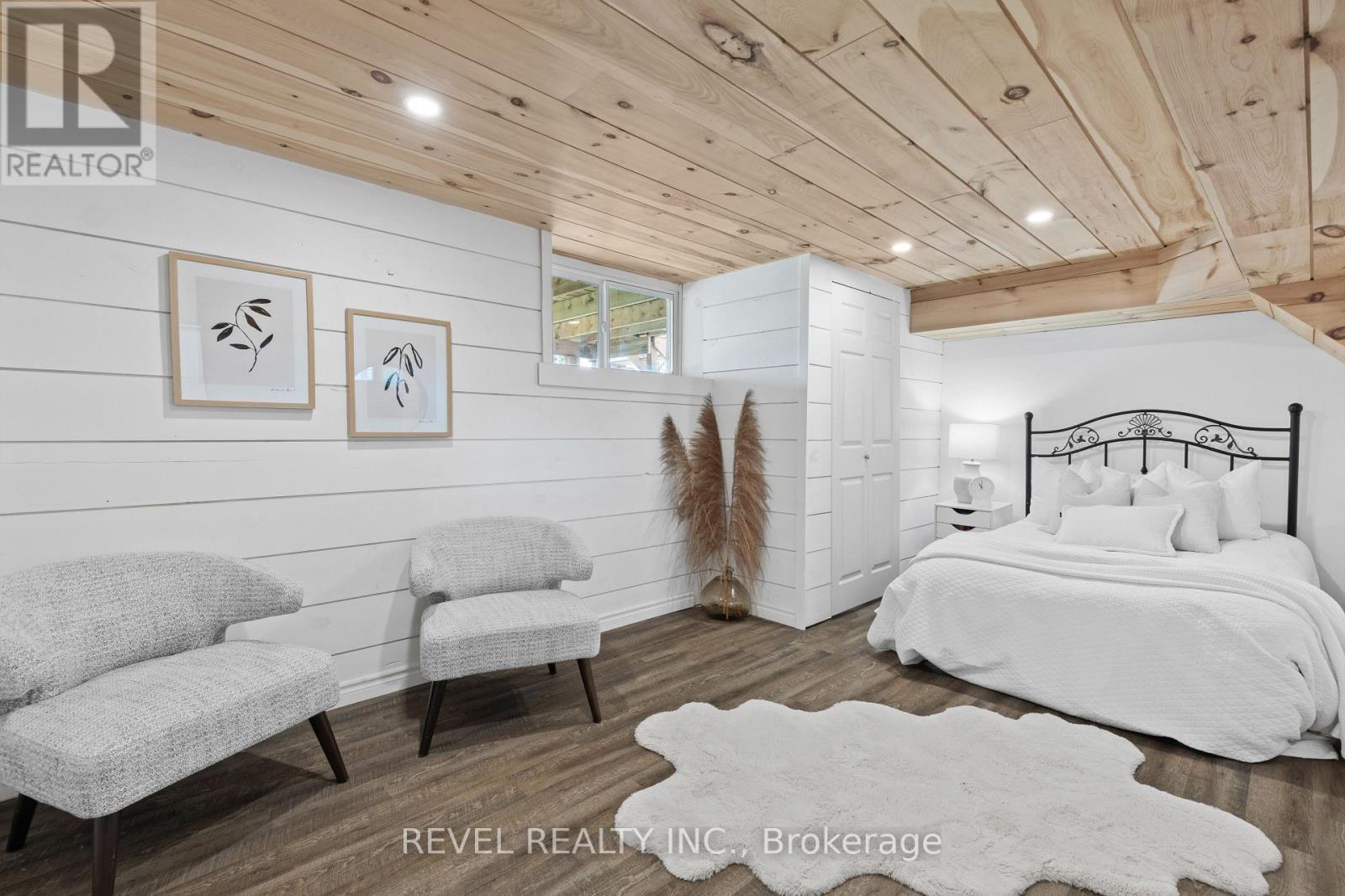Welcome to the breathtaking bungalow overlooking Lake Scugog! From the moment you arrive, the curb appeal commands attention. Step inside to a spacious front foyer leading into an open concept kitchen, living, and dining area perfect for modern family living. Gleaming engineered hardwood floors flow throughout the main level, adding warmth and elegance.The upper level features two generous bedrooms and a beautifully transformed modern farmhouse bathroom. The primary suite offers custom built in wardrobes and a versatile bonus space ideal for a nursery or home office.The fully finished lower level adds even more living space with a cozy rec room, fireplace, guest bedroom, 3 piece bath, utility area, and a walkout to the backyard.Step outside and fall in love with your private backyard oasis complete with an in-ground pool, custom interlocking stonework, an upper level deck with glass railings, and sweeping views of Lake Scugog. The armour-stone landscaping, walkways, and fully fenced yard provide both beauty and peace of mind for families. A double attached garage with direct access to the home adds everyday convenience. Set between the lake and surrounding meadows, this serene location offers a perfect blend of tranquility and lifestyle where every sunset reminds you why you love living here. (id:61423)