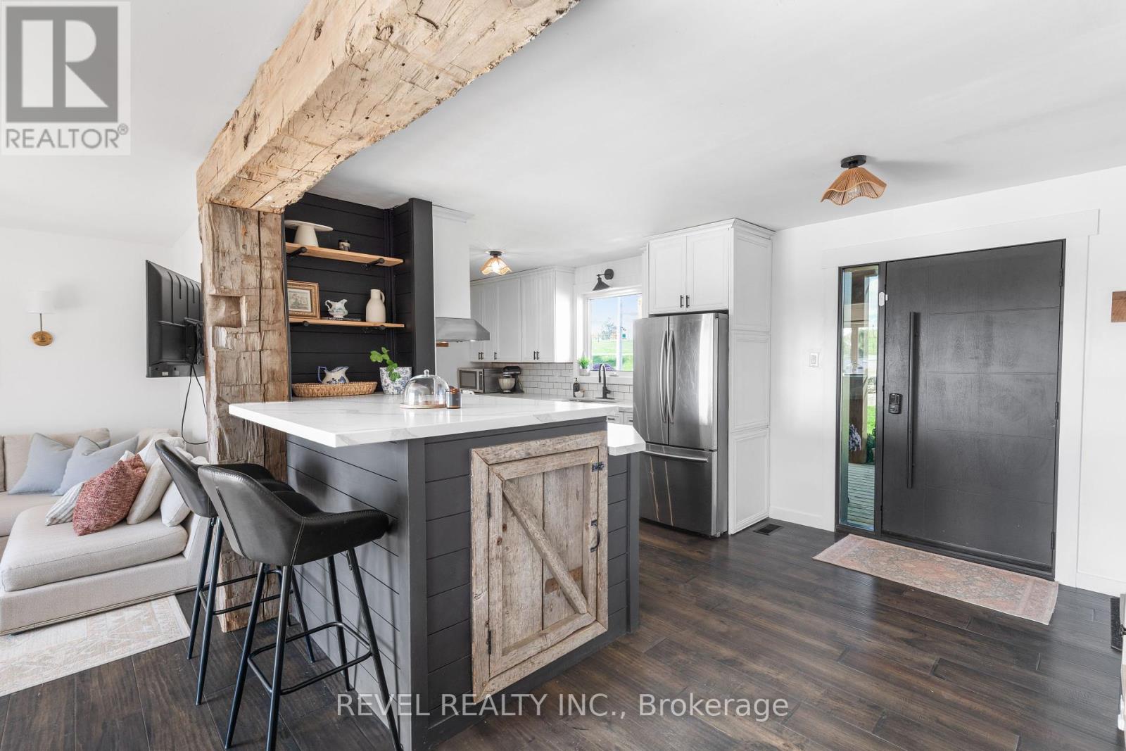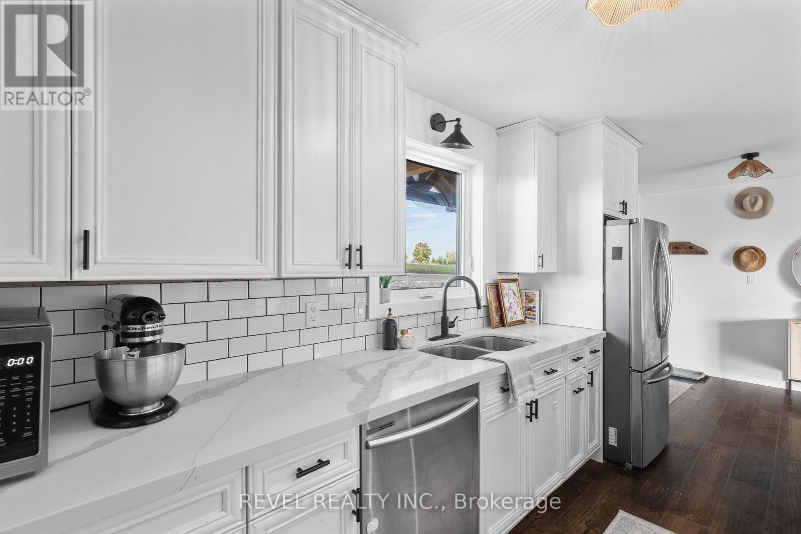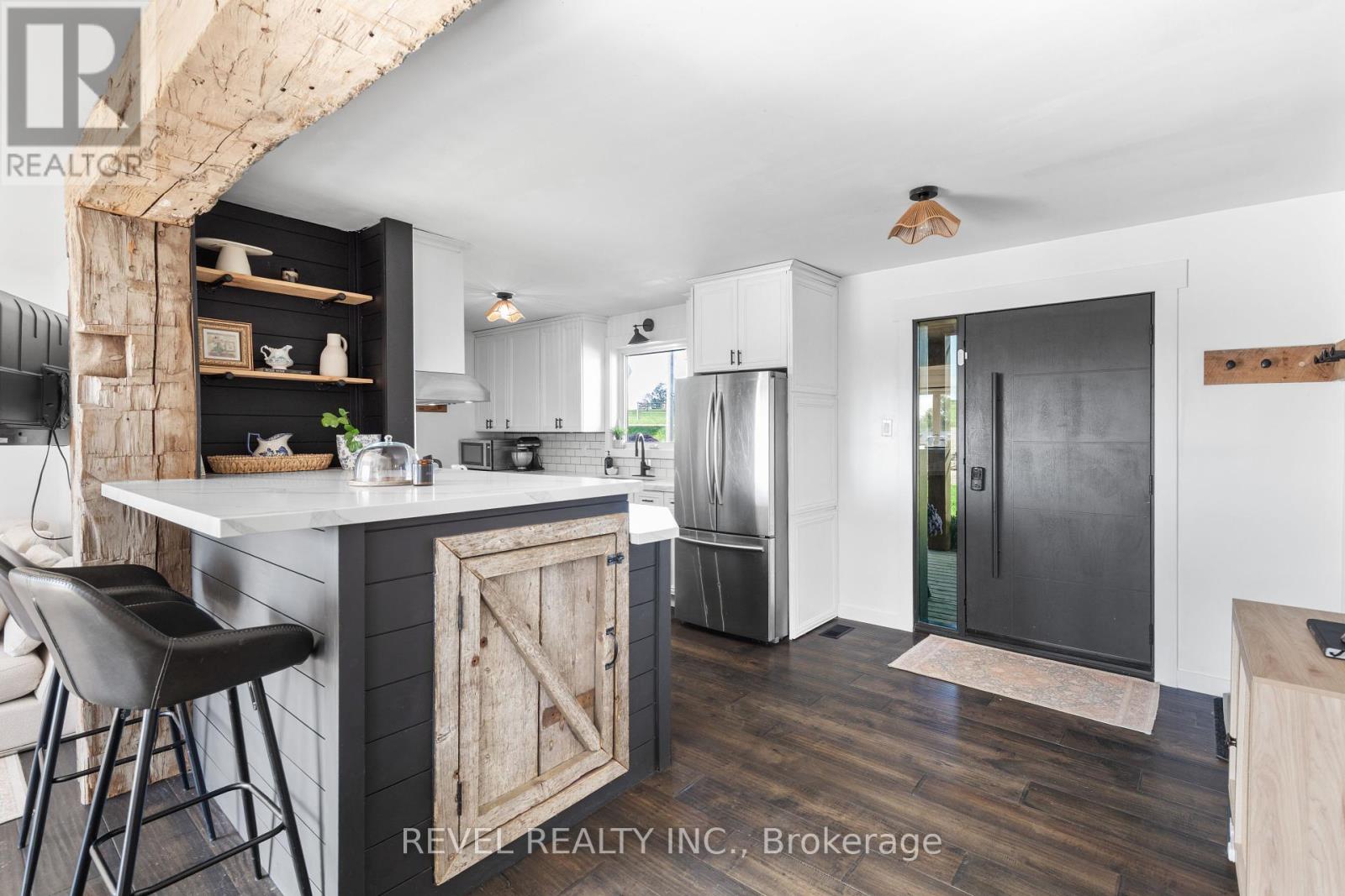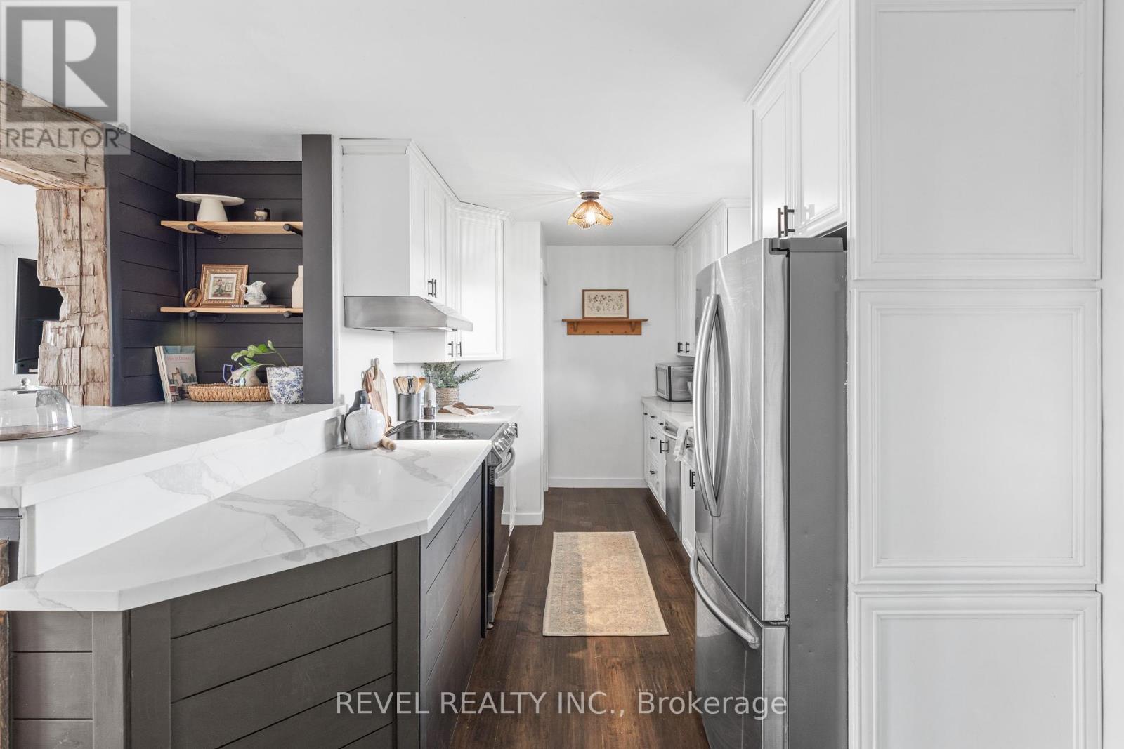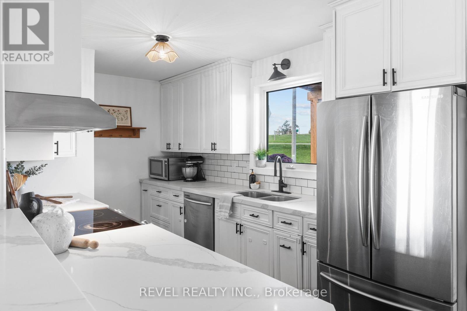 Welcome to the breathtaking bungalow overlooking Lake Scugog! From the moment you arrive, the curb appeal commands attention. Step inside to a spacious front foyer leading into an open concept kitchen, living, and dining area perfect for modern family living. Gleaming engineered hardwood floors flow throughout the main level, adding warmth and elegance.The upper level features two generous bedrooms and a beautifully transformed modern farmhouse bathroom. The primary suite offers custom built in wardrobes and a versatile bonus space ideal for a nursery or home office.The fully finished lower level adds even more living space with a cozy rec room, fireplace, guest bedroom, 3 piece bath, utility area, and a walkout to the backyard.Step outside and fall in love with your private backyard oasis complete with an in-ground pool, custom interlocking stonework, an upper level deck with glass railings, and sweeping views of Lake Scugog. The armour-stone landscaping, walkways, and fully fenced yard provide both beauty and peace of mind for families. A double attached garage with direct access to the home adds everyday convenience. Set between the lake and surrounding meadows, this serene location offers a perfect blend of tranquility and lifestyle where every sunset reminds you why you love living here. (id:61423)