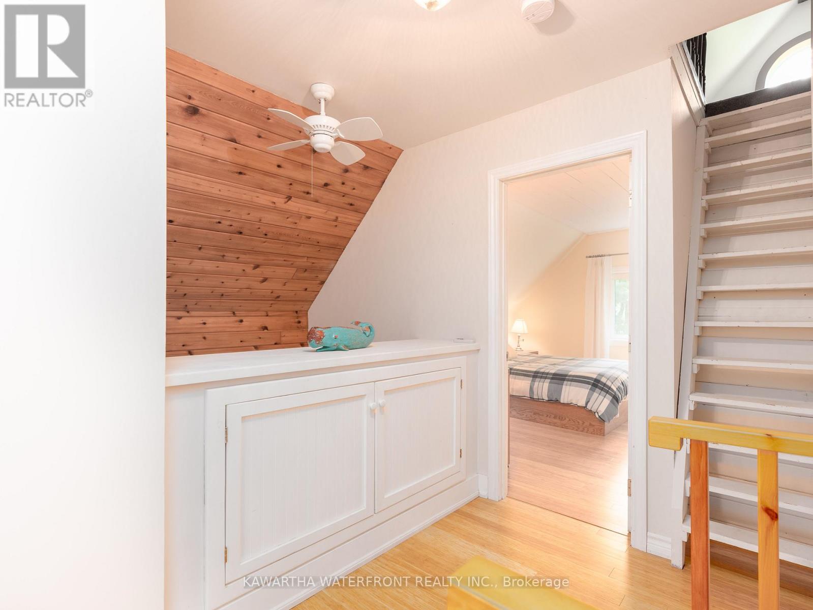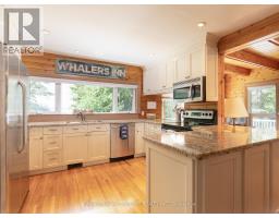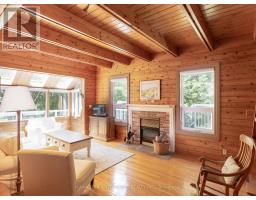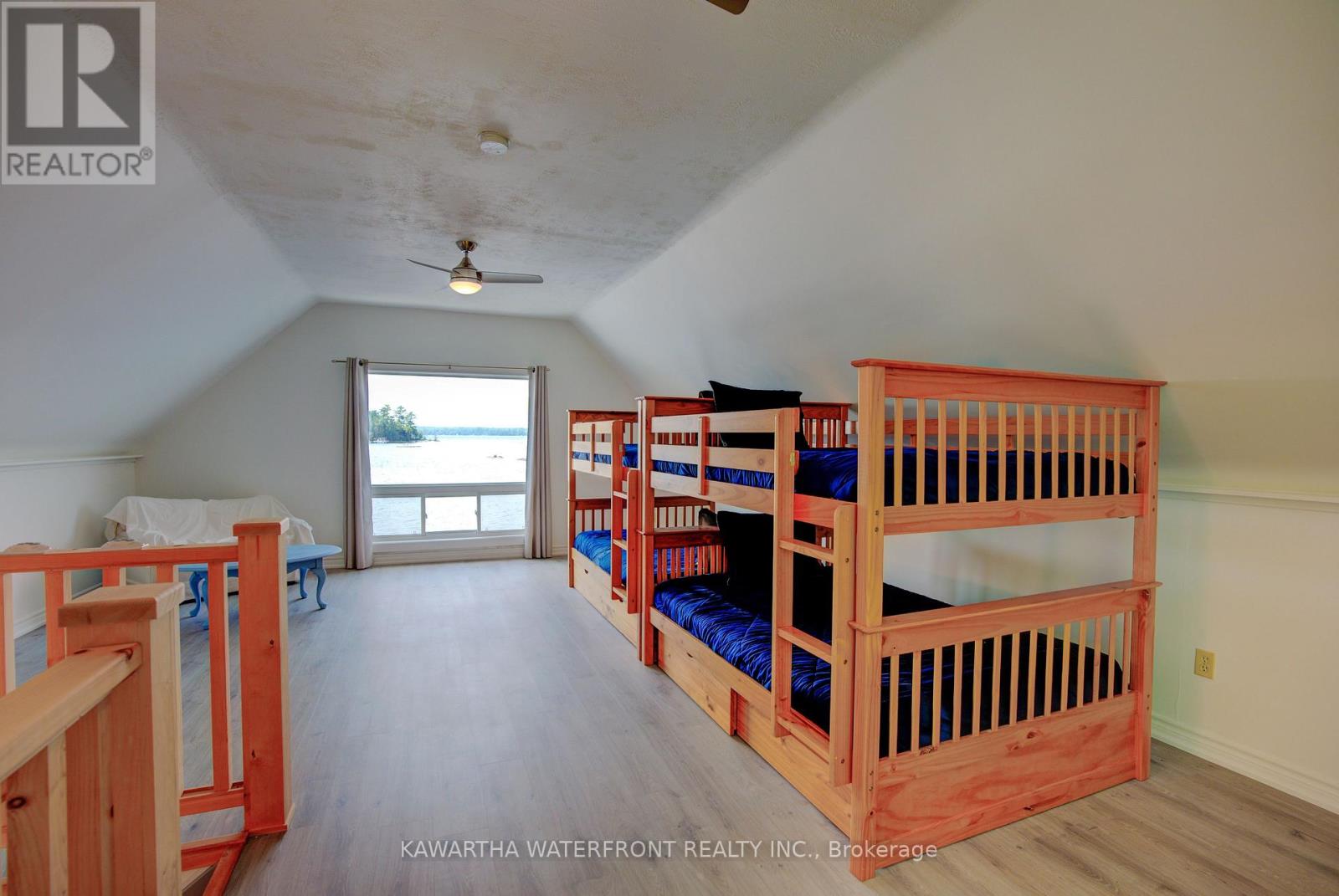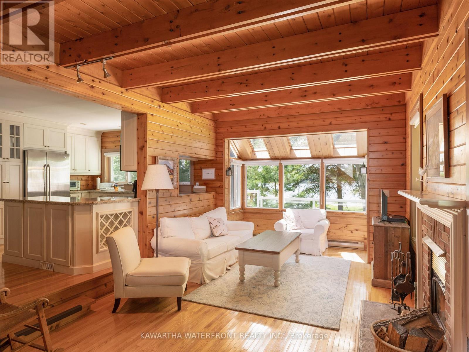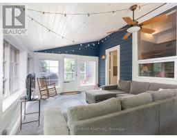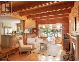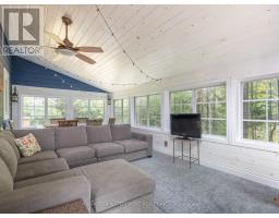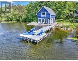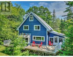 This is a remarkably beautiful Four Mile Lake property that has been thoughtfully designed to be enjoyable in every season. The large, level 1.6 acre lot with 145 ft of west-facing waterfront provides exquisite privacy, smooth granite outcroppings and a wonderful sense of connection to the natural surroundings. The lovely cottage has had $200,000 in recent upgrades, including a new Waterloo Biofilter septic system (2017), heat pump/furnace (2018), well and water treatment systems (2019/2020), and numerous cosmetic enhancements. The living, dining, kitchen and powder rooms are on the main level, along with a wrap-around deck and a very spacious sun room in a woodland setting with new vinyl/screened stacking windows. Three bedrooms including the Primary and a luxurious 4 pc bathroom are on the upper level, and a finished loft provides extra living space. The waterfront studio is also spectacular, with an expansive seasonal living area on the upper level, a lakeside sitting room on the lower level for perfect sunset viewing, and a spacious storage room with a newly installed ECO toilet. Most furniture, which is of exceptional quality, is included. (id:61423)