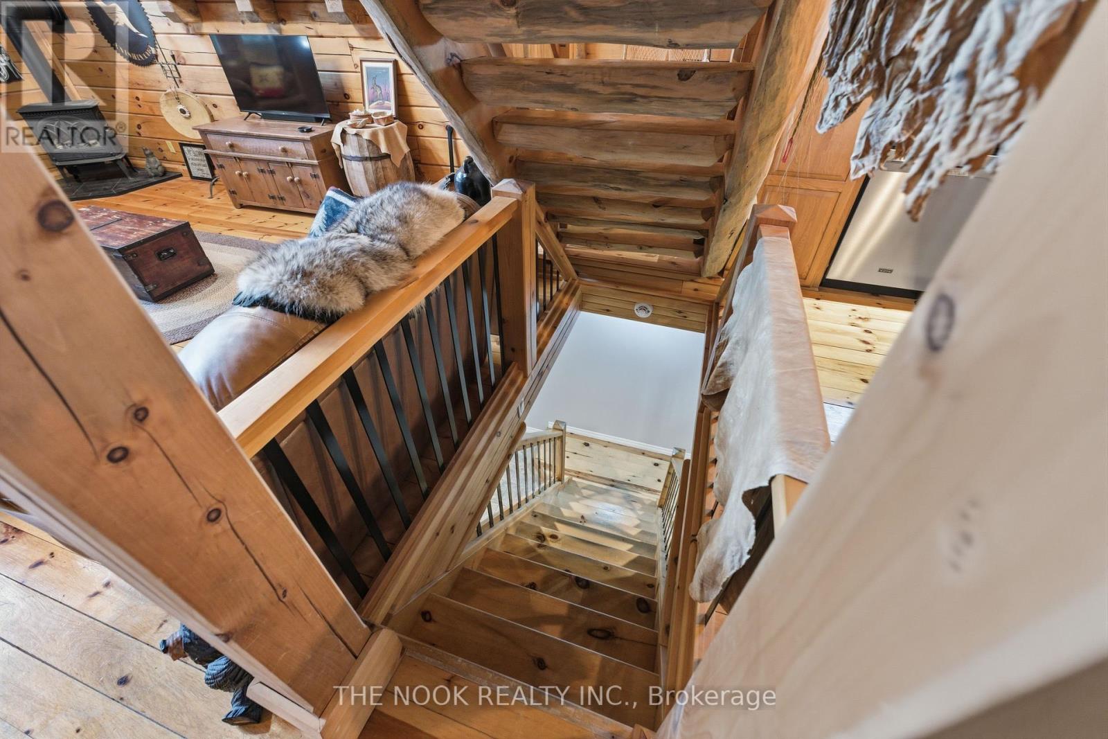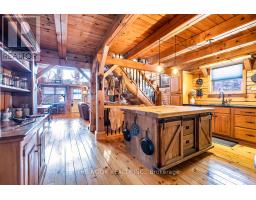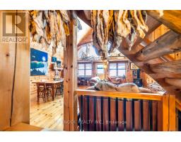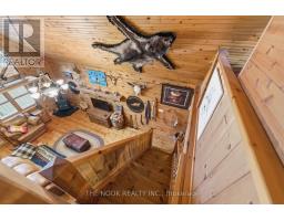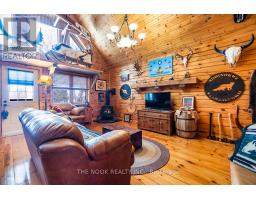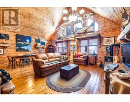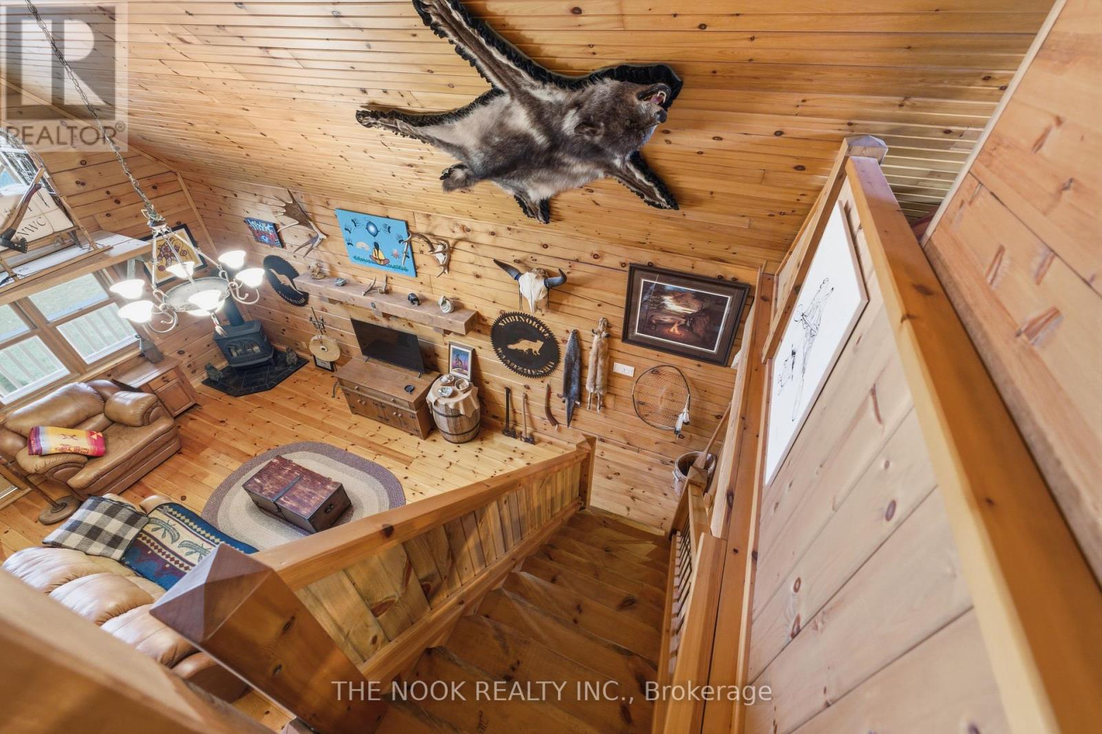 Experience the charm of this hand-crafted log bungaloft in the quiet "Glen" community with stunning lake views. Vaulted ceilings, exposed beams, and a cozy gas fireplace create a warm living space. The loft style primary bedroom overlooks the lake framed by vibrant maples. With a functional kitchen, walk-in pantry, bright mudroom, and heated workshop, this turnkey property is ready to enjoy from day one. Enjoy the many features, including forced air natural gas heating, whole-home Generac backup, a private treed lot, and boating and fishing access! (id:61423)